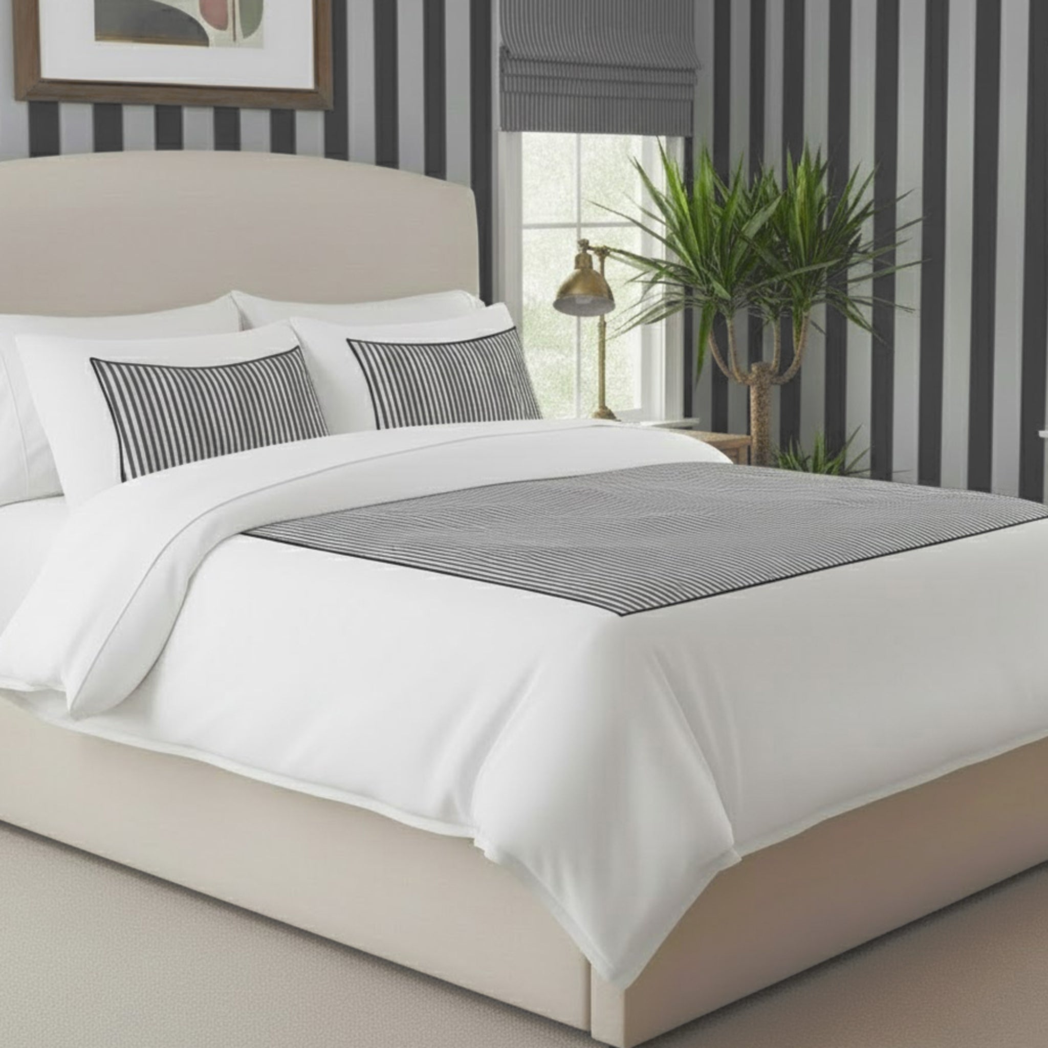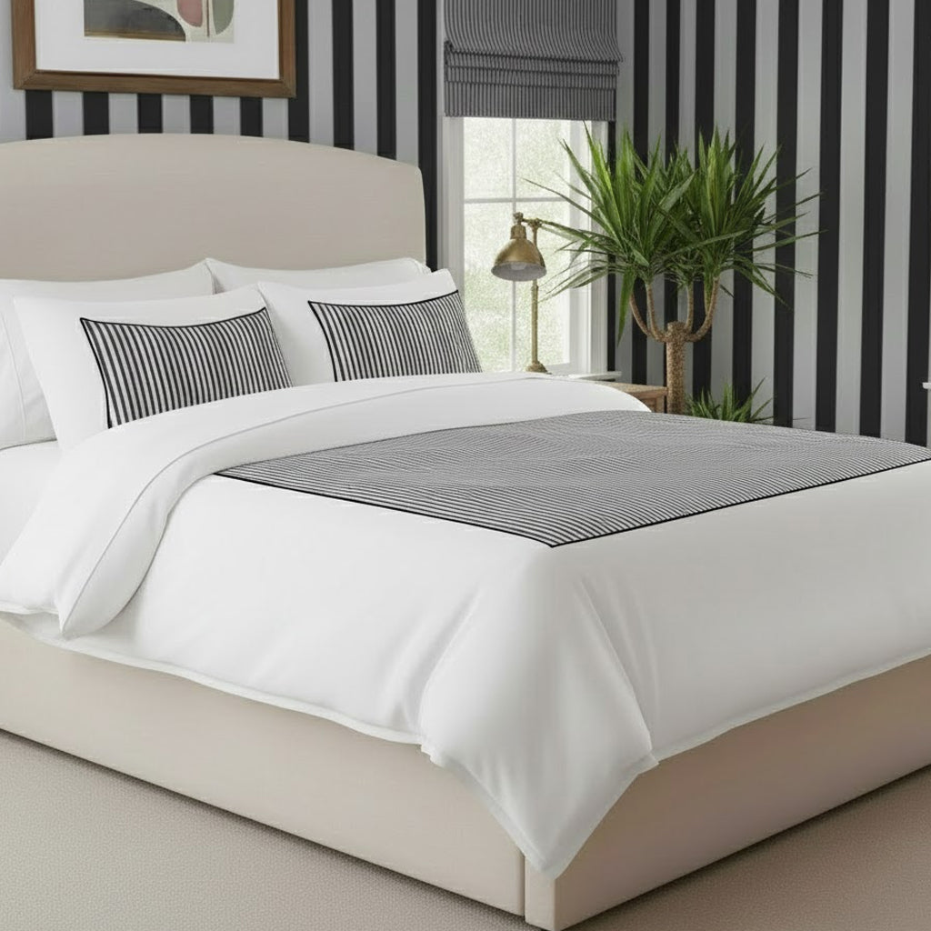 Classic Applique Ticking Stripe Cotton Duvet Cover Set