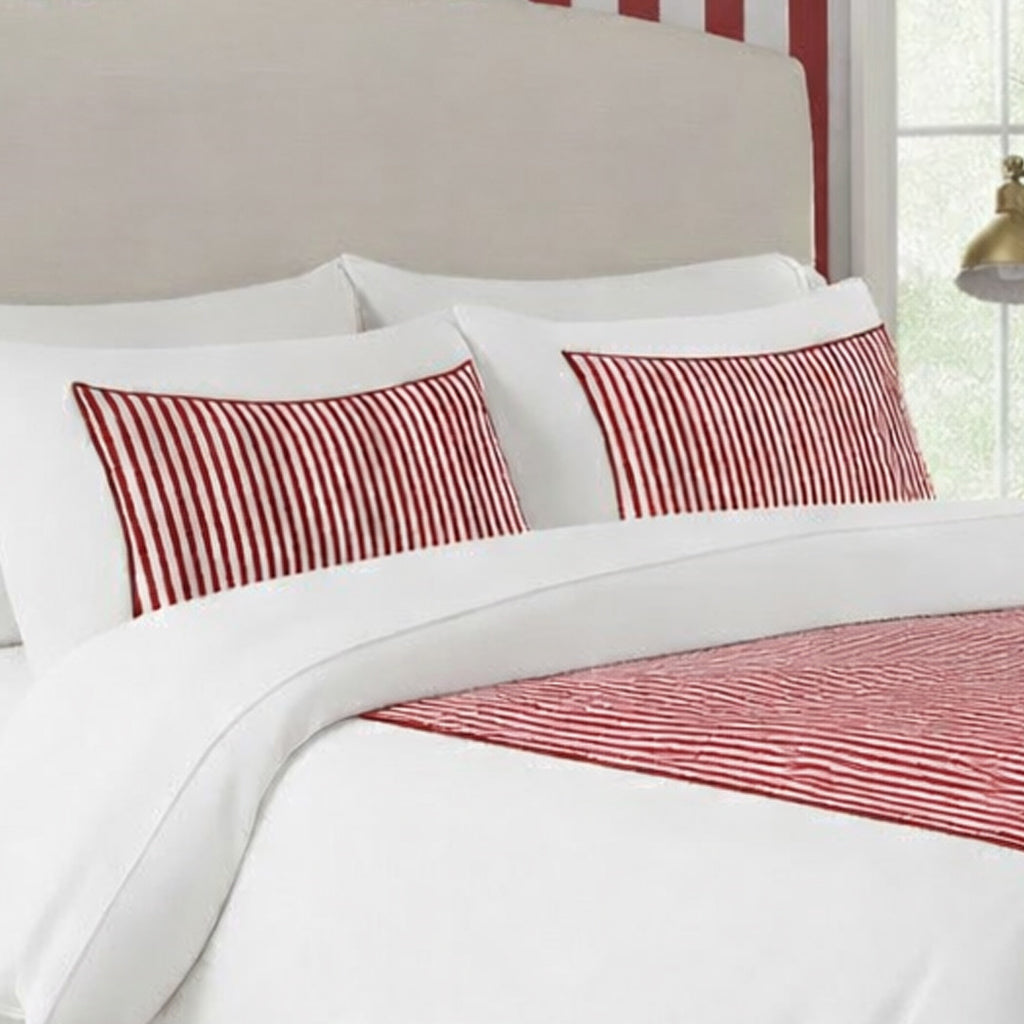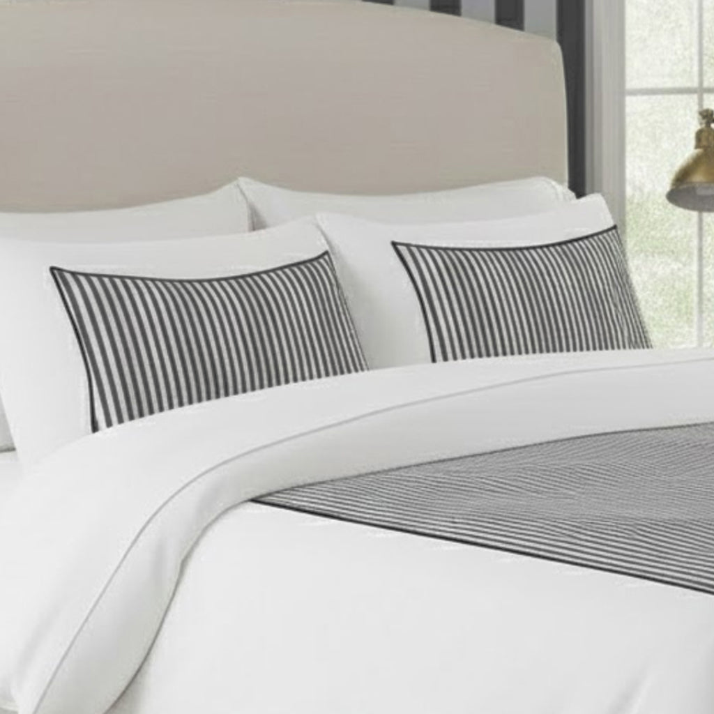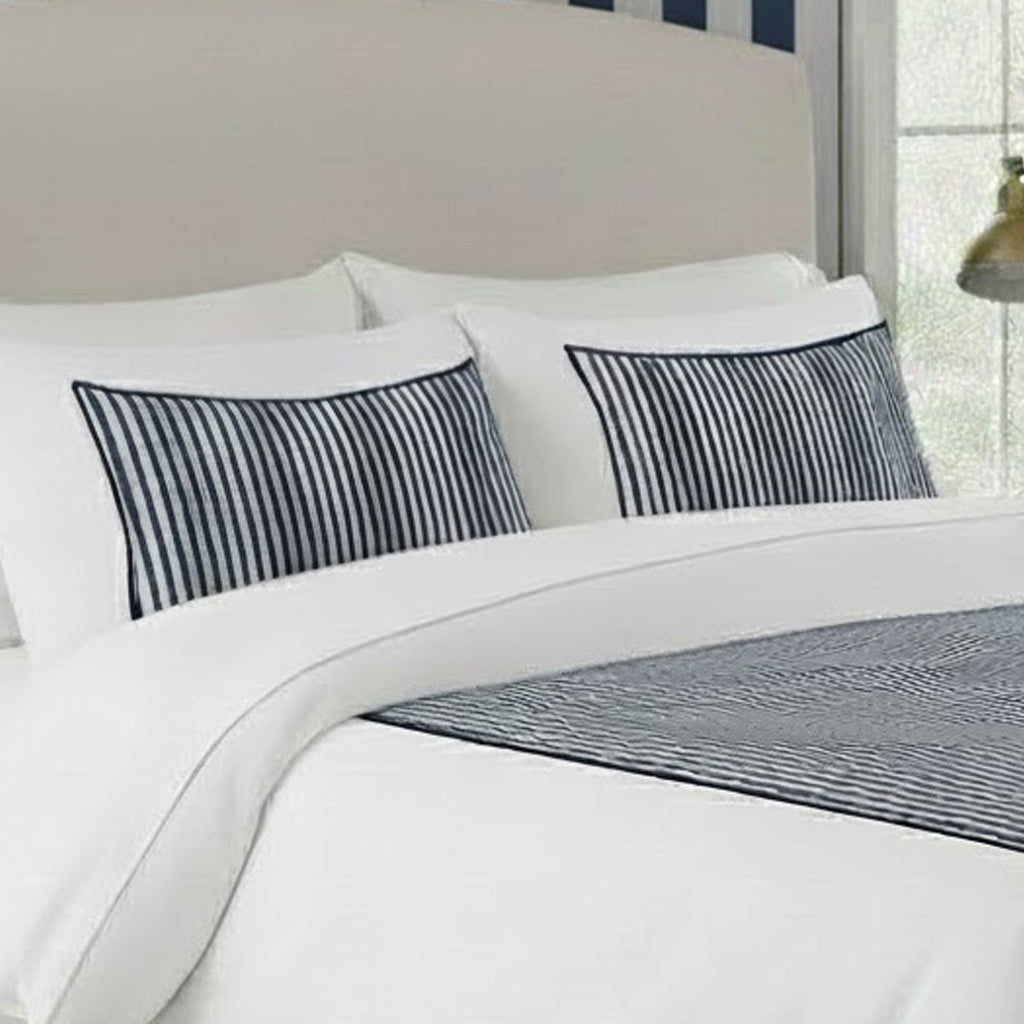 • Classic Applique Ticking Stripe Cotton Duvet Cover Set