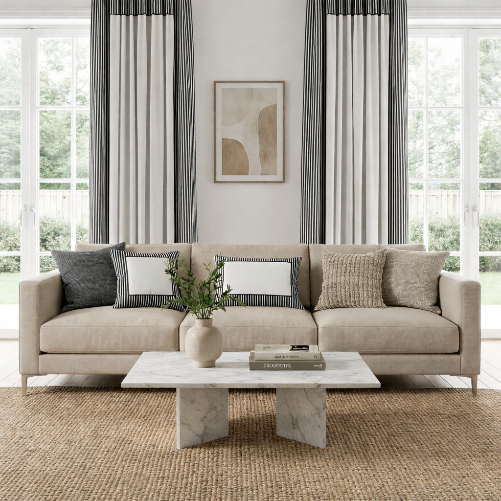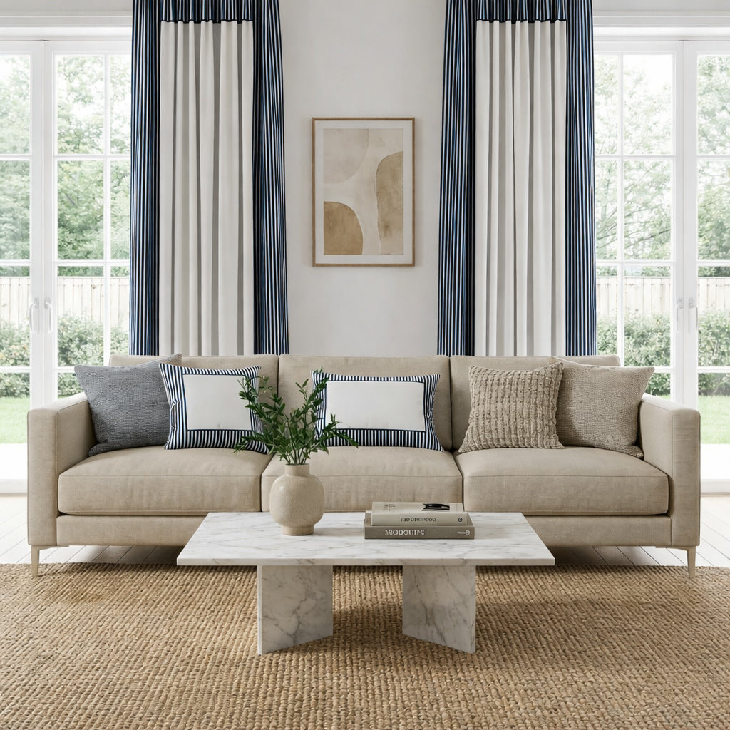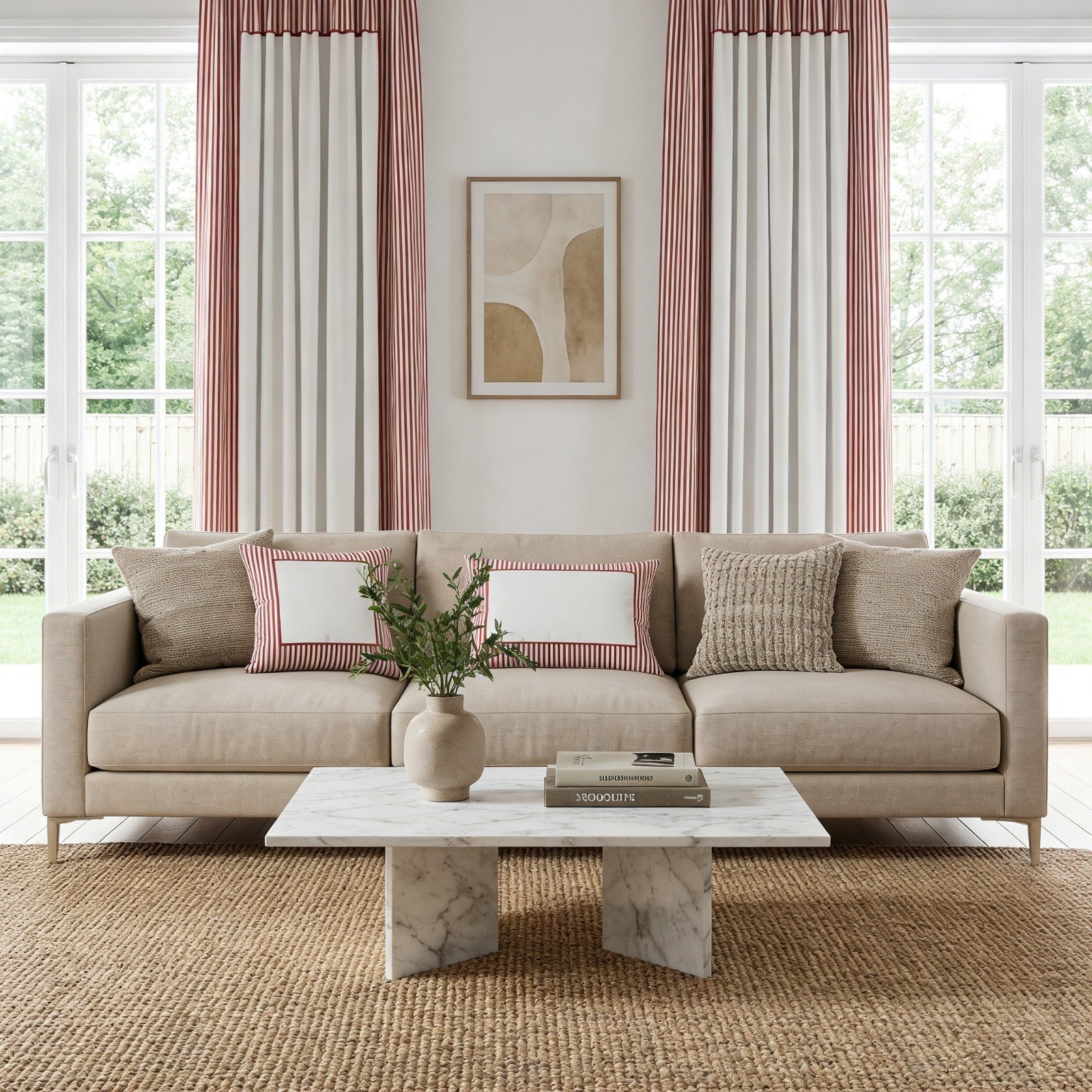 • Classic Applique Ticking Stripe Cotton Curtain (Set of 2)