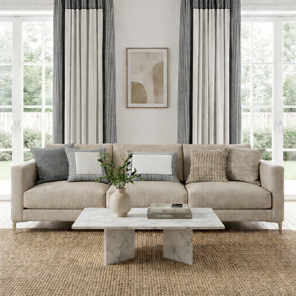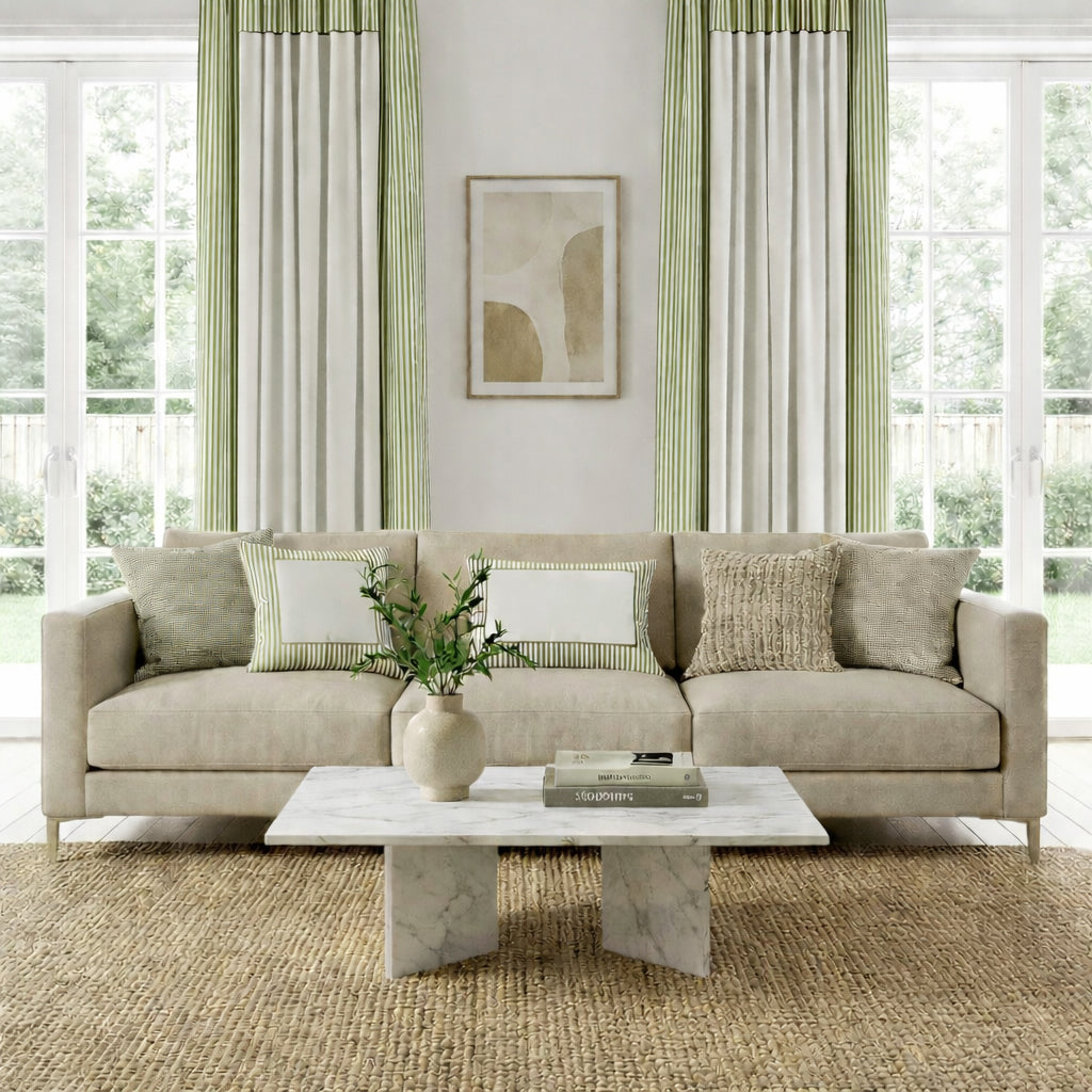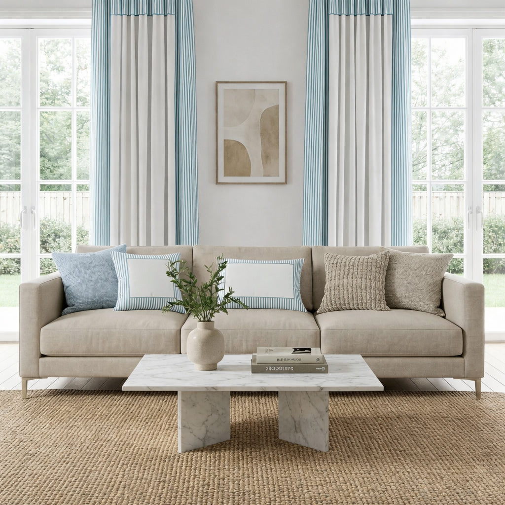 • Classic Applique Ticking Stripe Cotton Curtain (Set of 2)