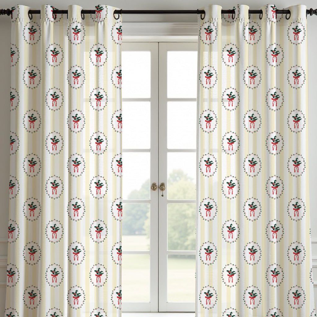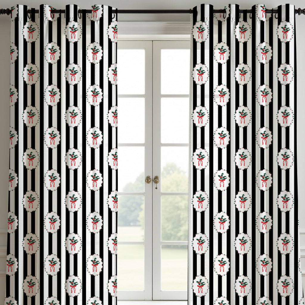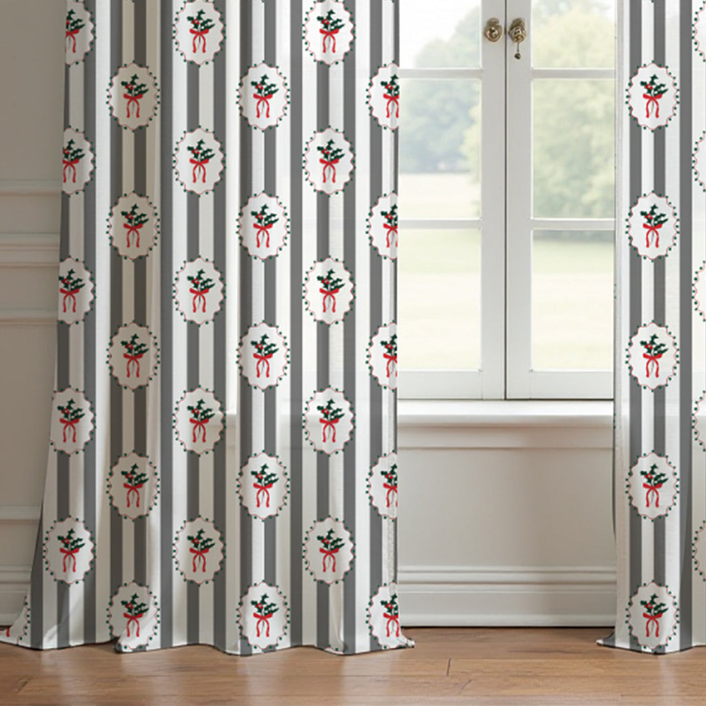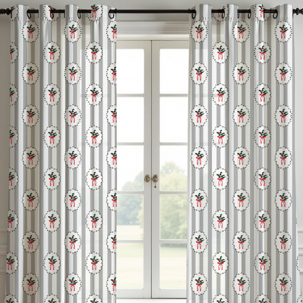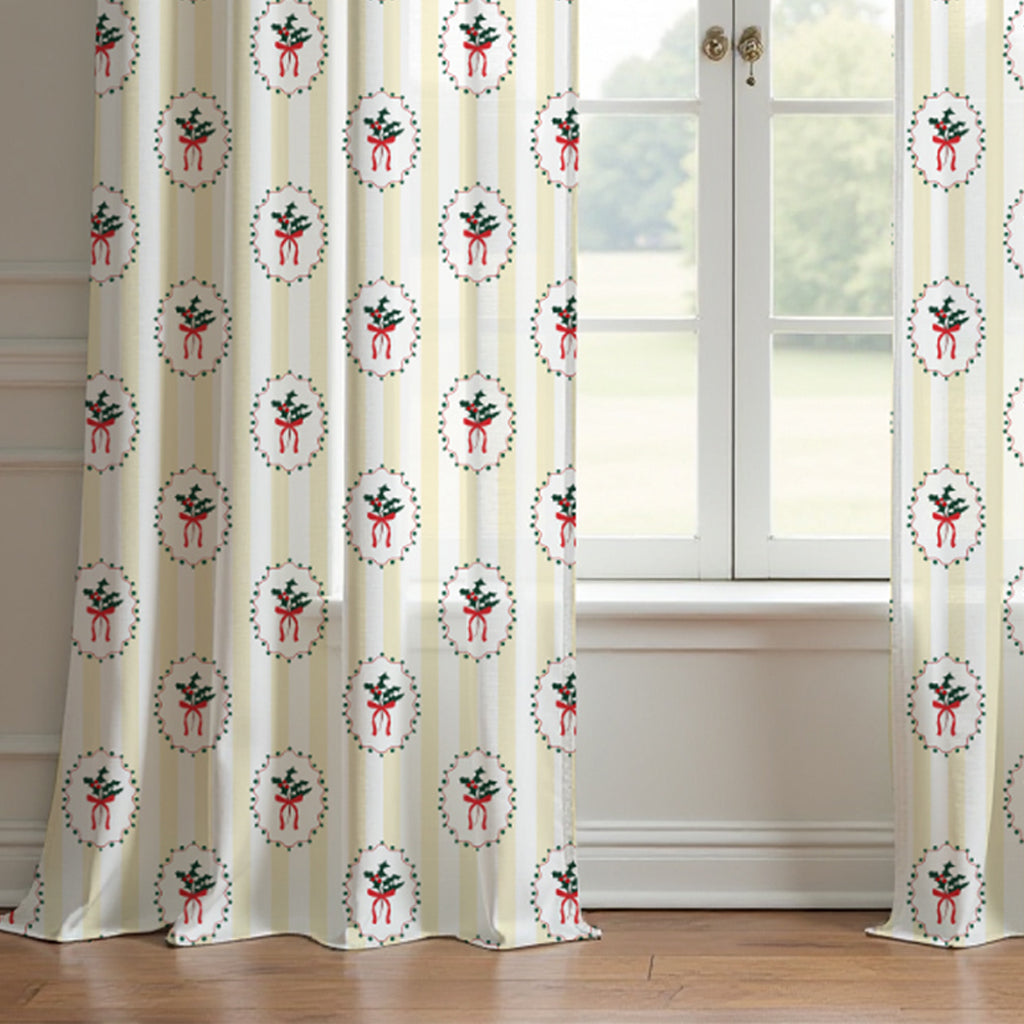 Poinsettias and Holly Curtain (Set Of 2) For Christmas