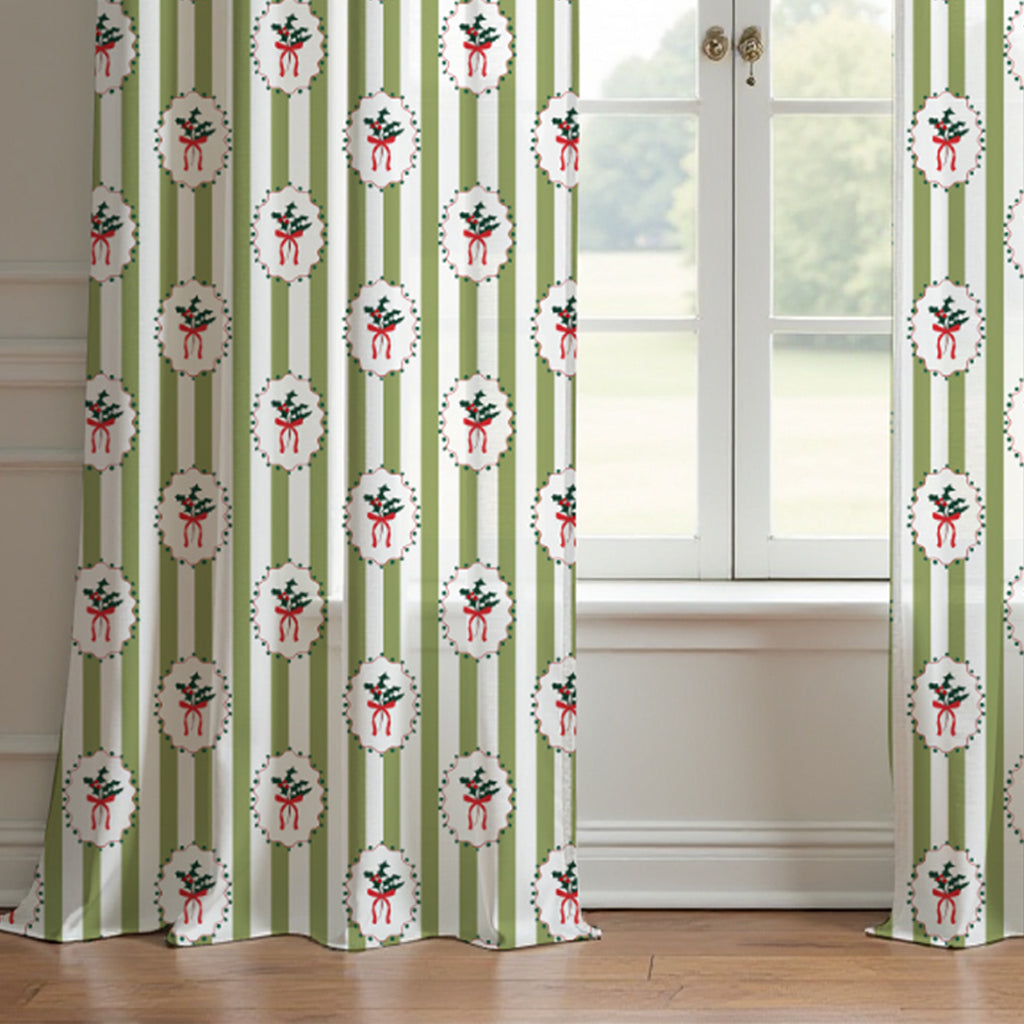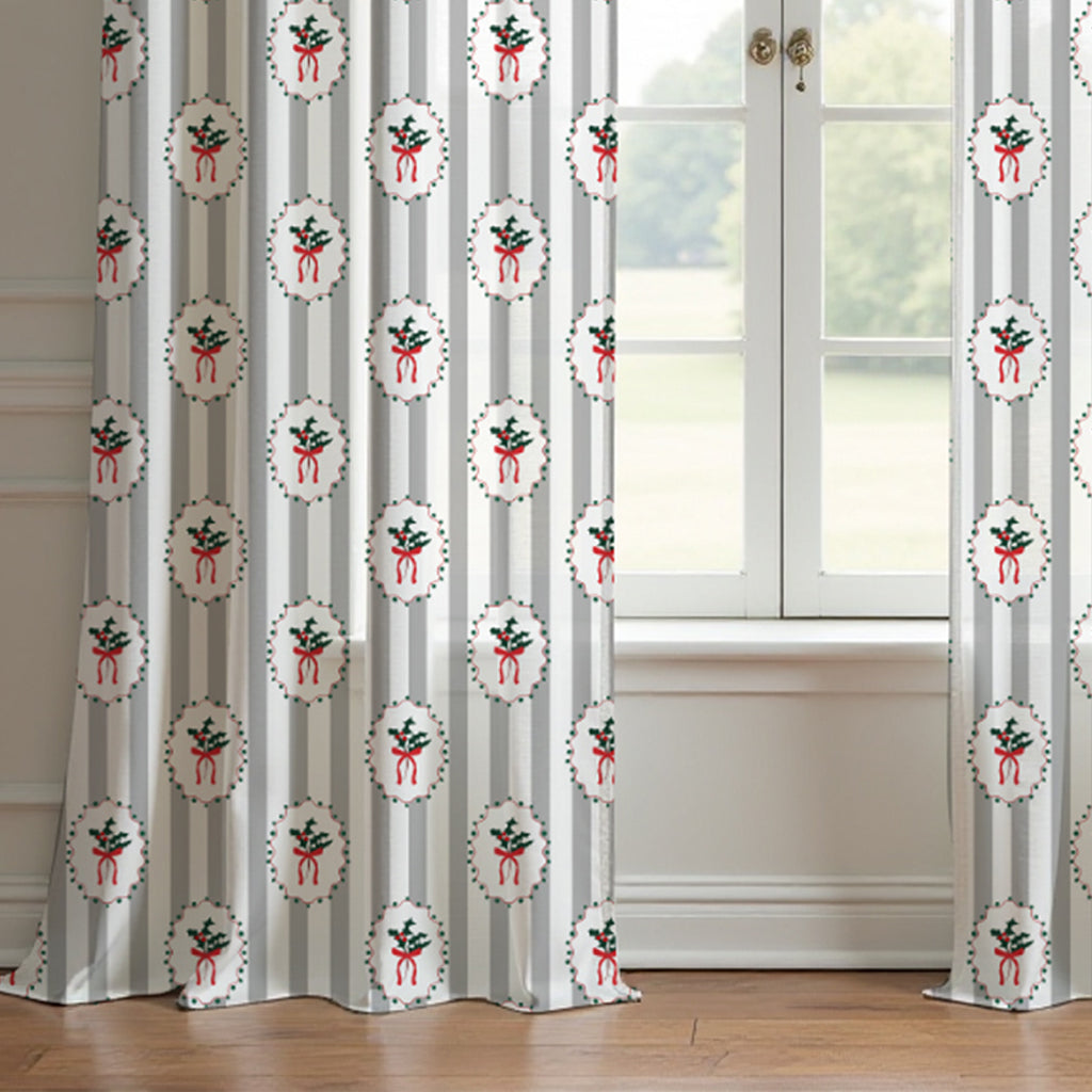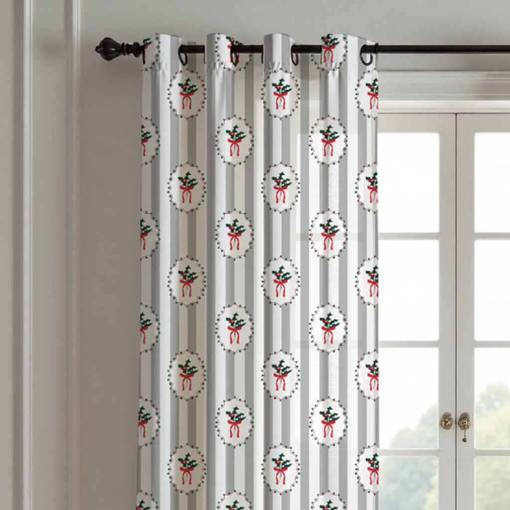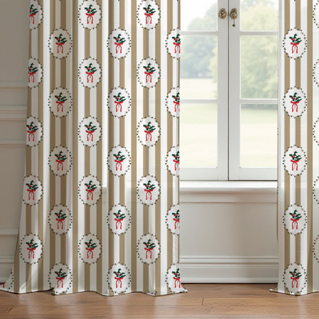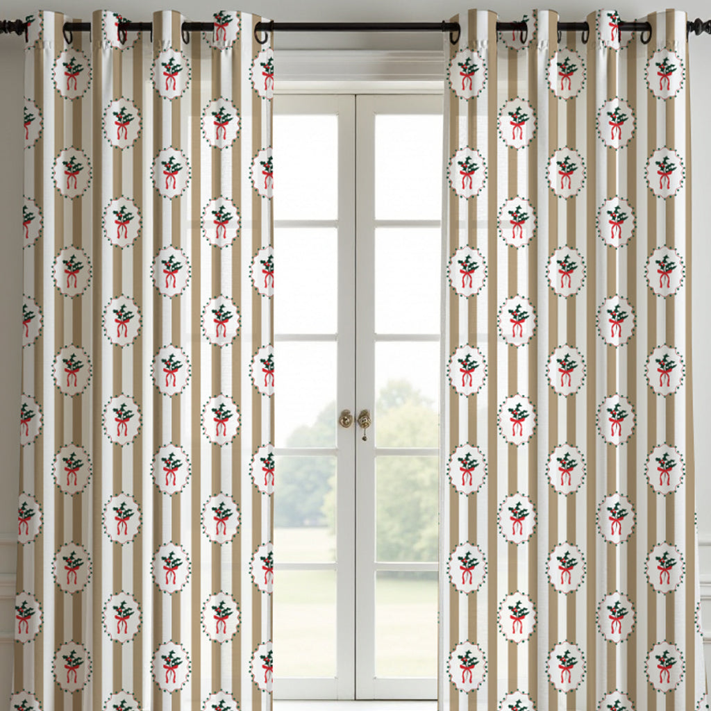 Poinsettias and Holly Curtain (Set Of 2) For Christmas
