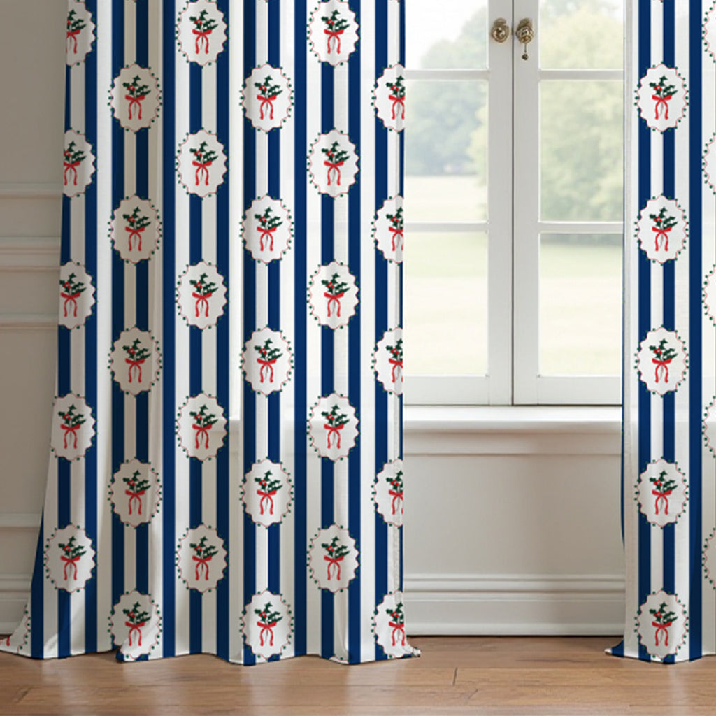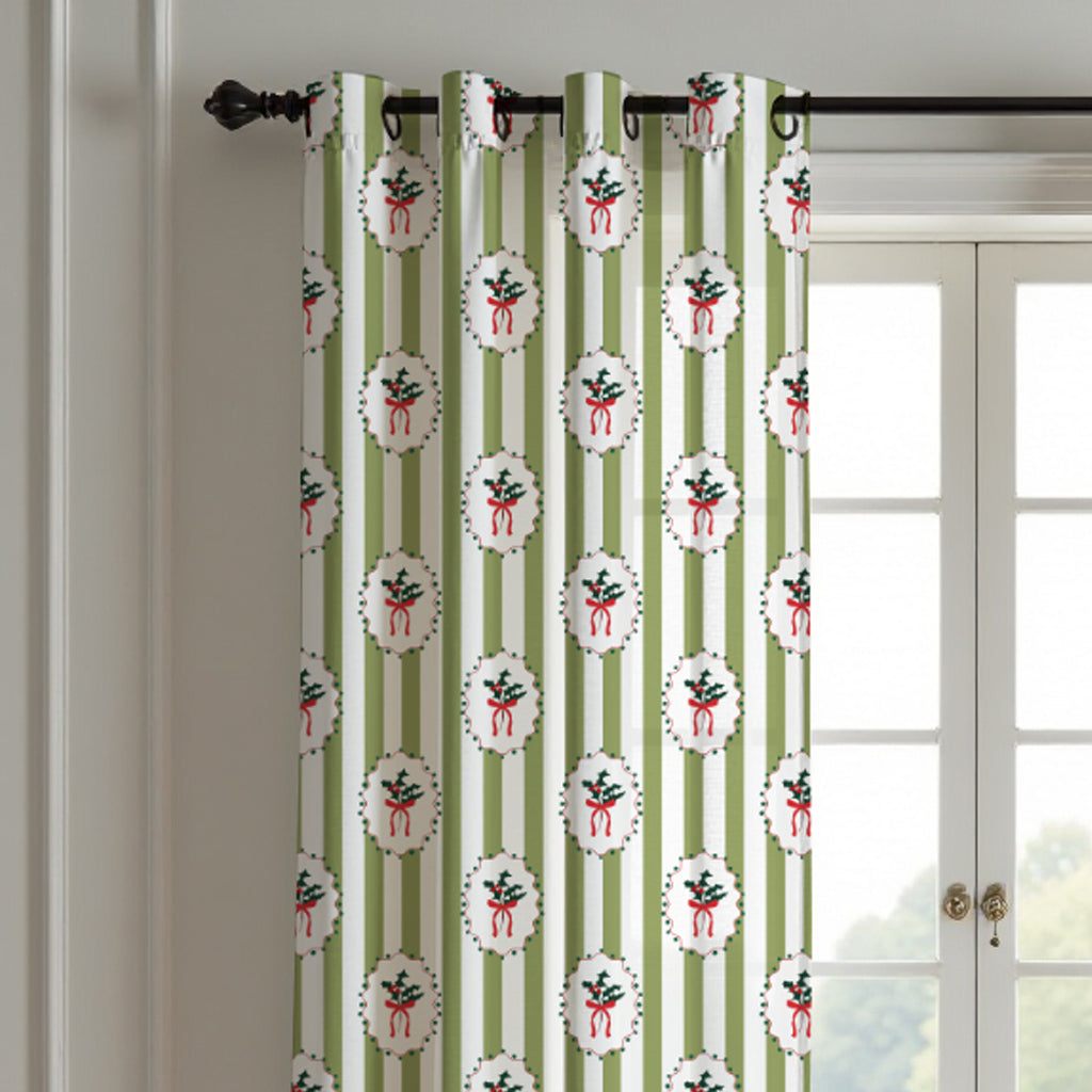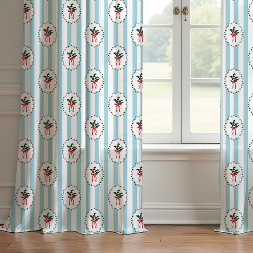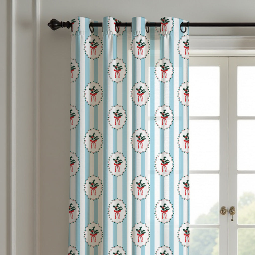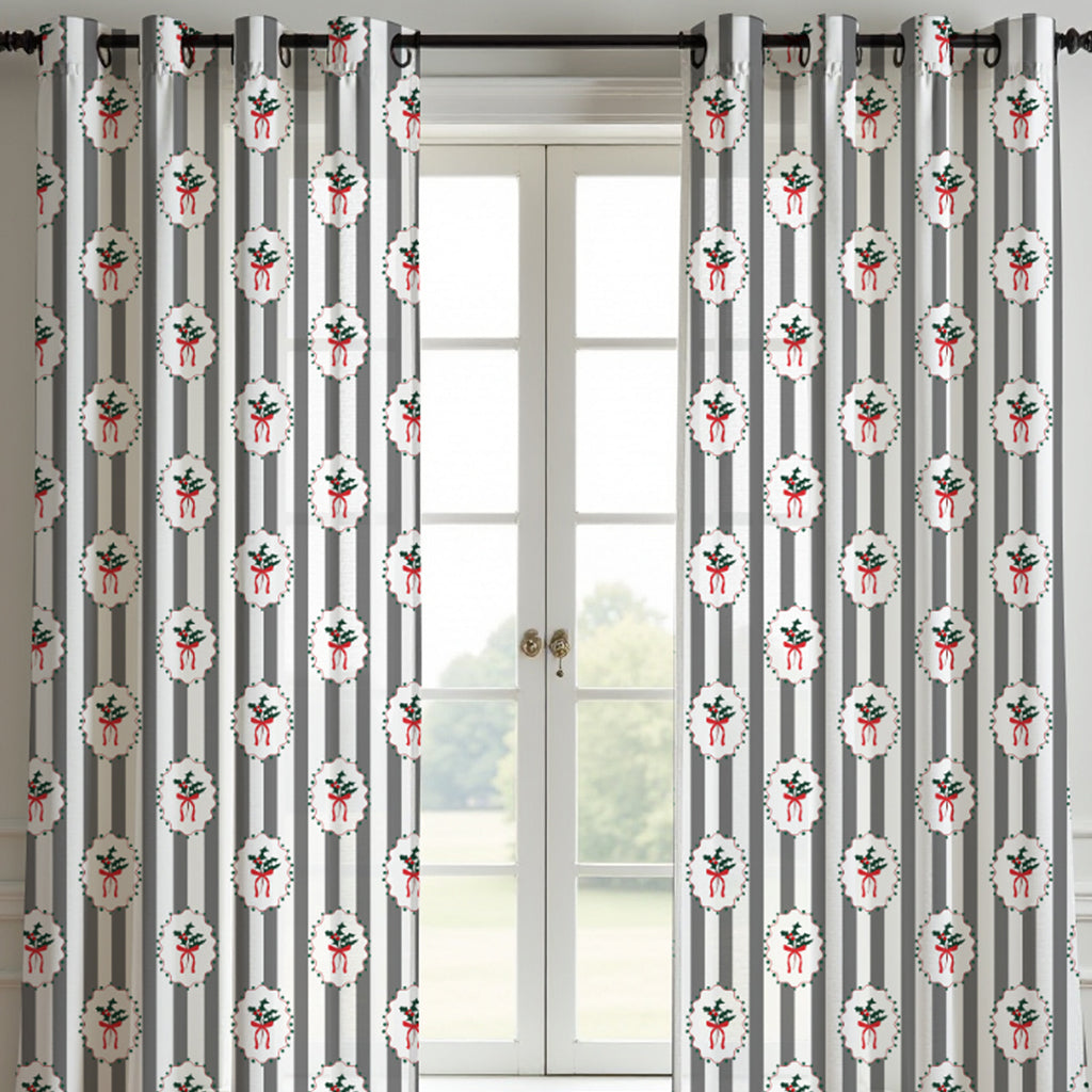 Poinsettias and Holly Curtain (Set Of 2) For Christmas