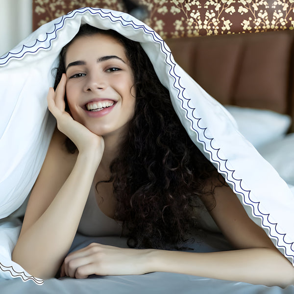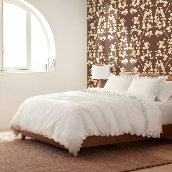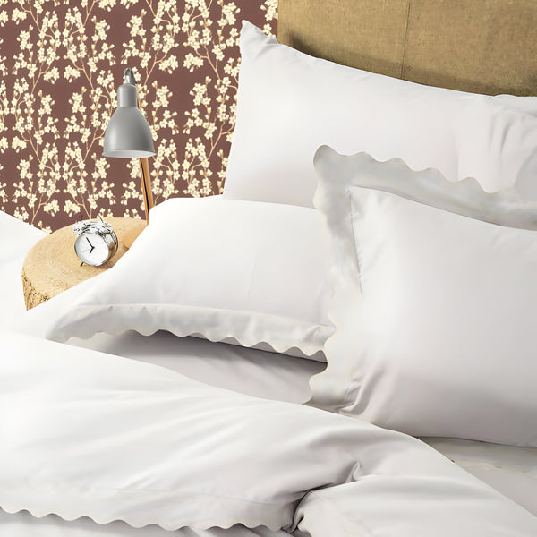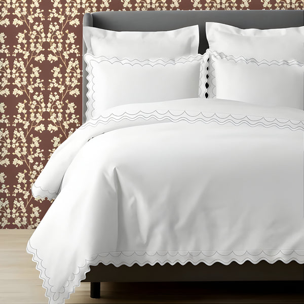 400TC Cotton Sateen Double Scallop Embroidery Duvet Cover Set