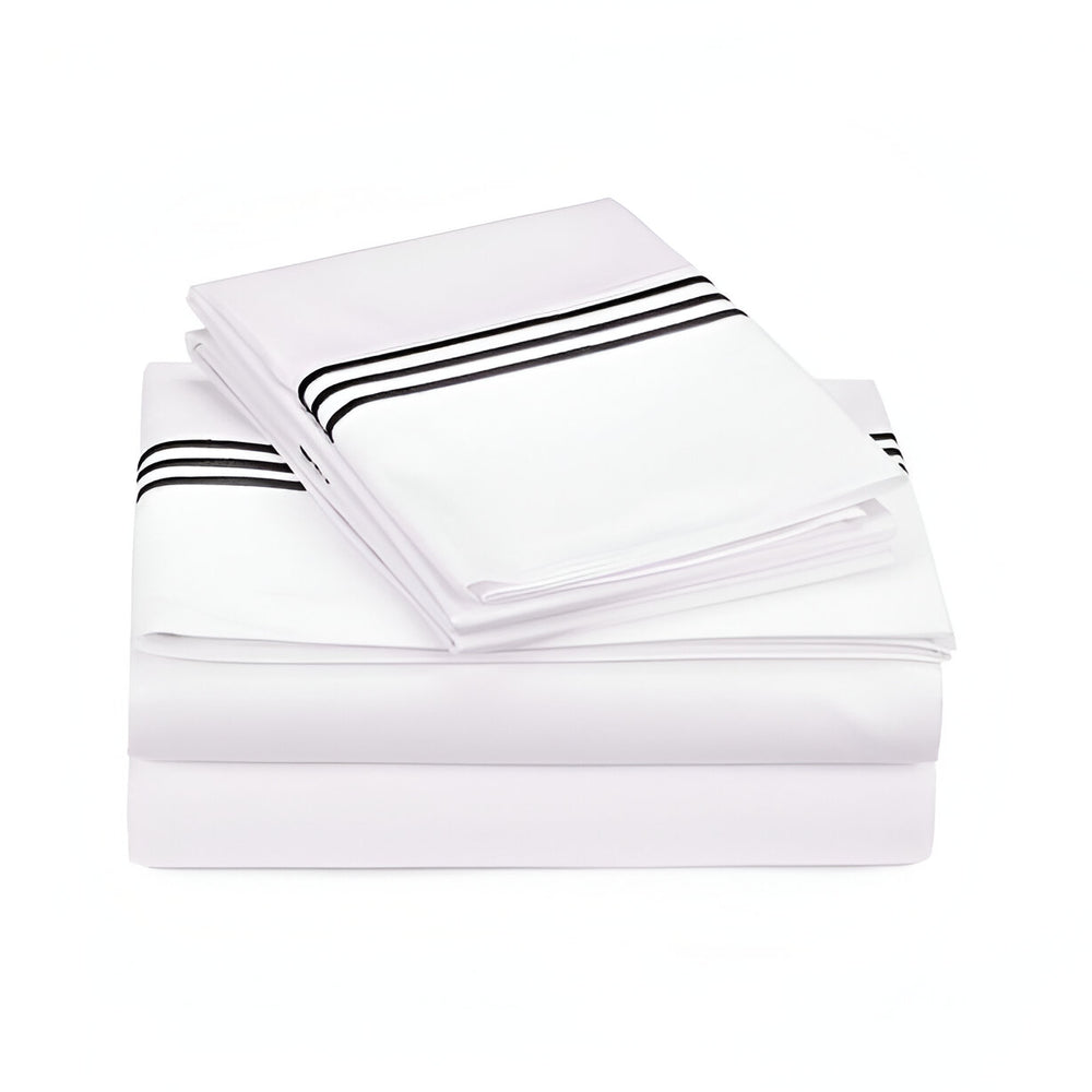 400TC Triple Embroidery Sateen Solid Cotton Fitted Sheet