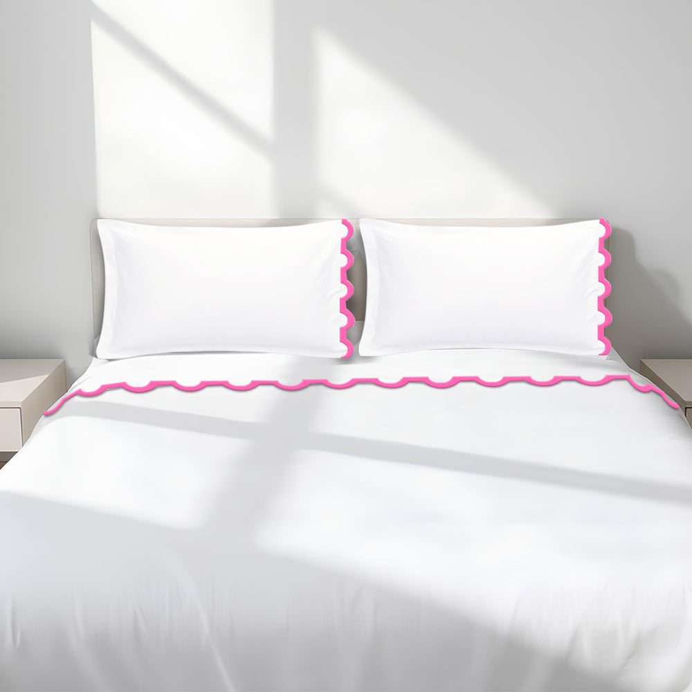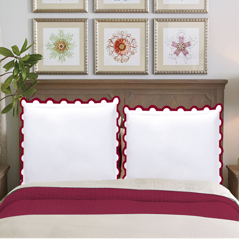 • Features 2 colored bands of U shape scalloped stitching all around to the edge of pillow sham and duvet cover