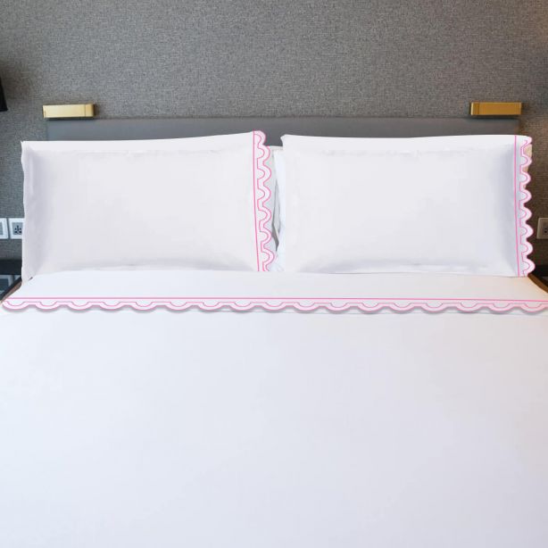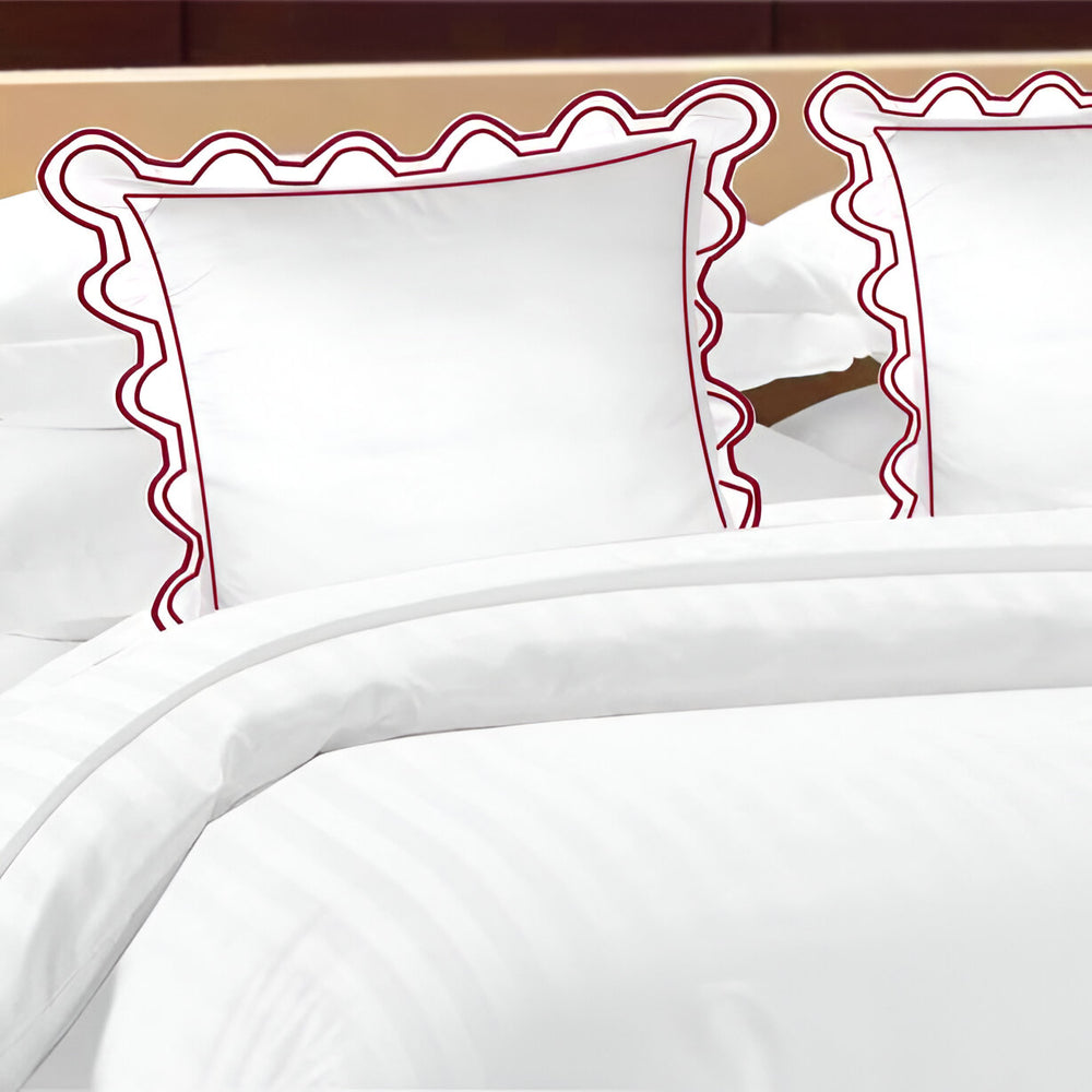 • Features 2 colored bands of U shape scalloped stitching all around to the edge of pillow sham and duvet cover