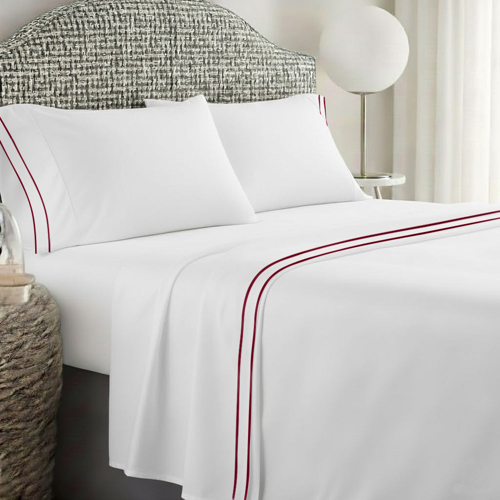 400TC Embroidery & Border Cotton Sateen Solid Duvet Cover Set
