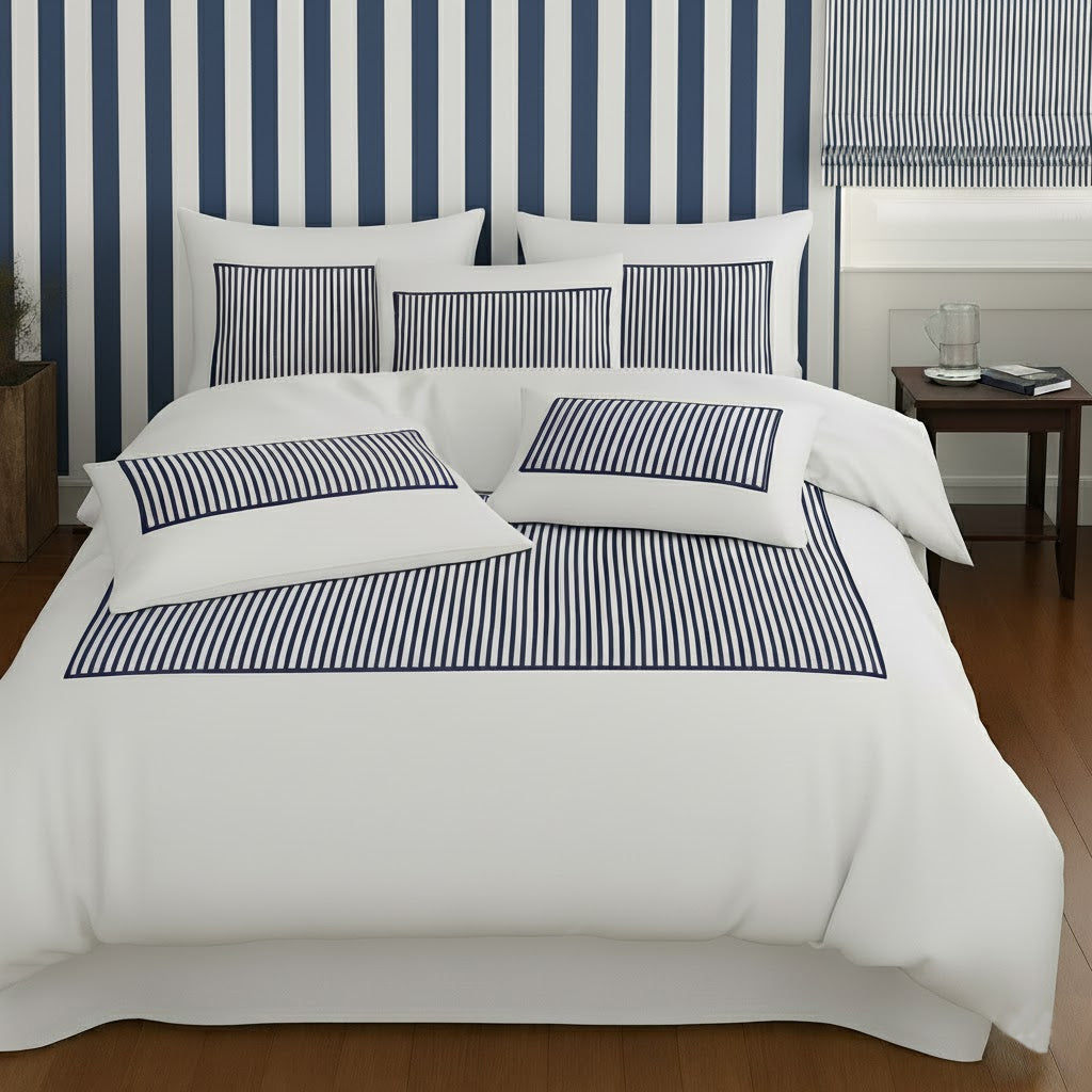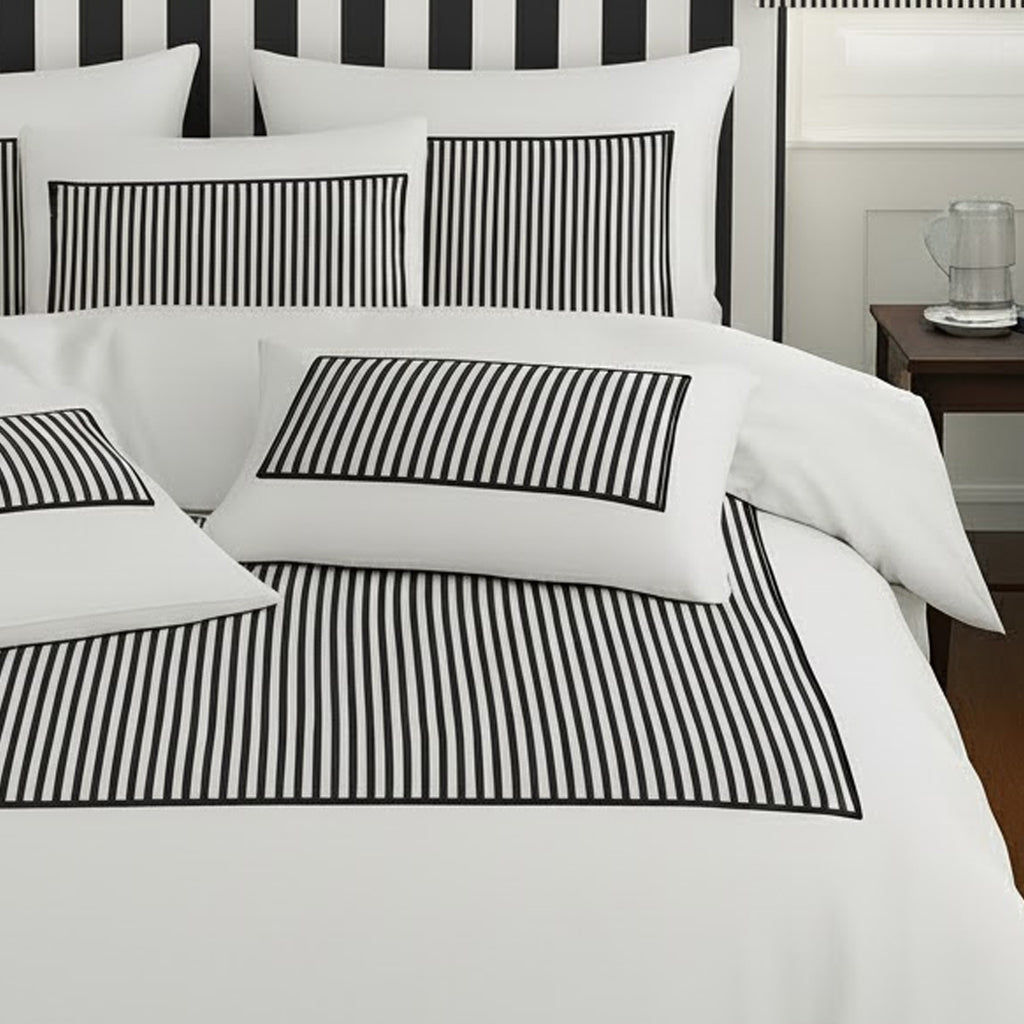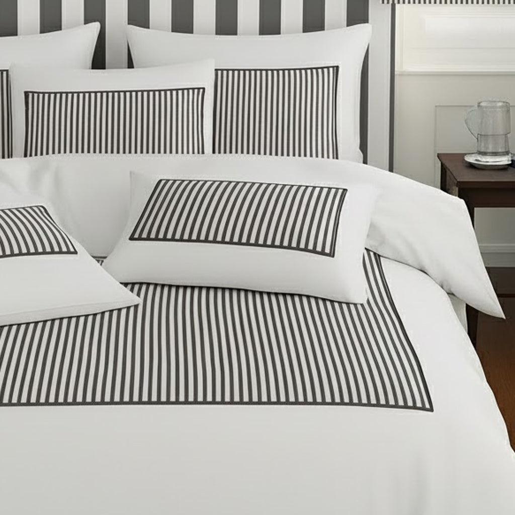 • Classic Applique Ticking Stripe Cotton Duvet Cover Set