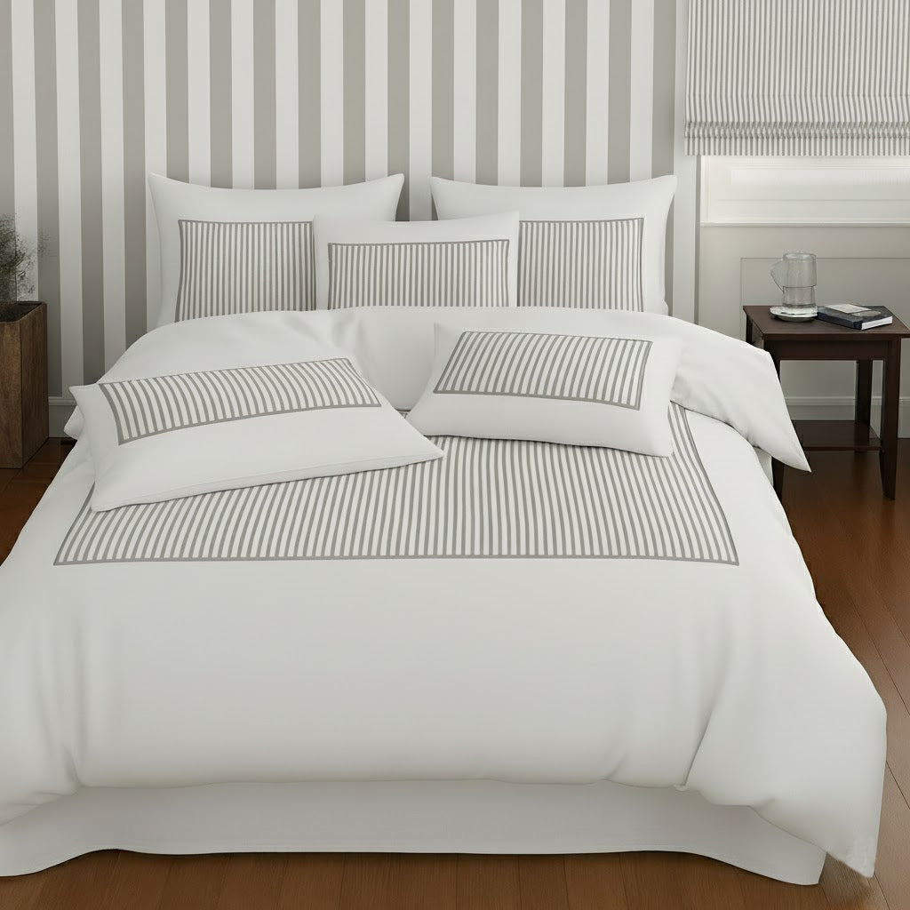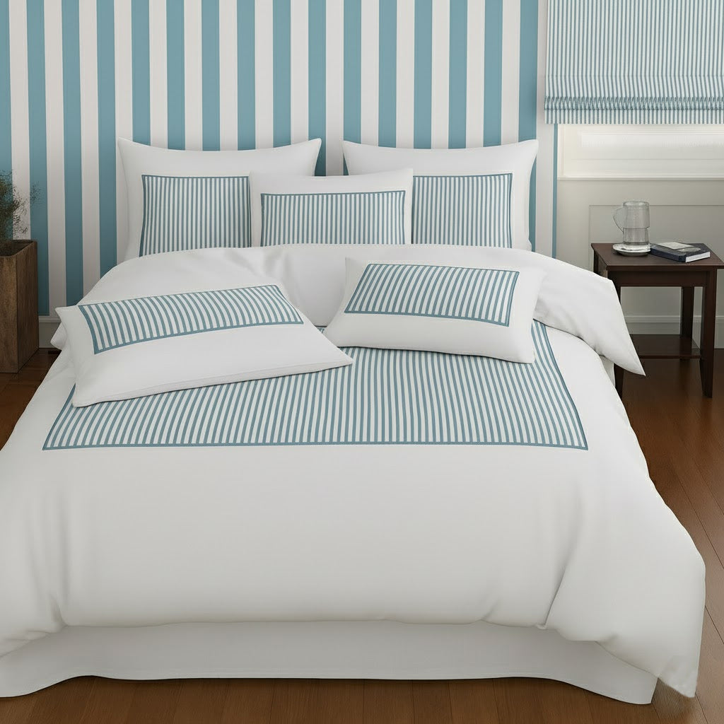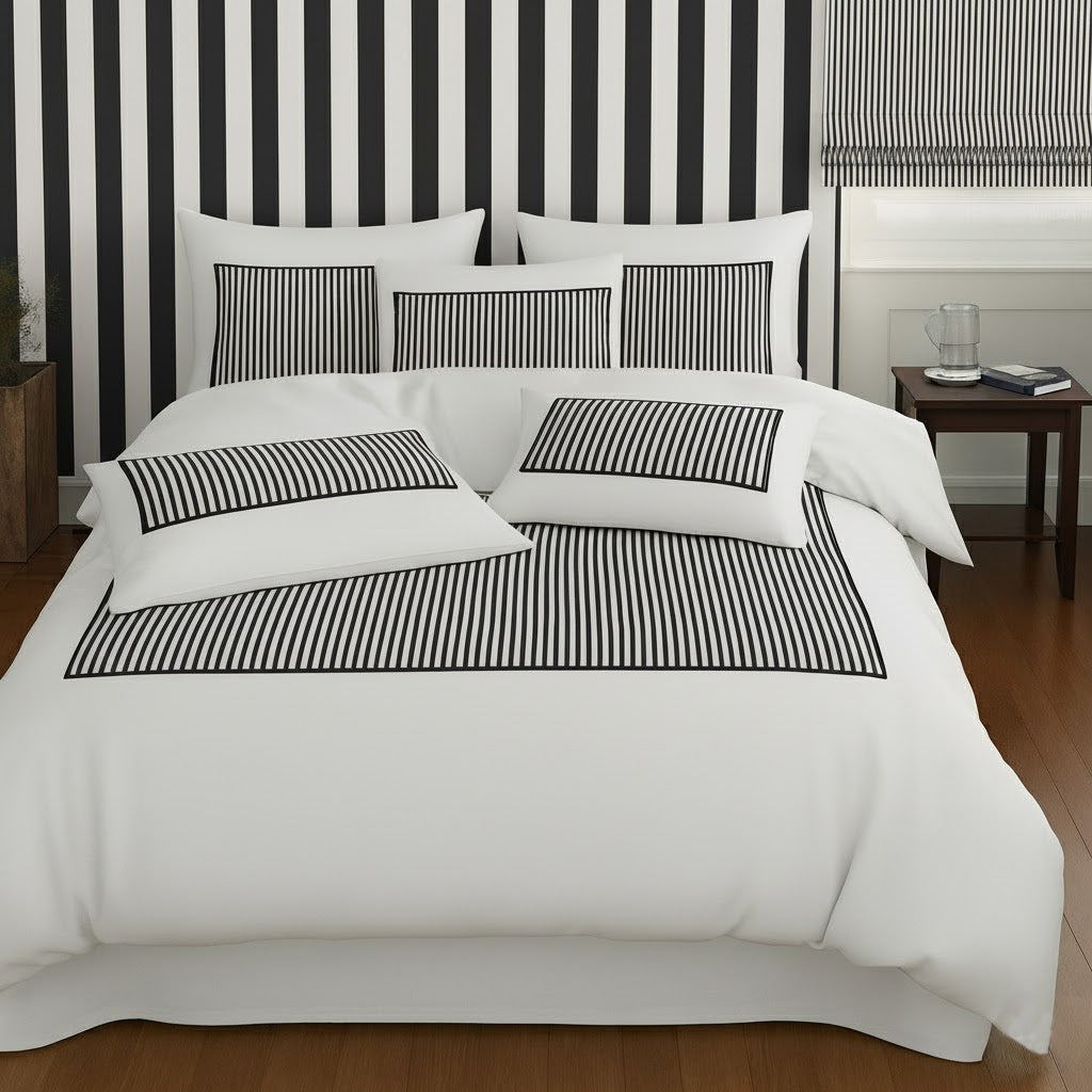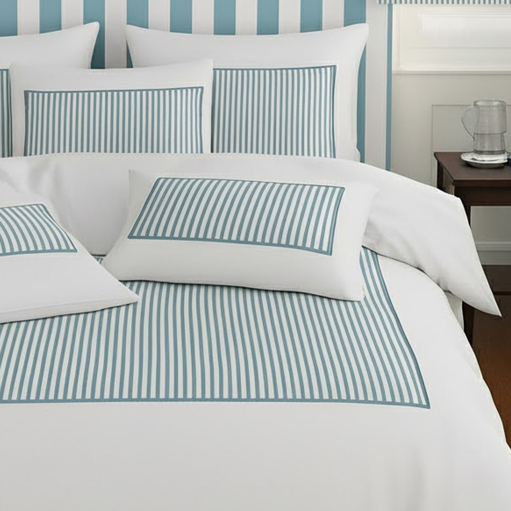 • Classic Applique Ticking Stripe Cotton Duvet Cover Set