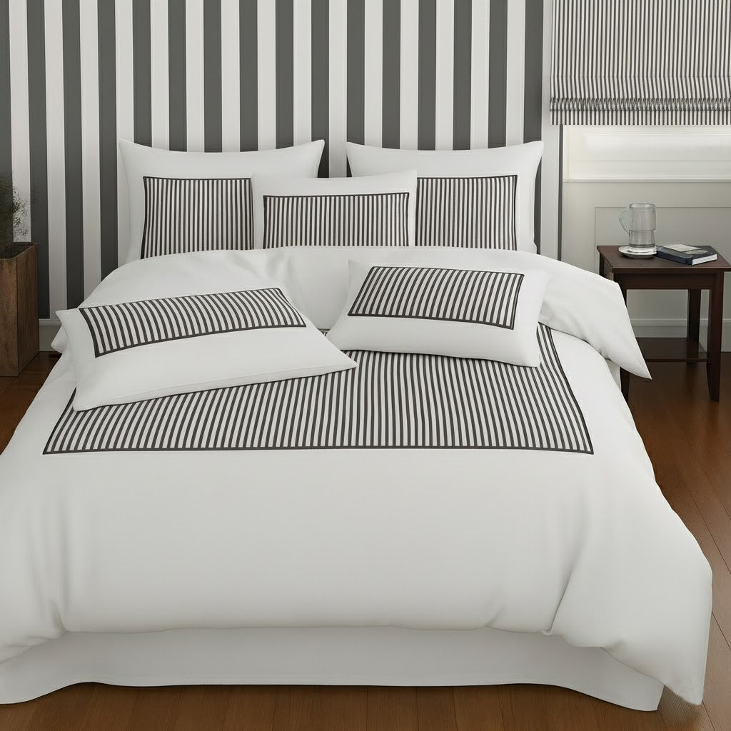 Classic Applique Ticking Stripe Cotton Duvet Cover Set