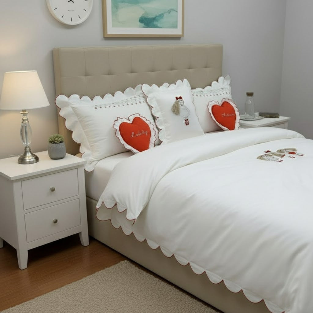 • Includes 1 Duvet Cover, 1 Euro Sham (26"X26") and 2 Heart Shape Decorative Pillows