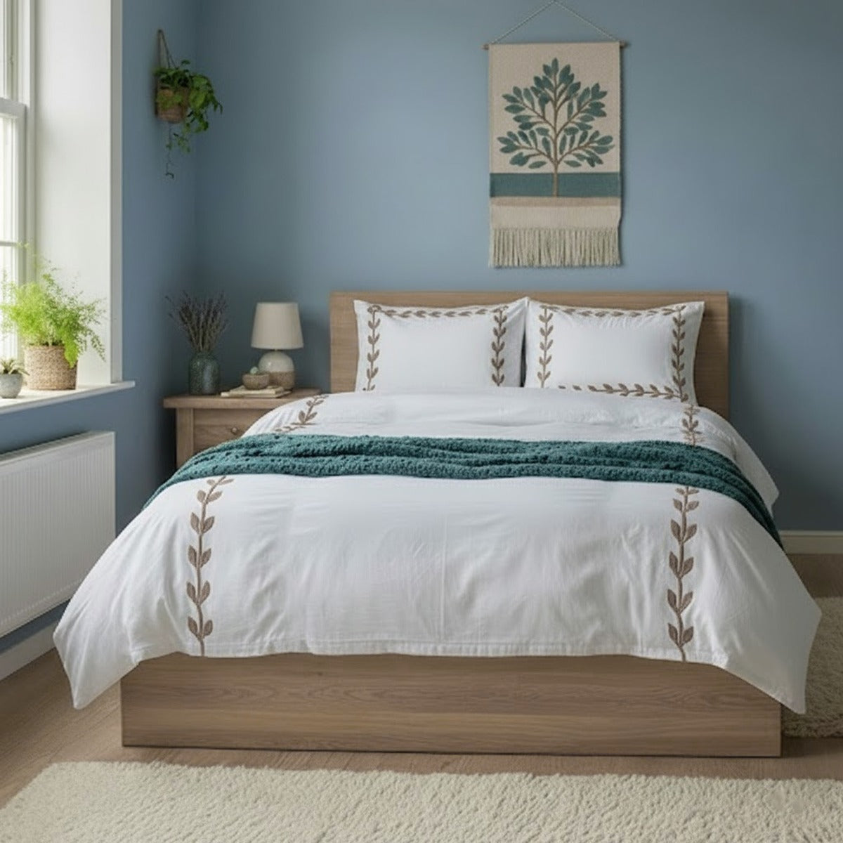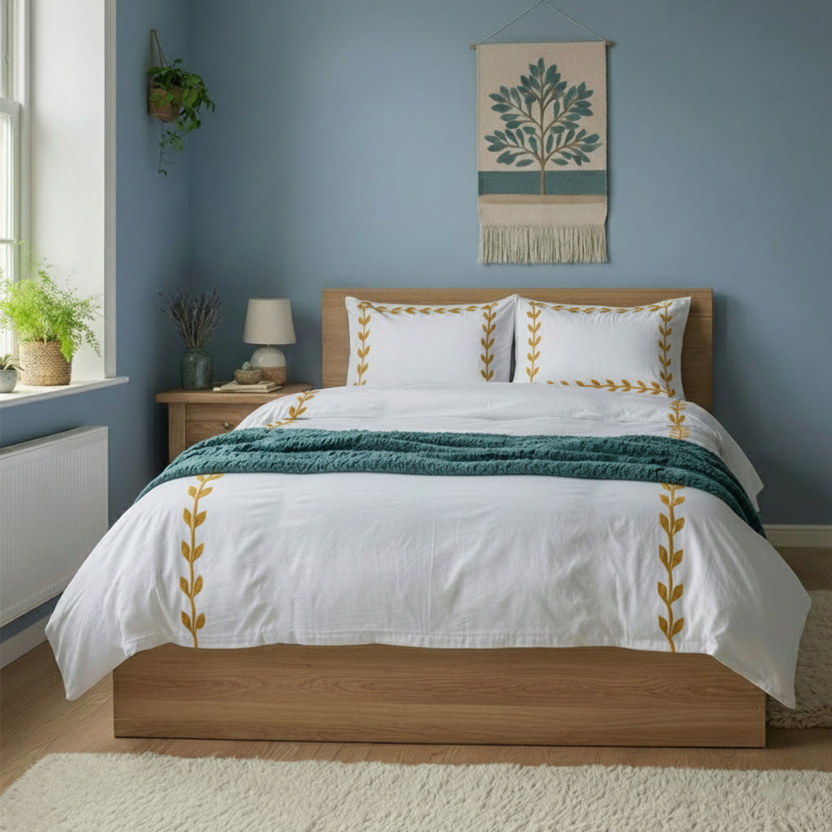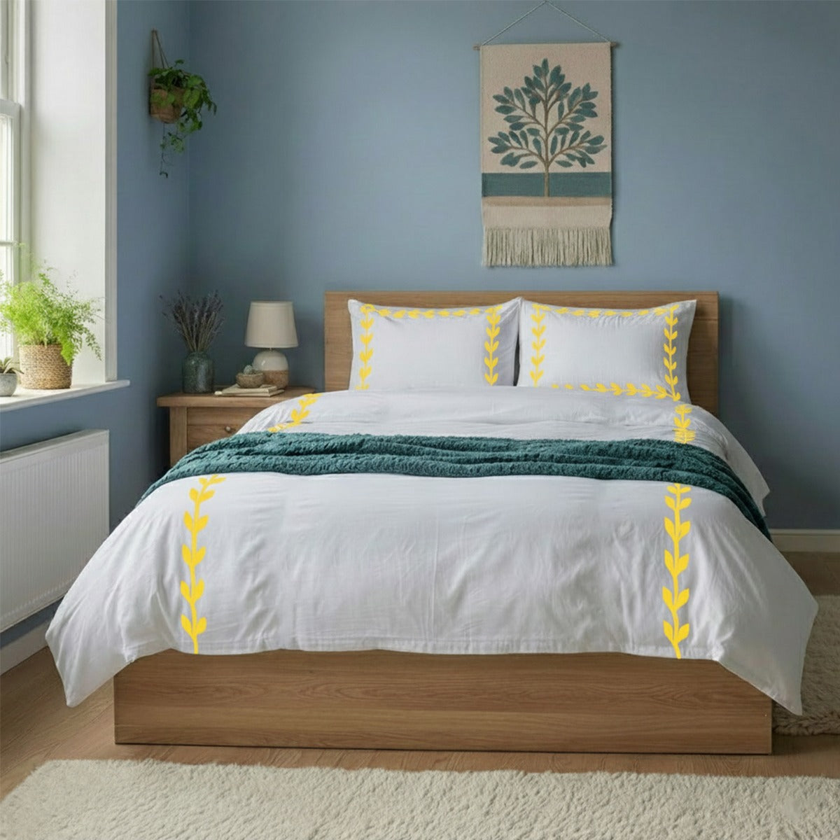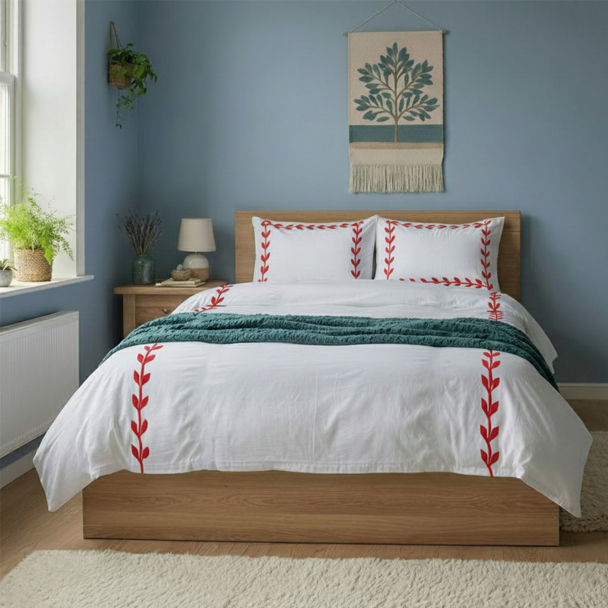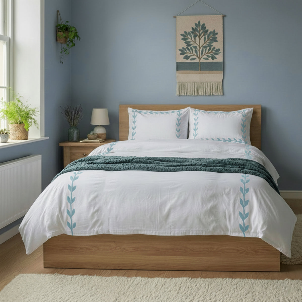 • Layered Leaf Applique Cotton Duvet Cover Set