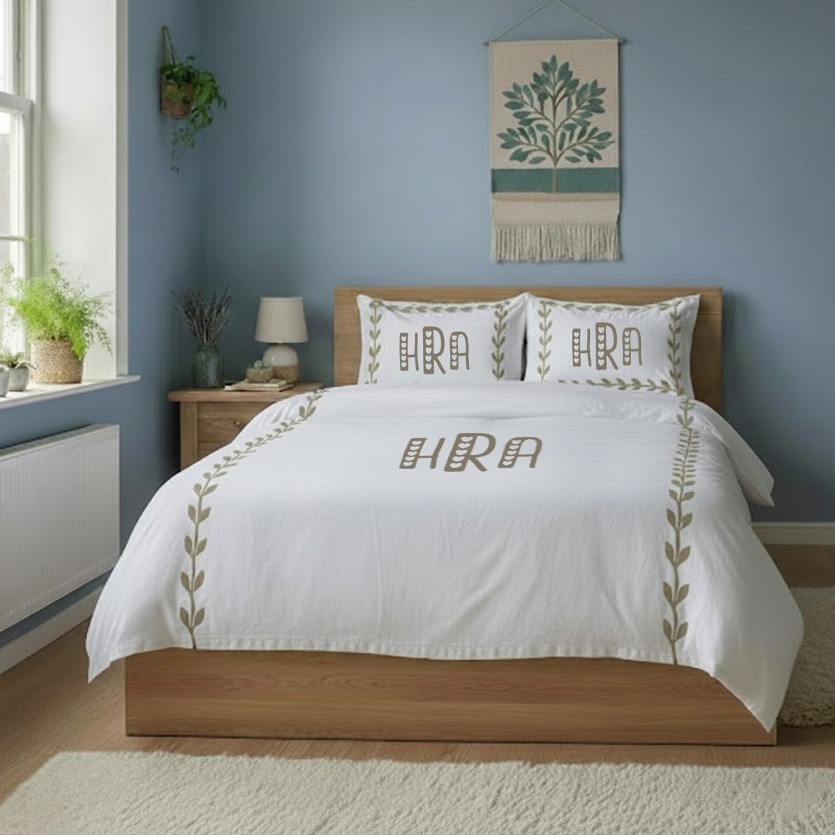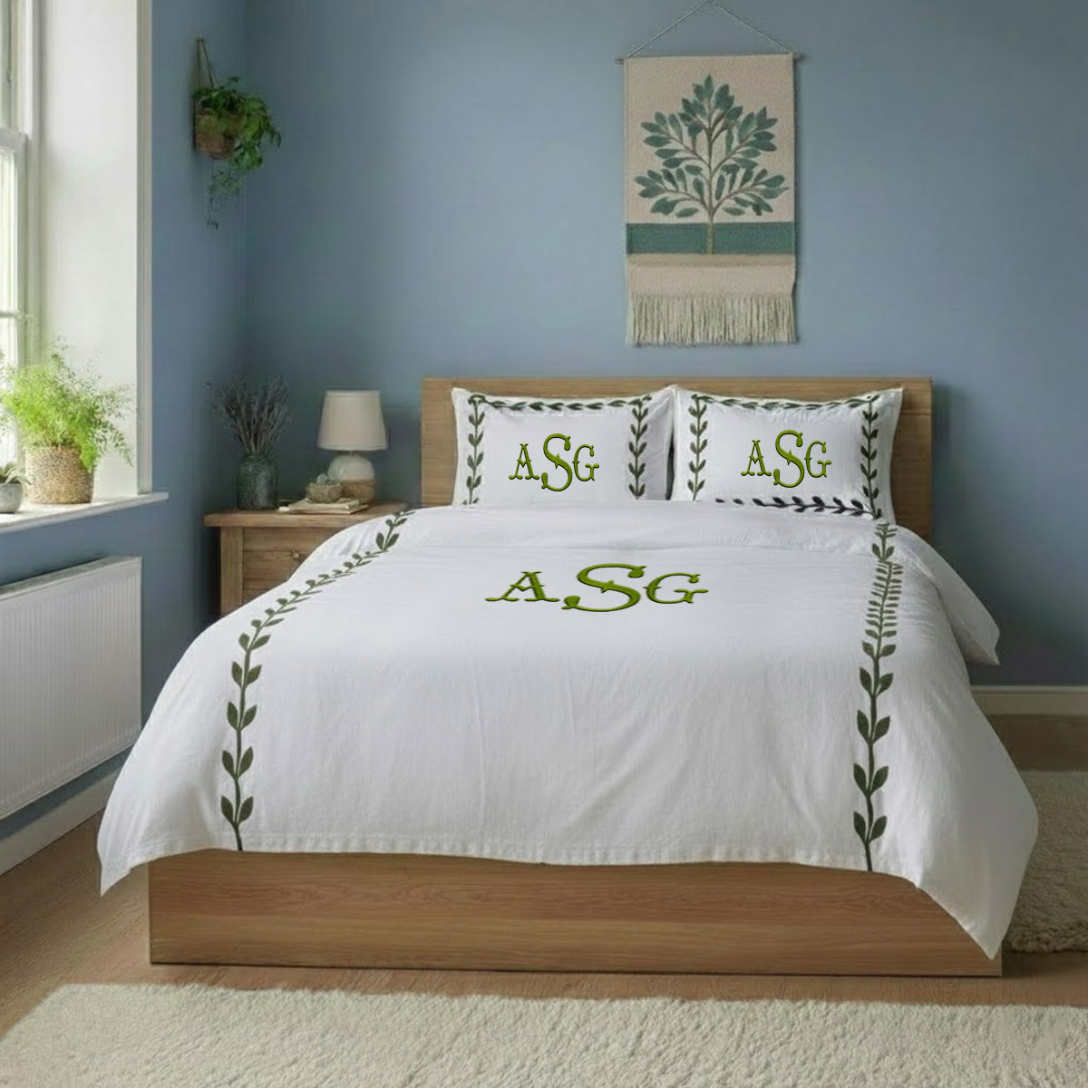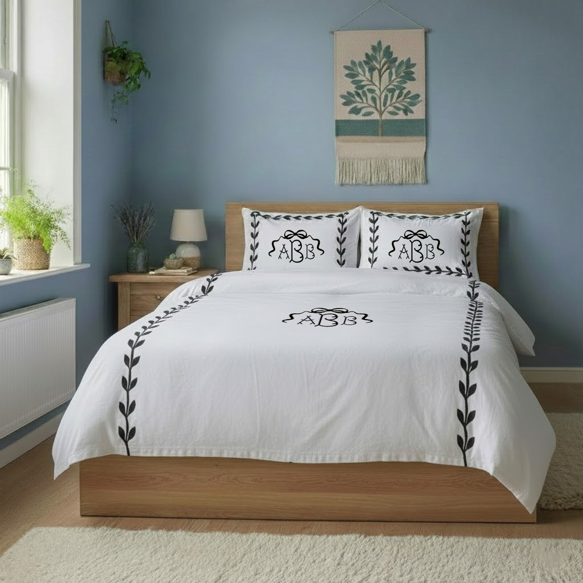 Monogram Layered Leaf Applique Cotton Duvet Cover Set