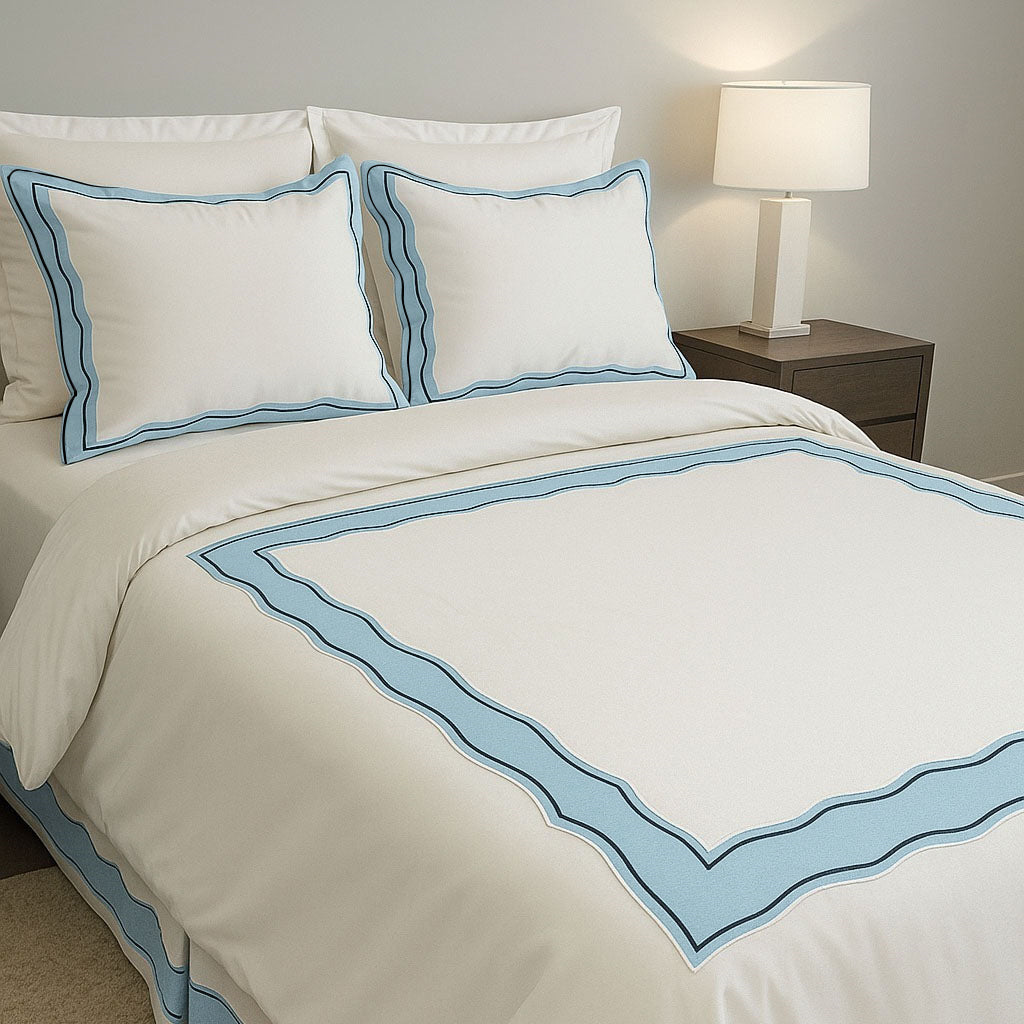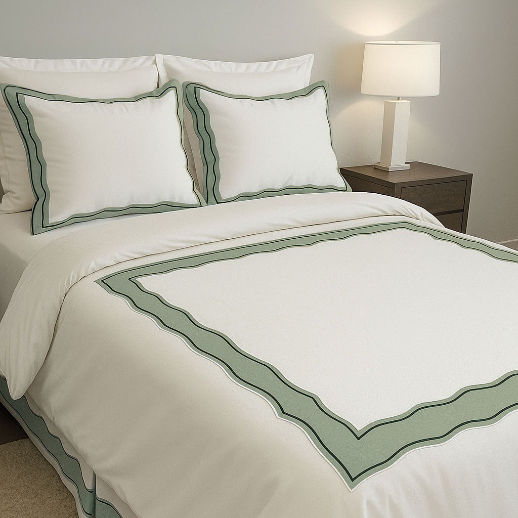• Features Sagrisa Applique Embroidery all around to pillow sham and duvet cover