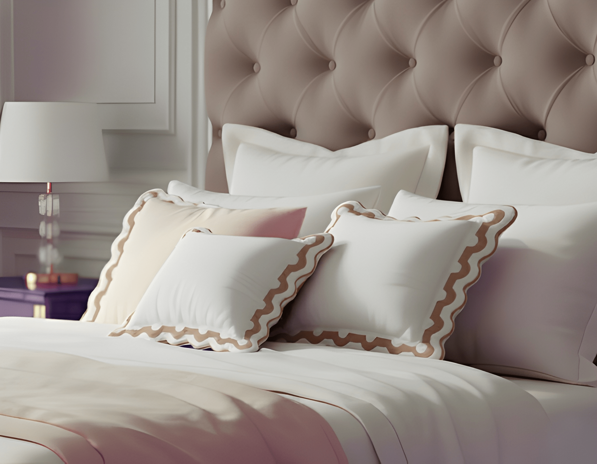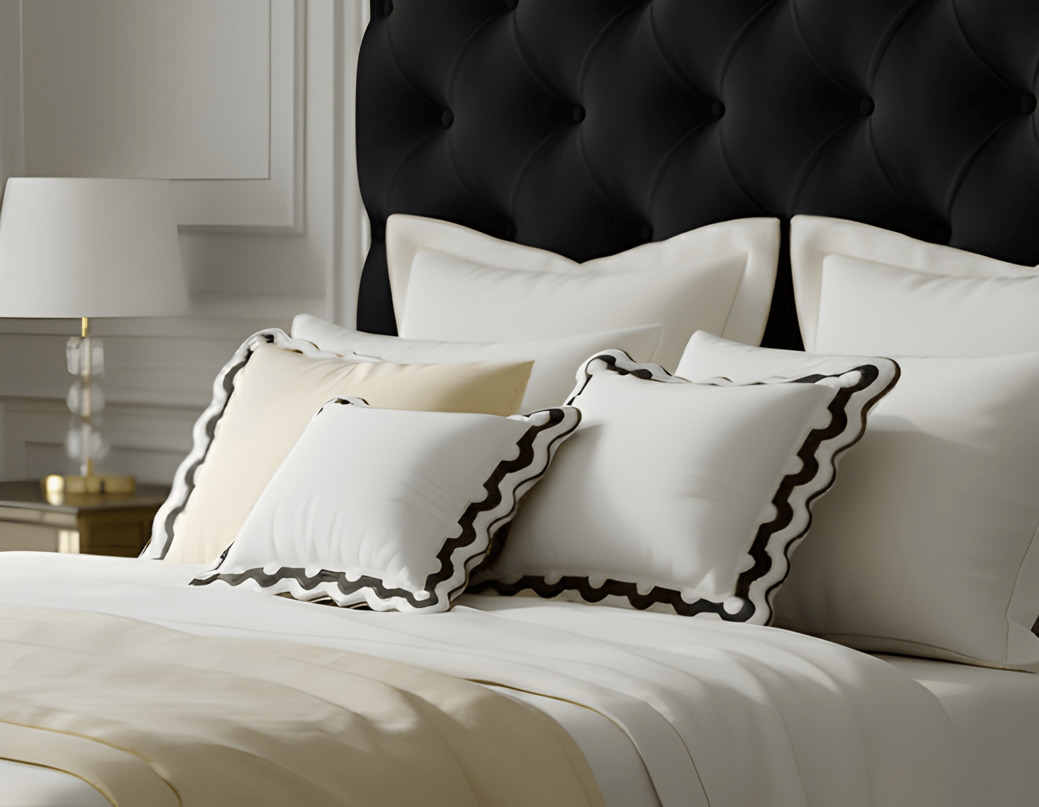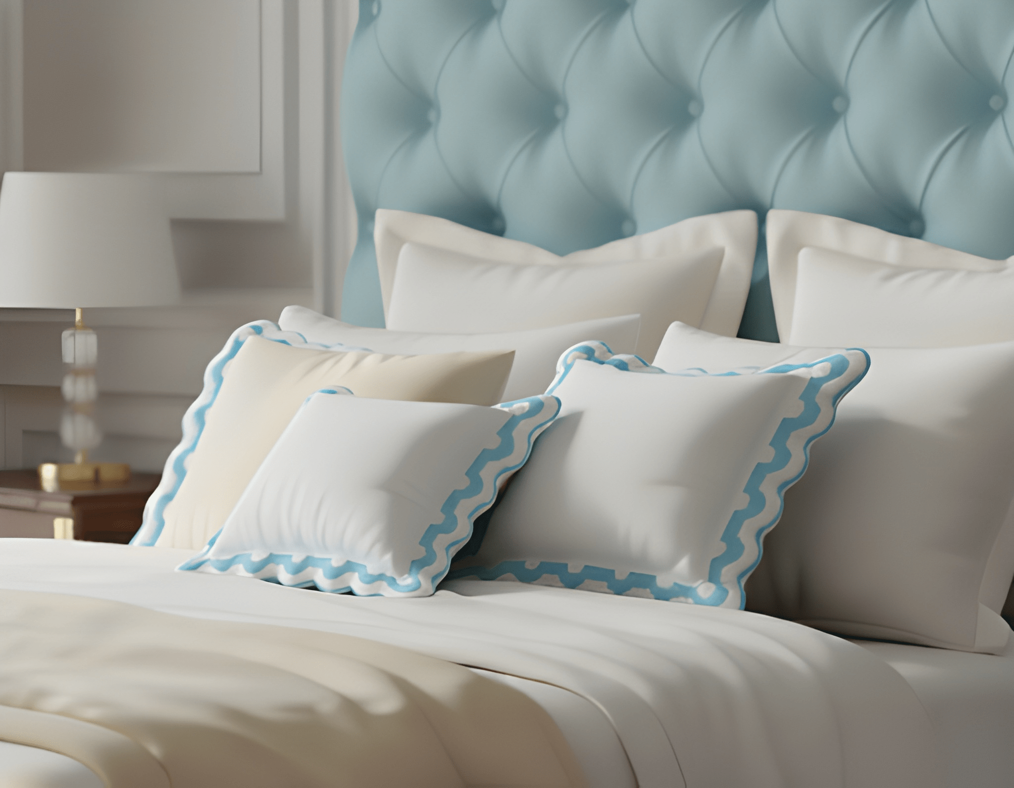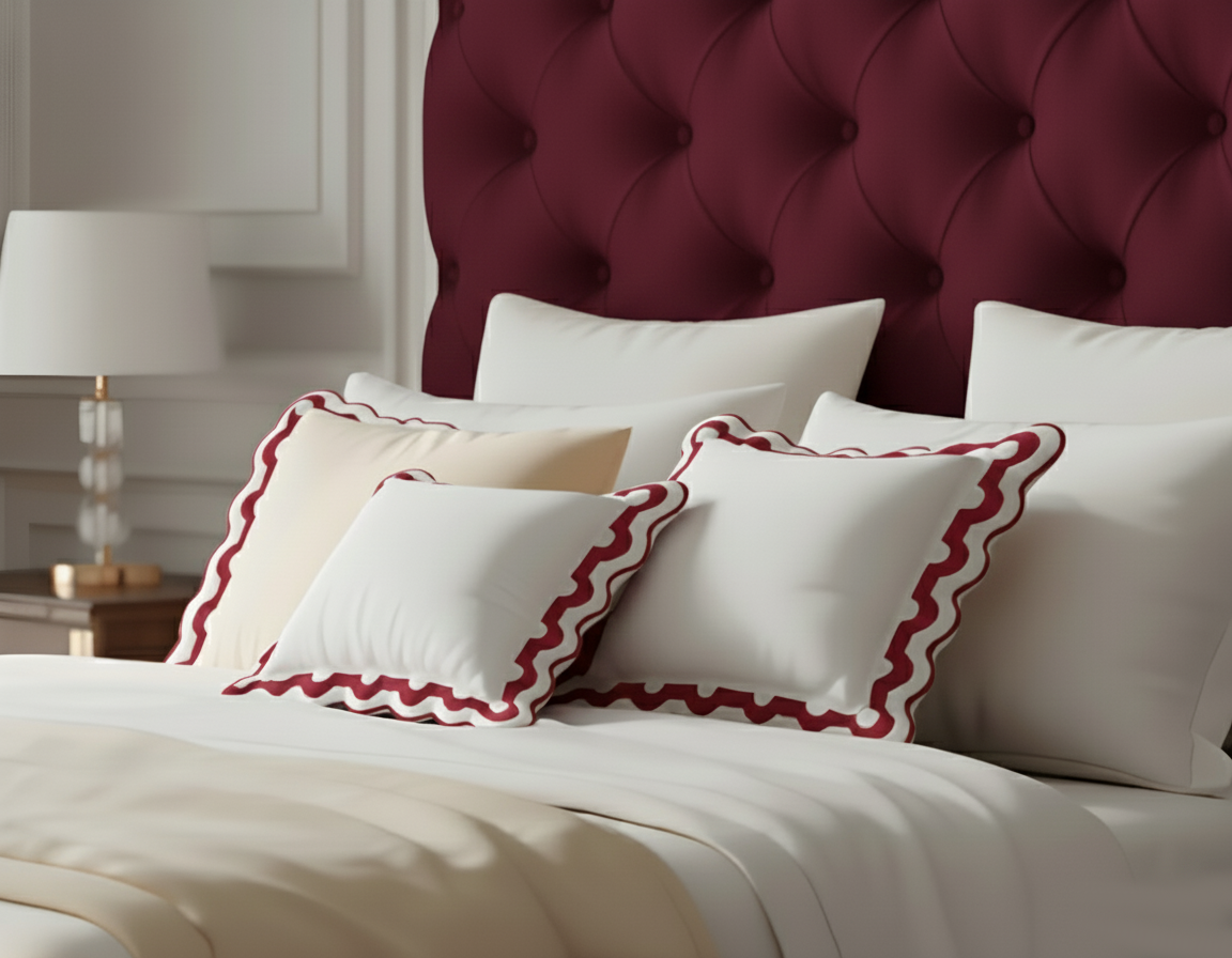 400TC U Shape Applique Scalloped Embroidery Cotton Euro Sham