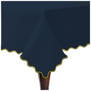 Scallop Embroidery Sateen Cotton Solid Table Cloth - Navy