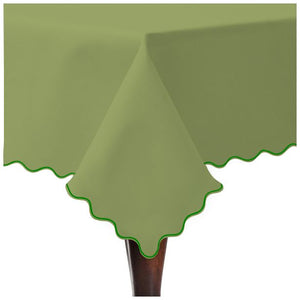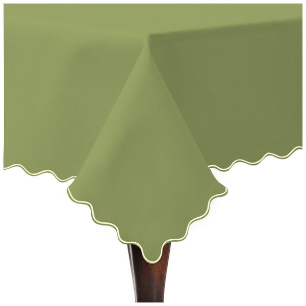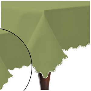 • Scallop Embroidery Sateen Cotton Solid Table Cloth - Sage