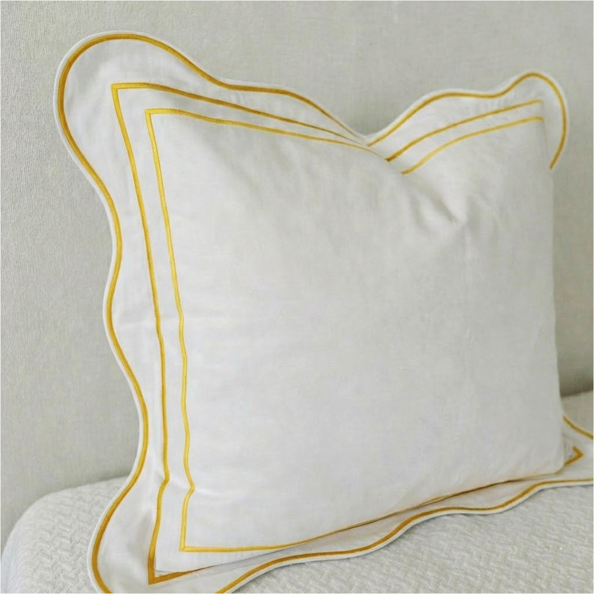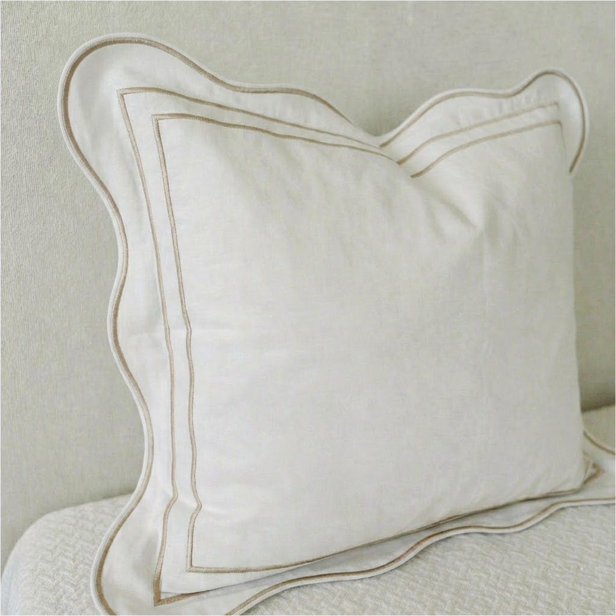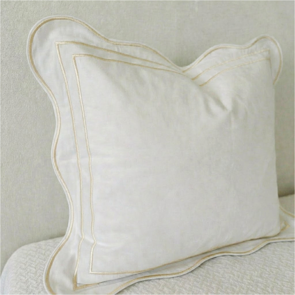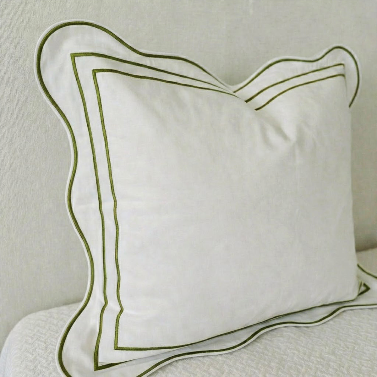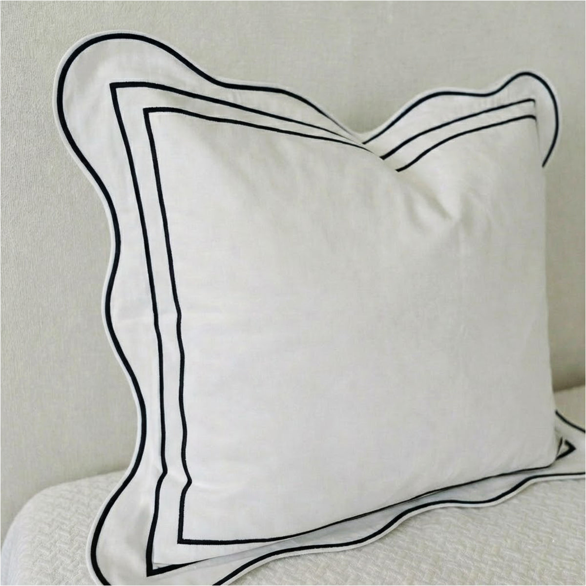 400TC Wavy Embroidery & Border Cotton Sateen Solid Pillow Sham