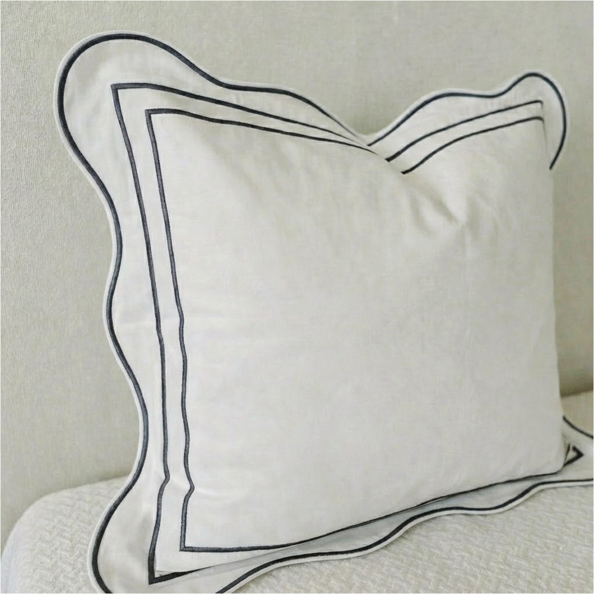 • Features fabric trim & embroidery wavy piping and border all around to pillow sham