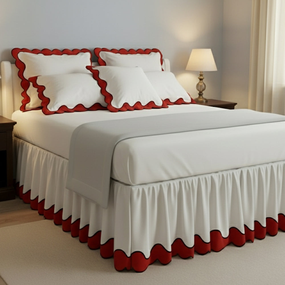 • Scalloped & Wavy Applique Embroidery Cotton Pillow Sham