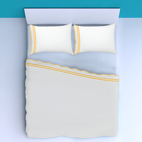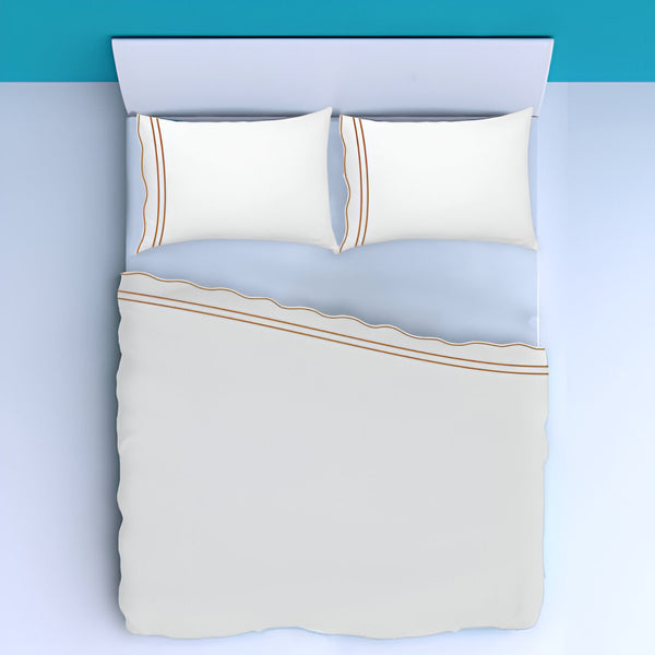 400TC Wavy Embroidery & Border Cotton Sateen Solid Sheet Set