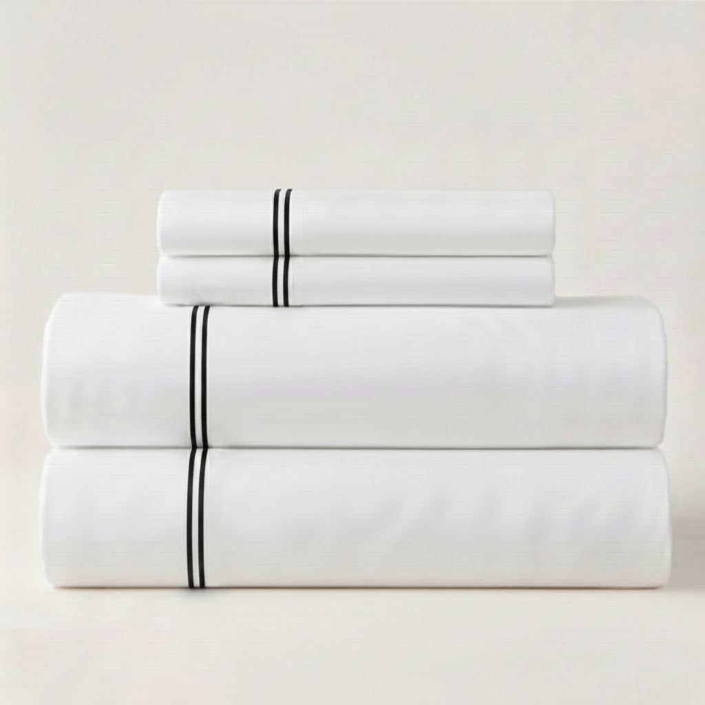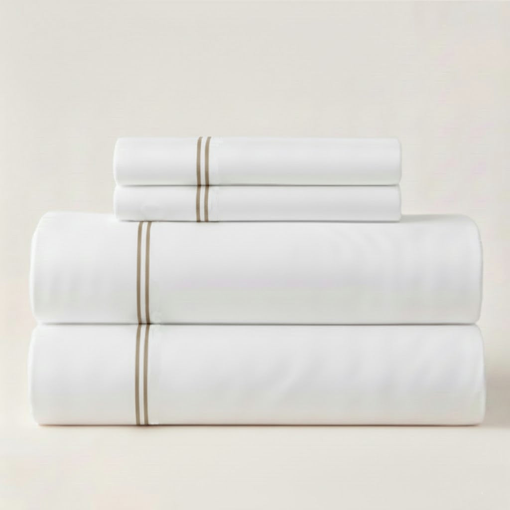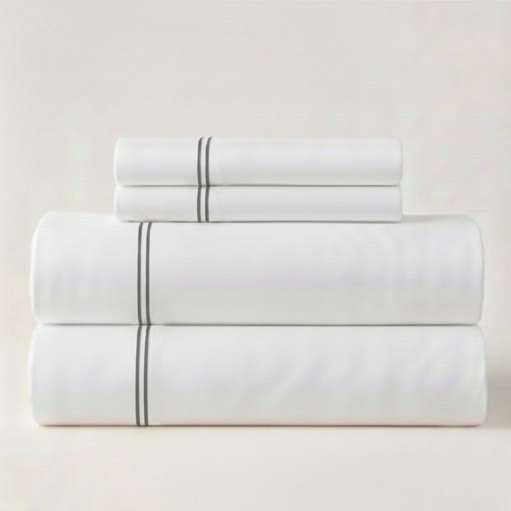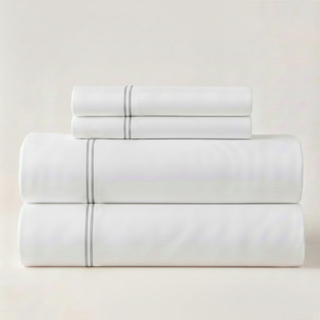 • 400TC Double Embroidery Sateen Solid Cotton Sheet Set