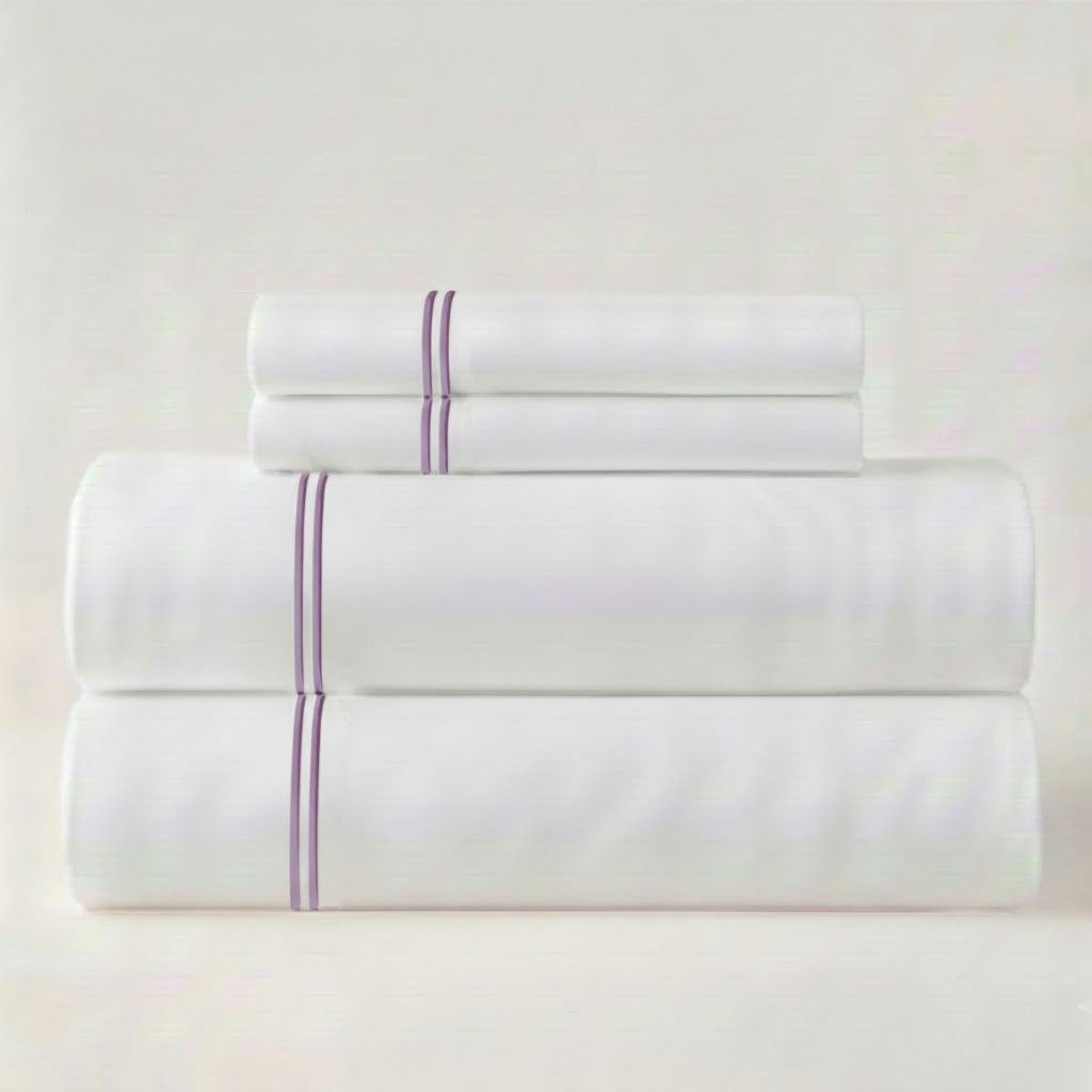 400TC Double Embroidery Sateen Solid Cotton Sheet Set