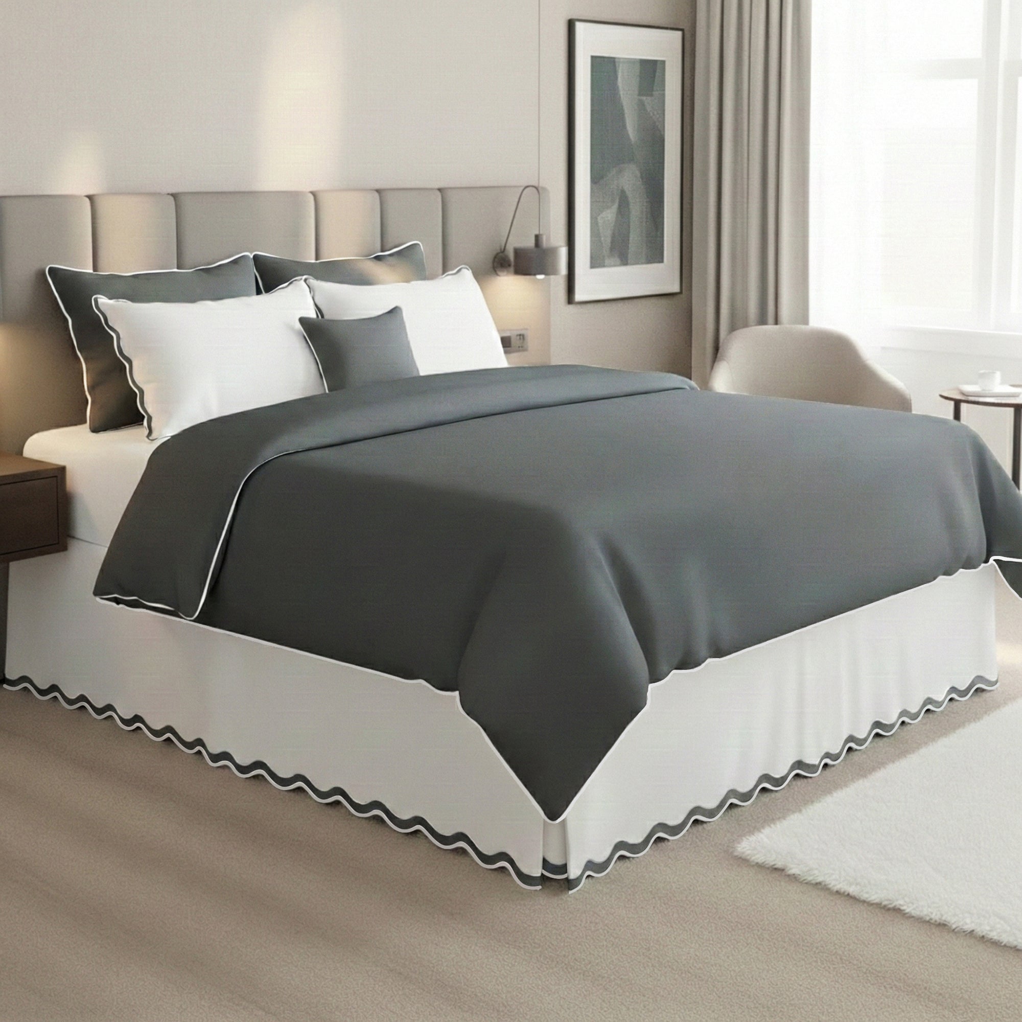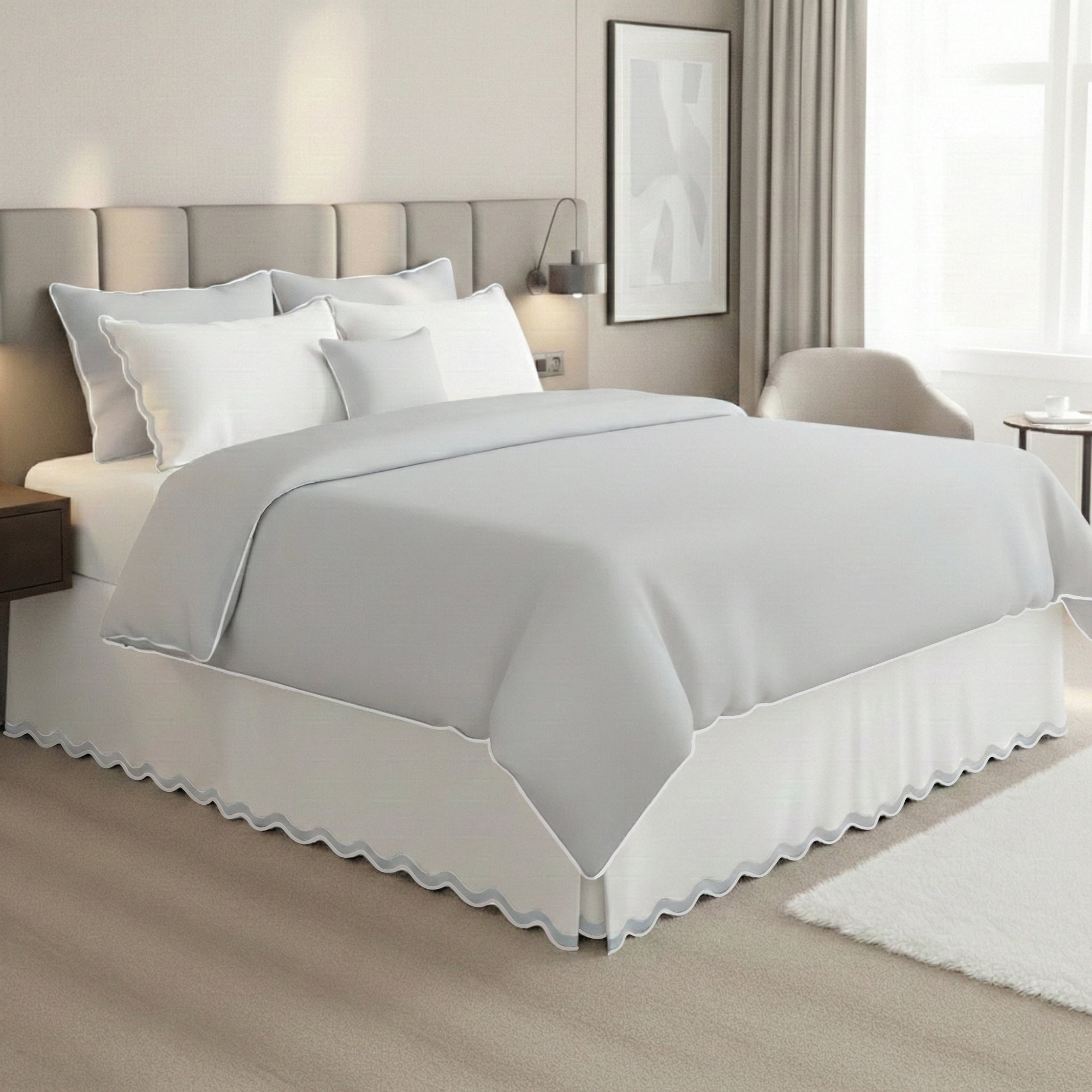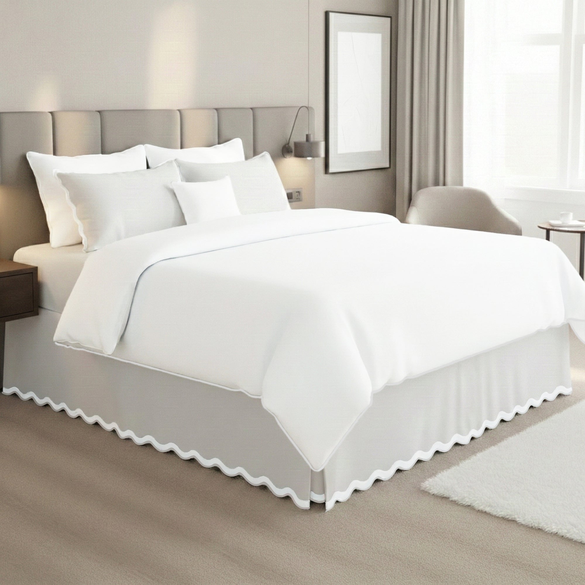 400TC Applique Scalloped Cotton Scallop Embroidery Tailored Bed Skirt