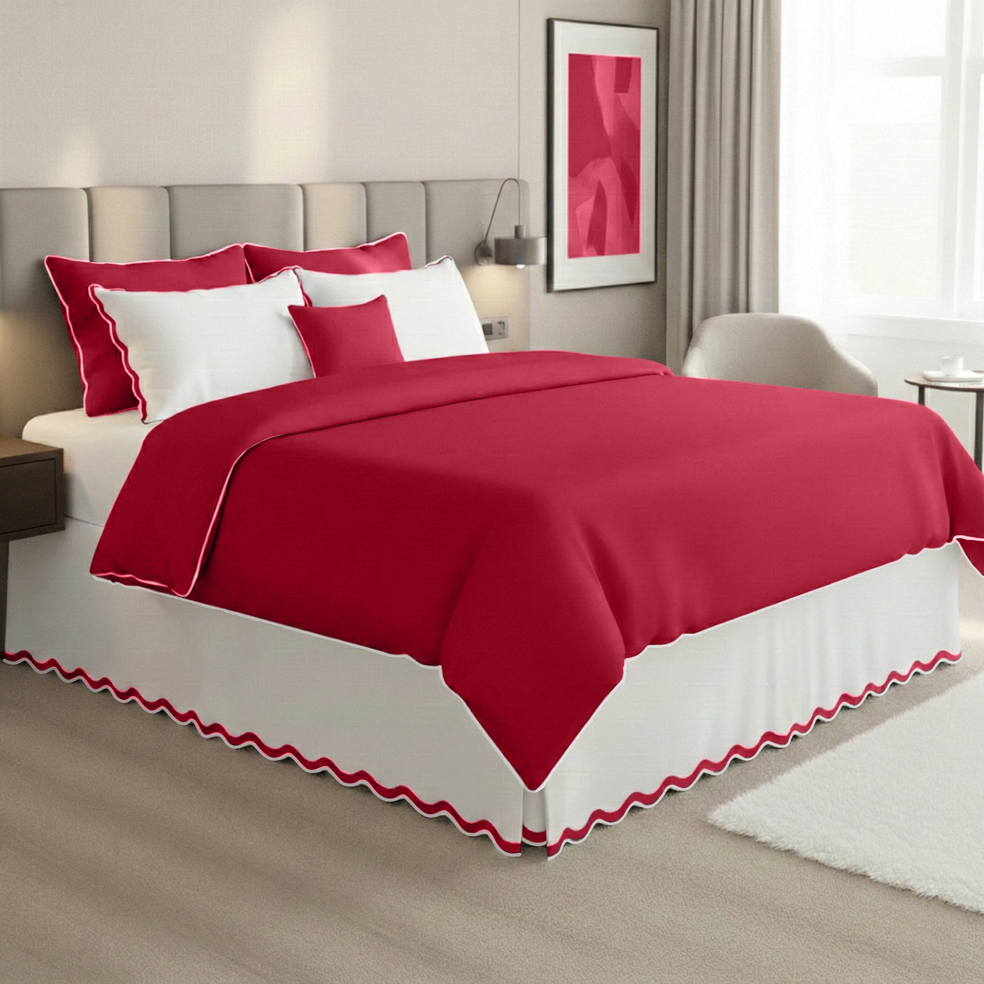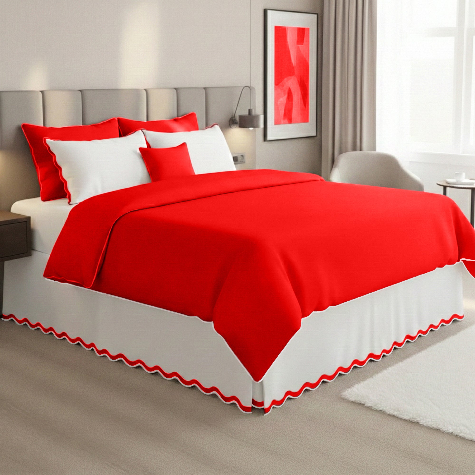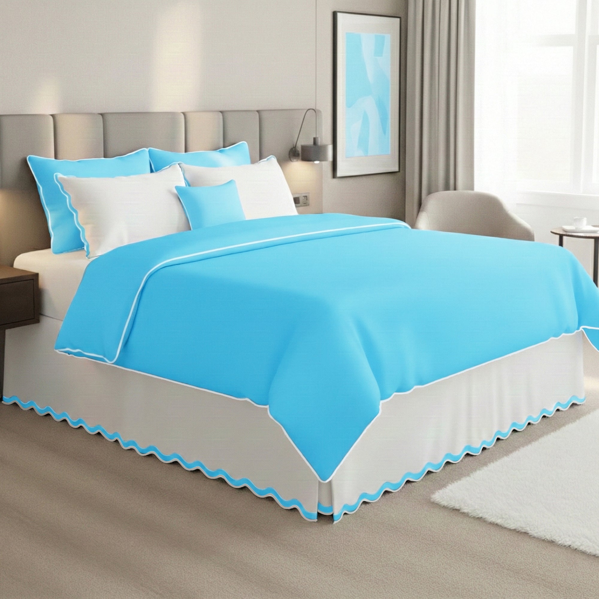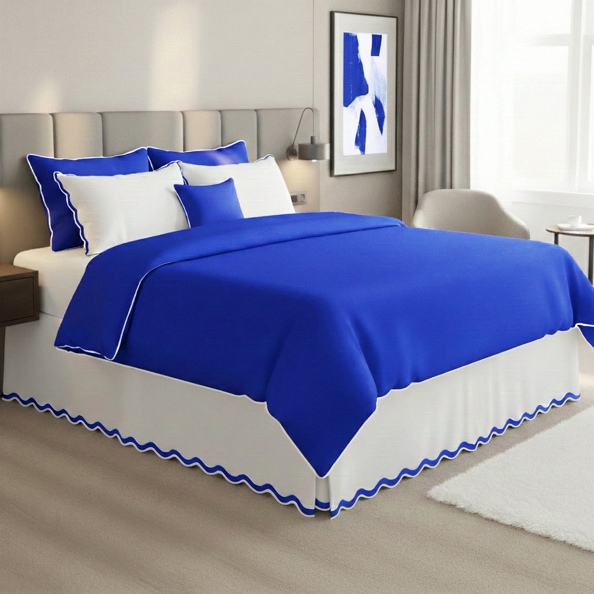 400TC Applique Scalloped Cotton Scallop Embroidery Tailored Bed Skirt