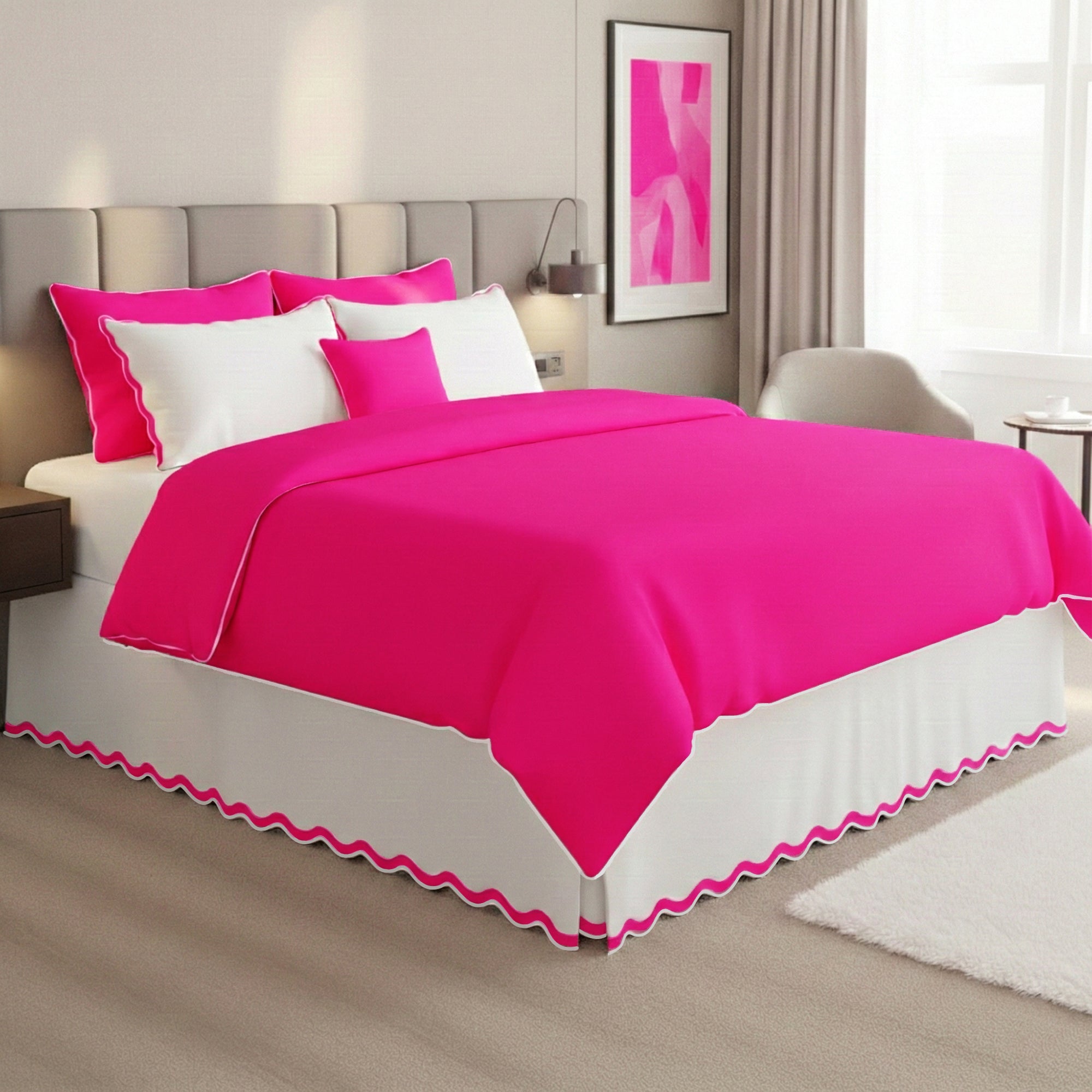 • Features Applique Scalloped Embroidery all around to bed skirt