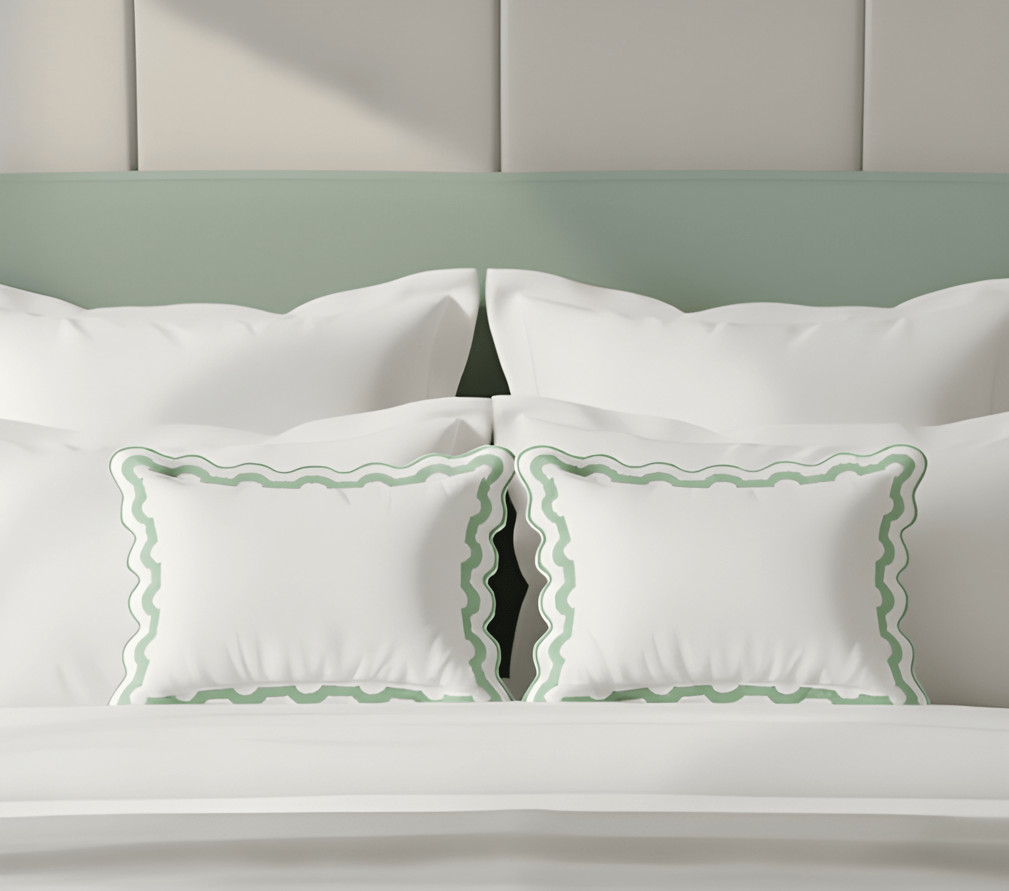 400TC U Shape Applique Scalloped Embroidery Cotton Pillow Sham