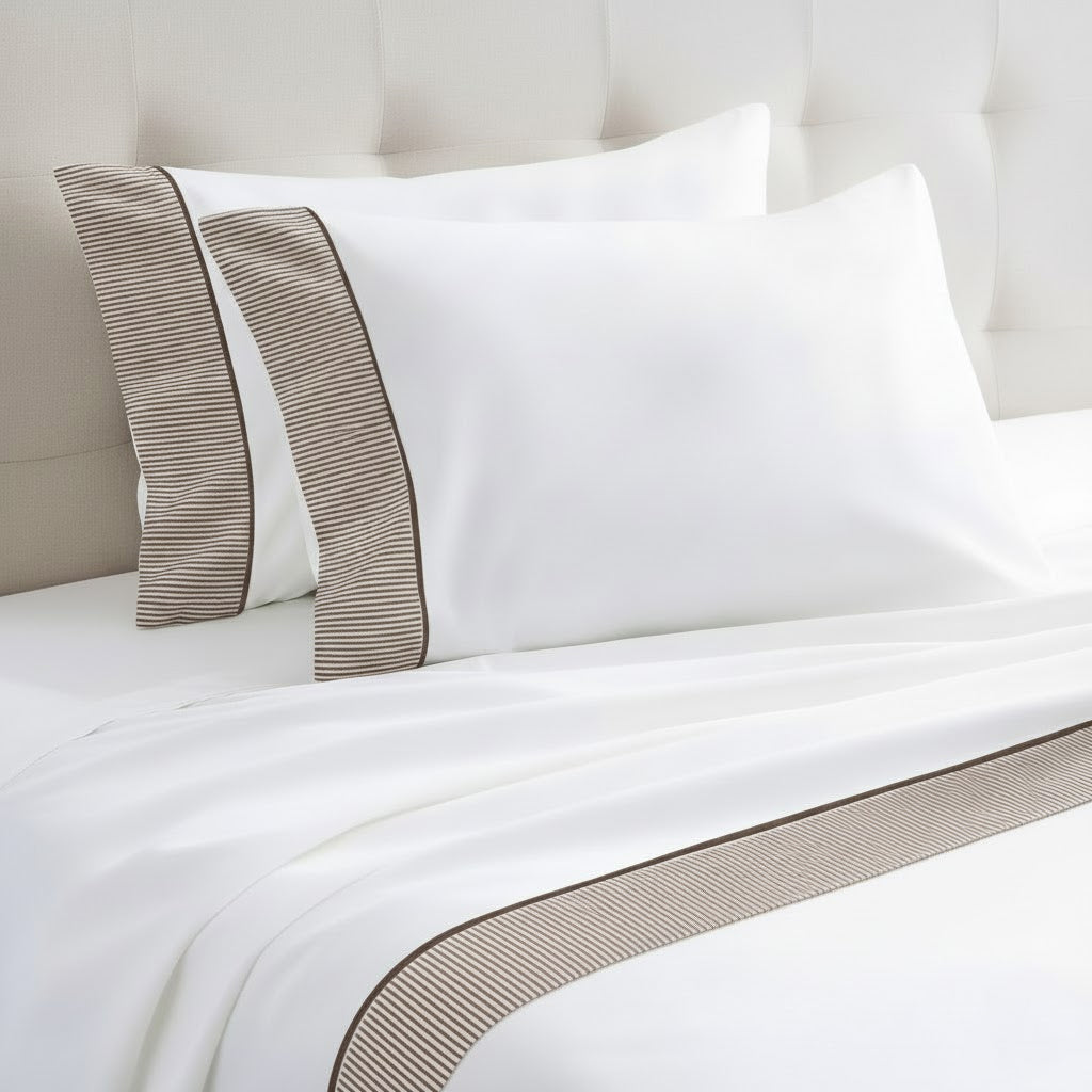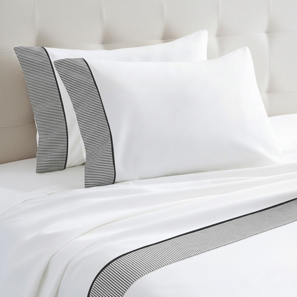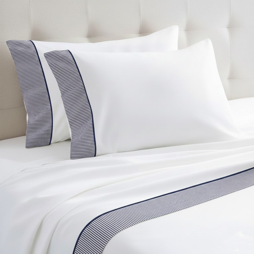 • Classic Applique Ticking Stripe Cotton Pillowcases (Set of 2)