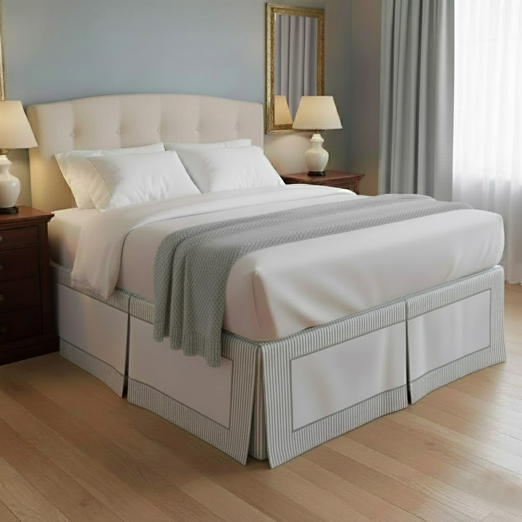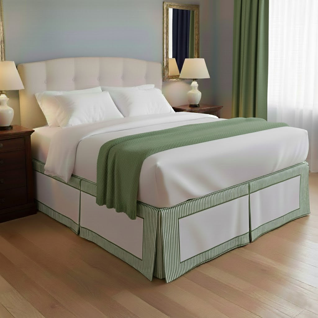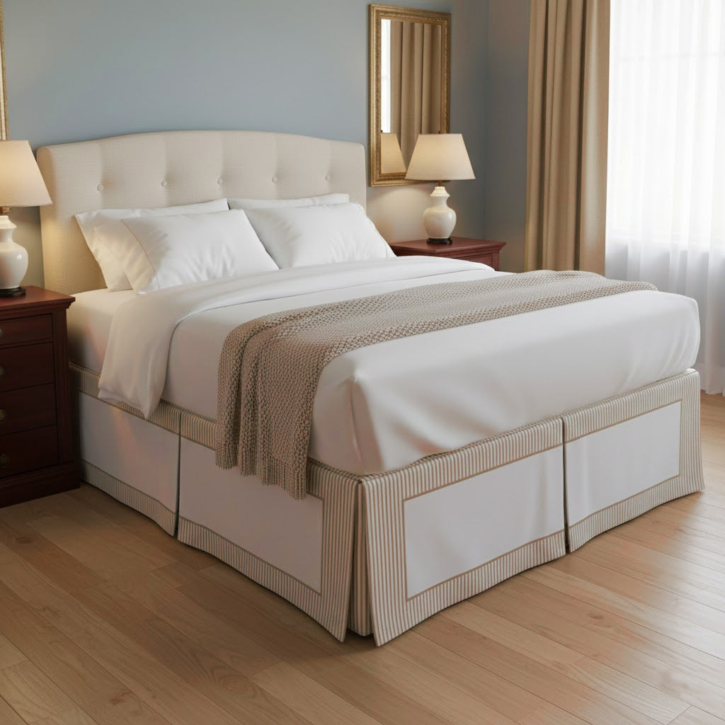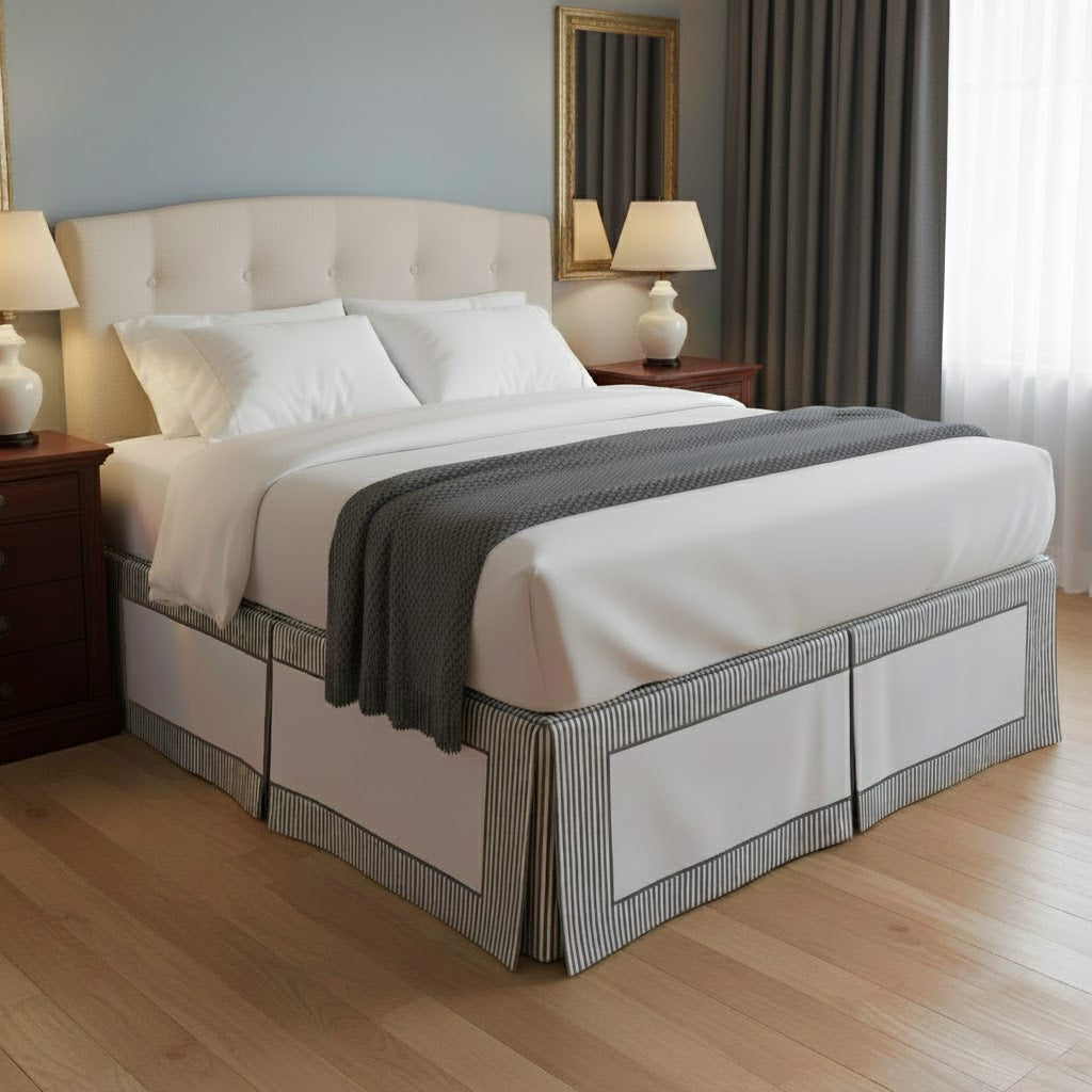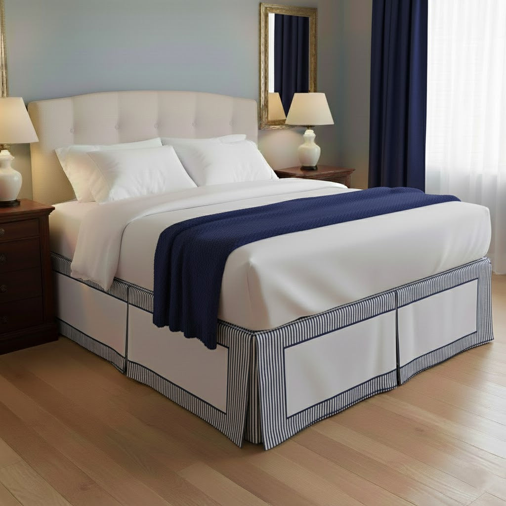Classic Applique Ticking Stripe Cotton Tailored Bed Skirt