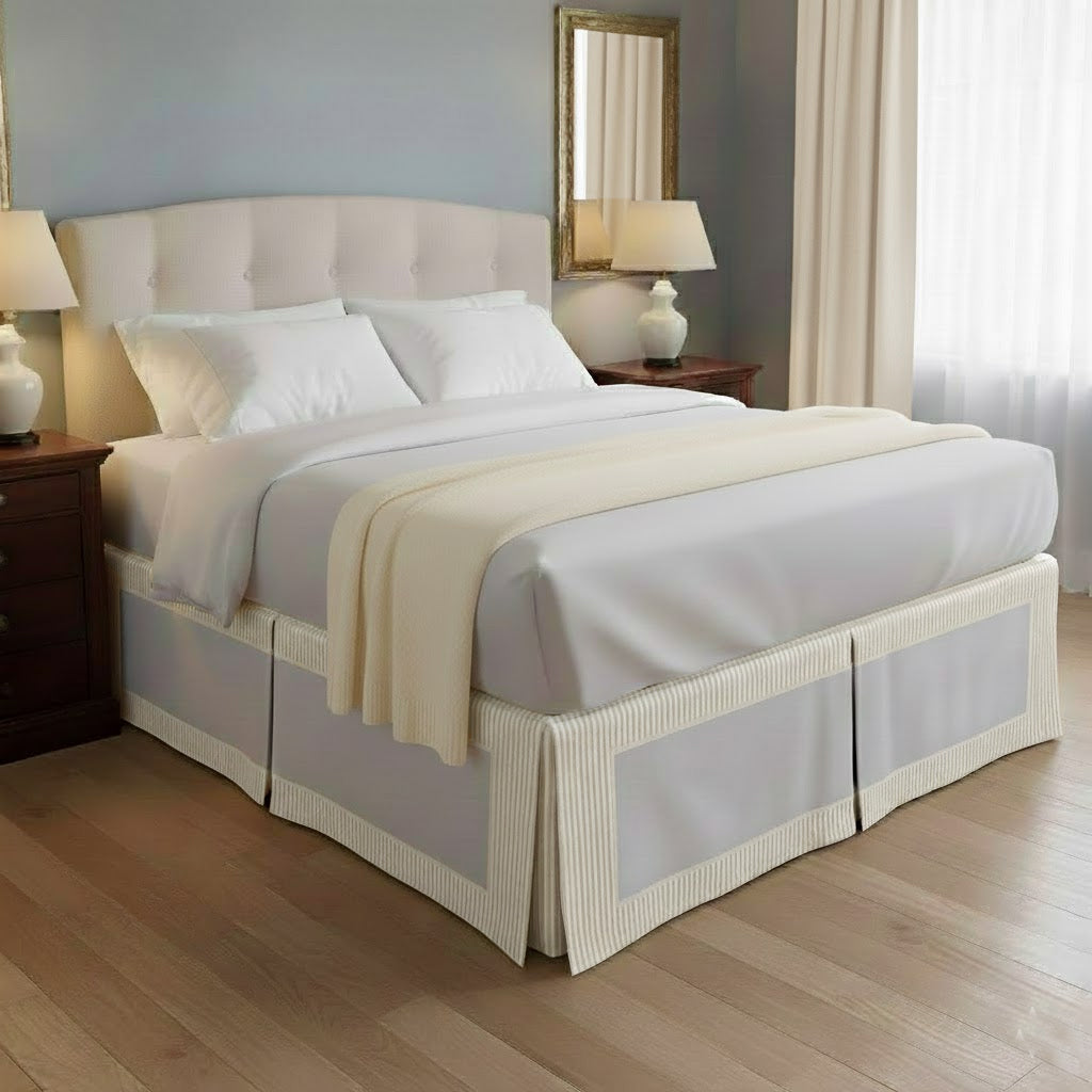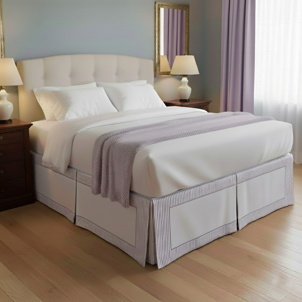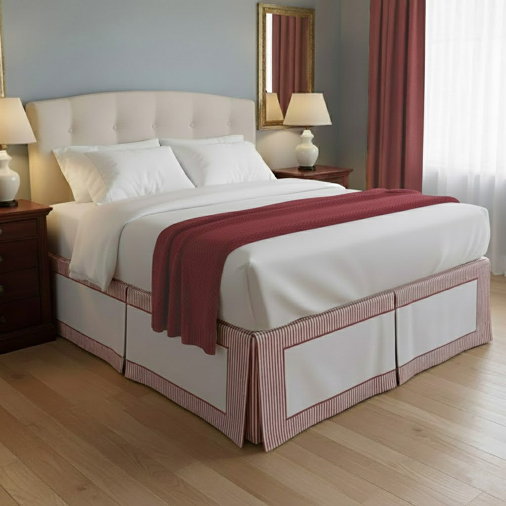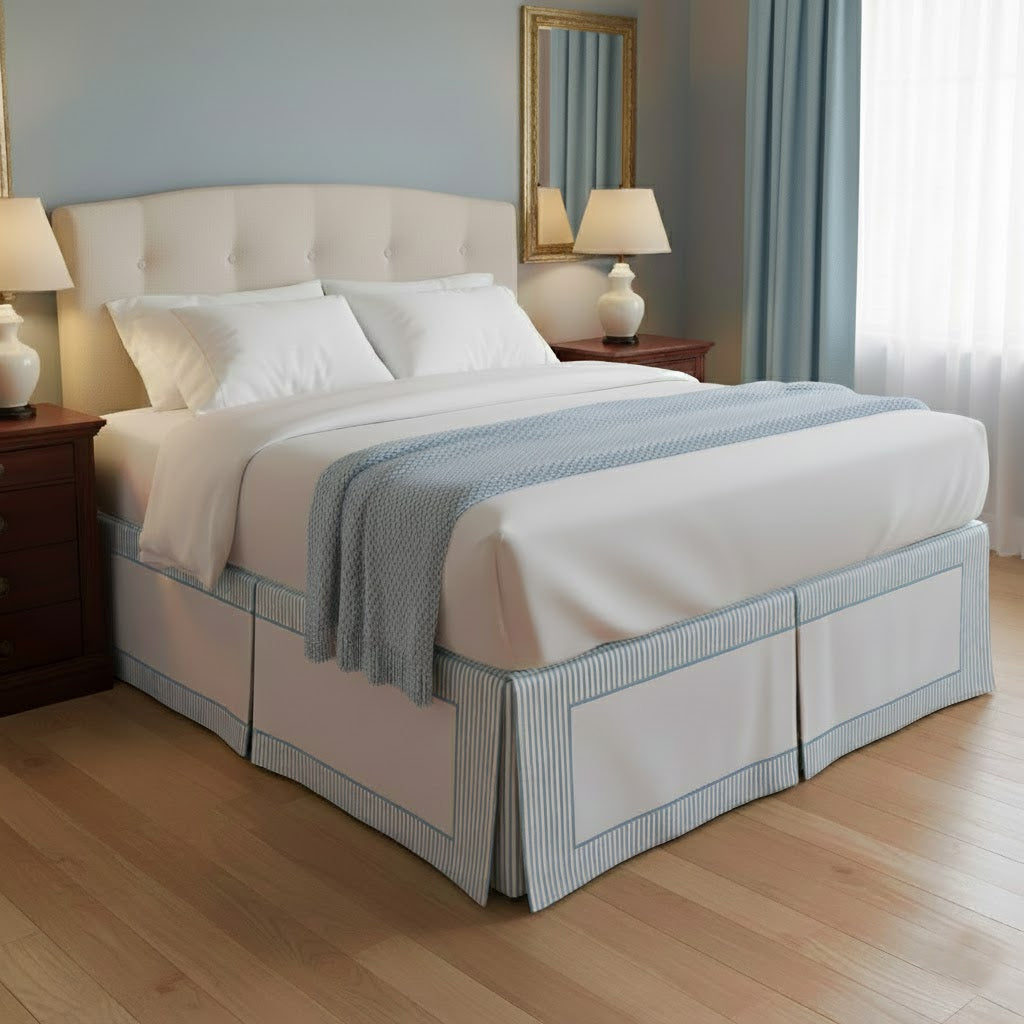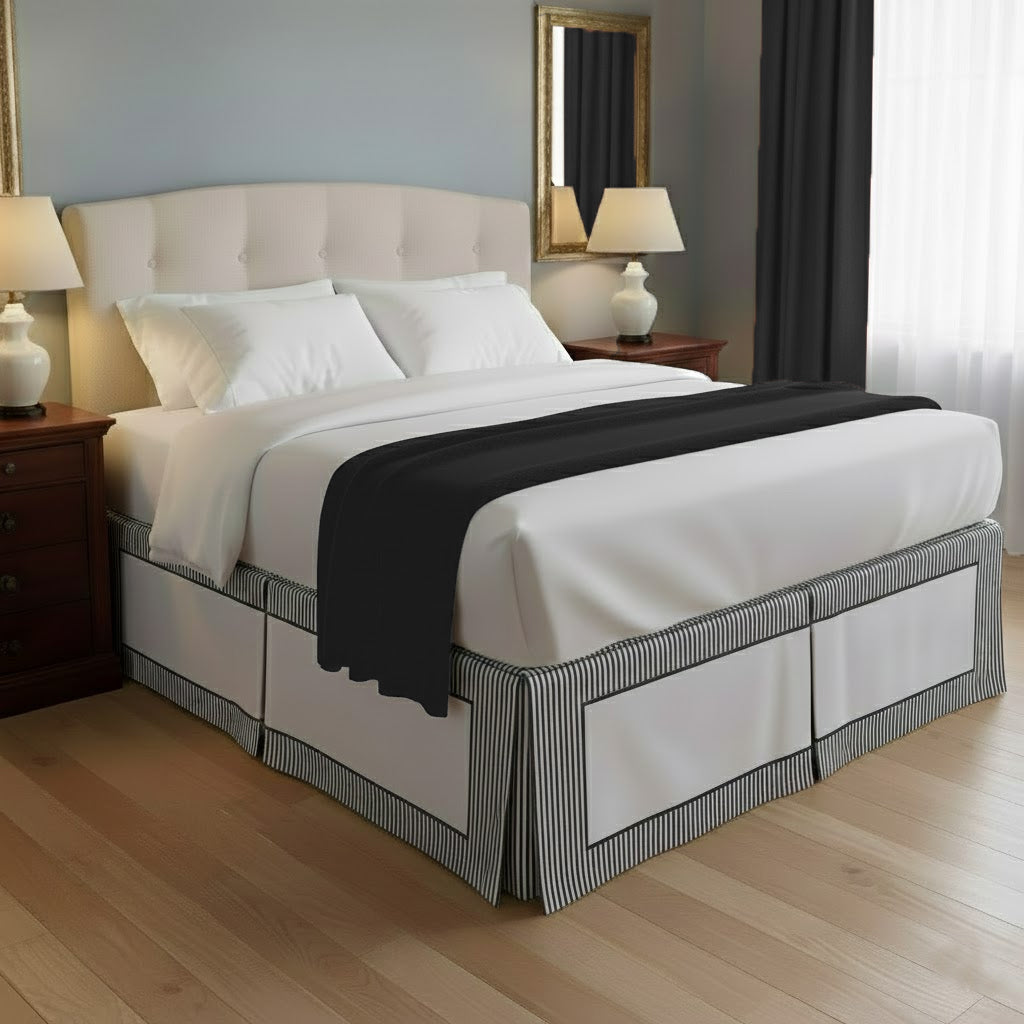 Classic Applique Ticking Stripe Cotton Tailored Bed Skirt