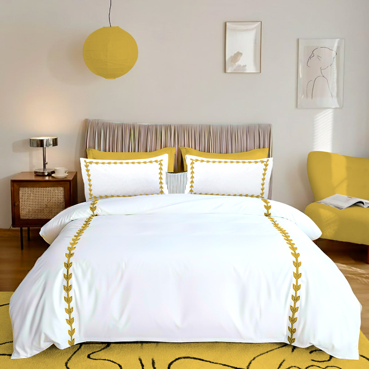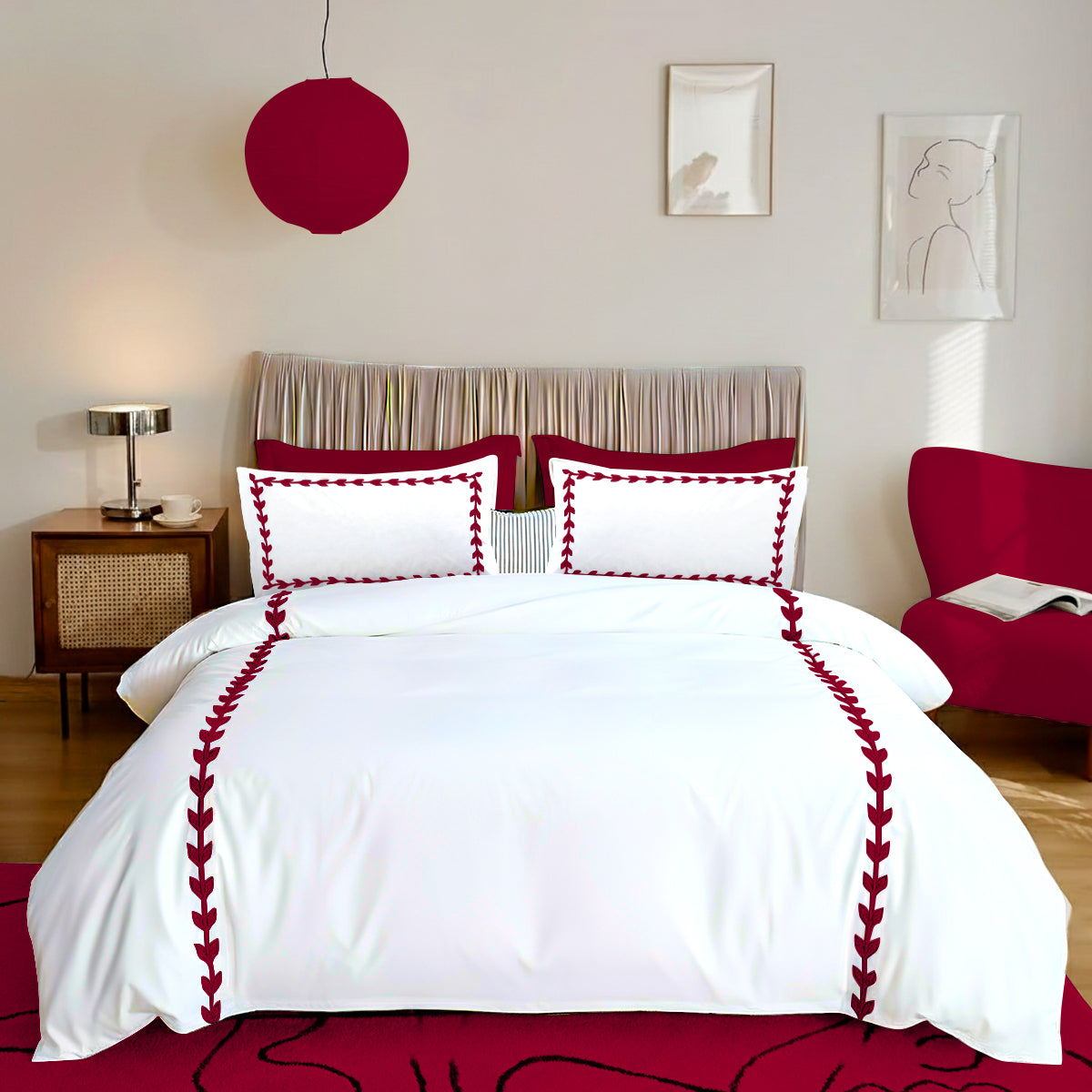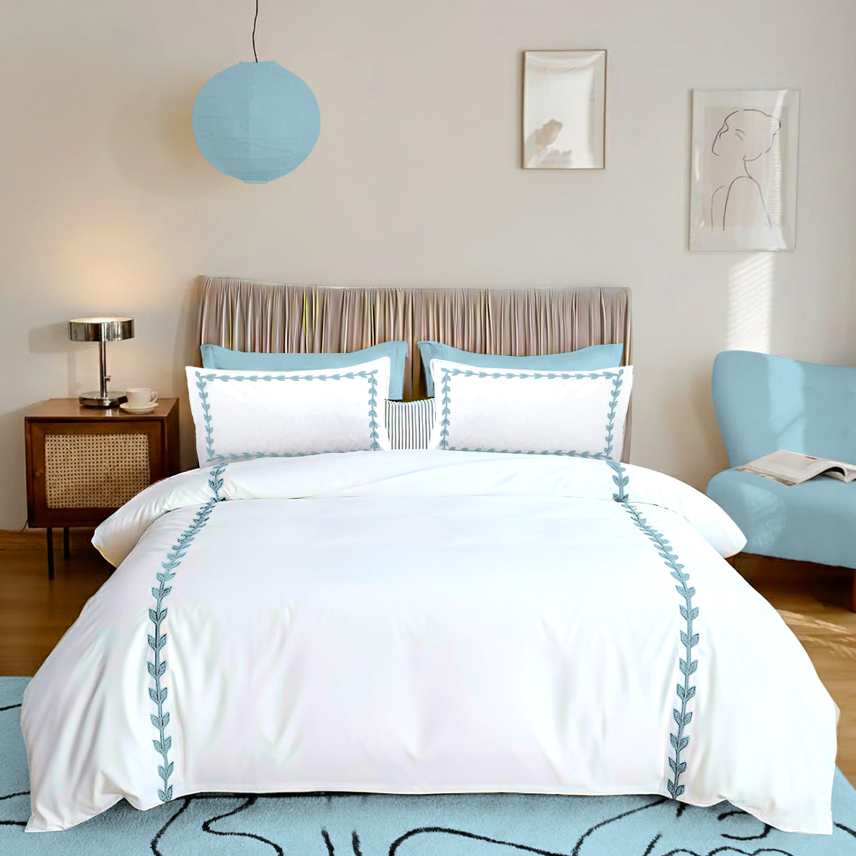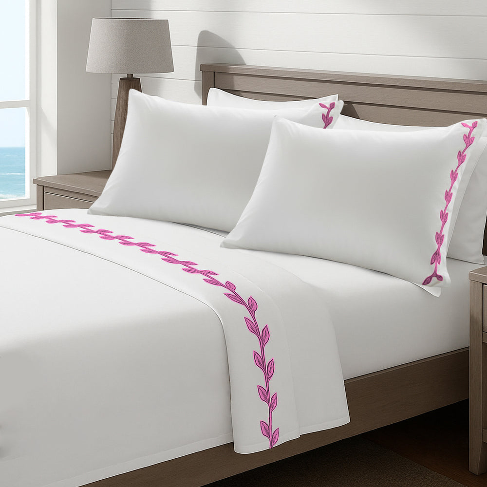 • Features fabric trim and Layered Leaf Applique all around the pillow shams and duvet cover