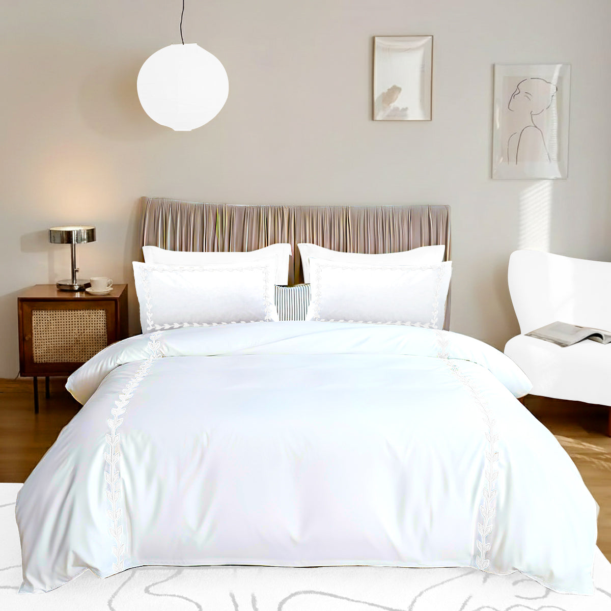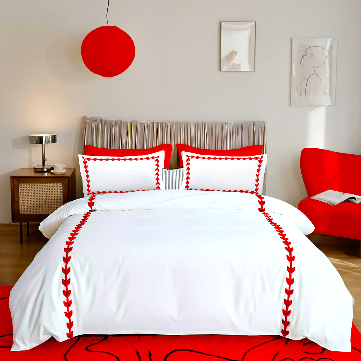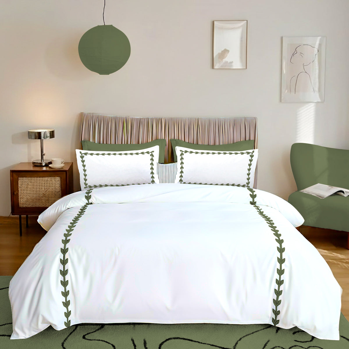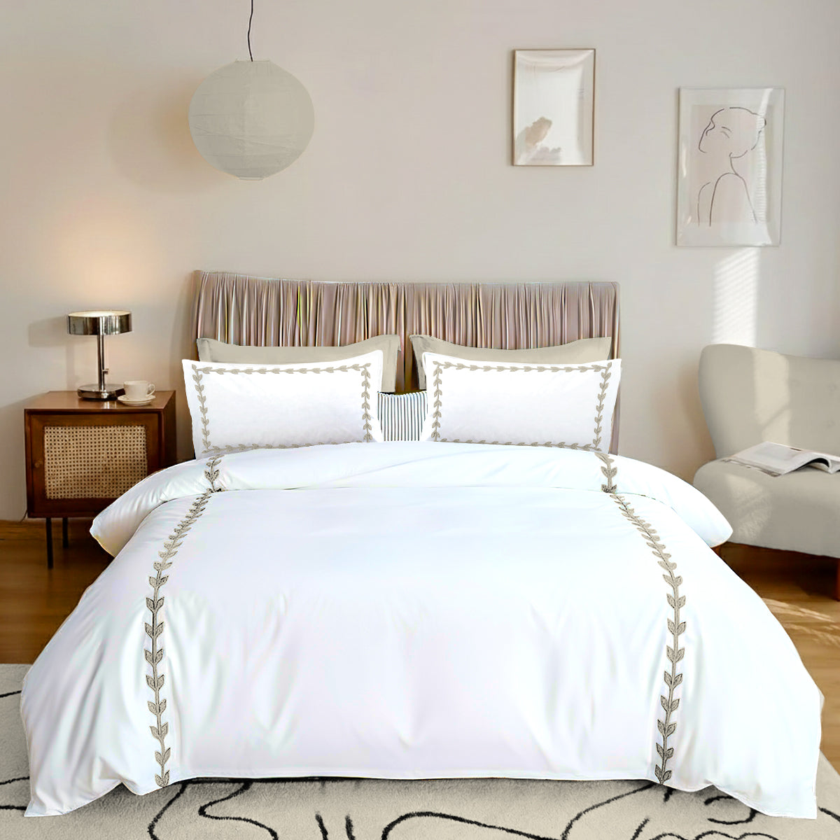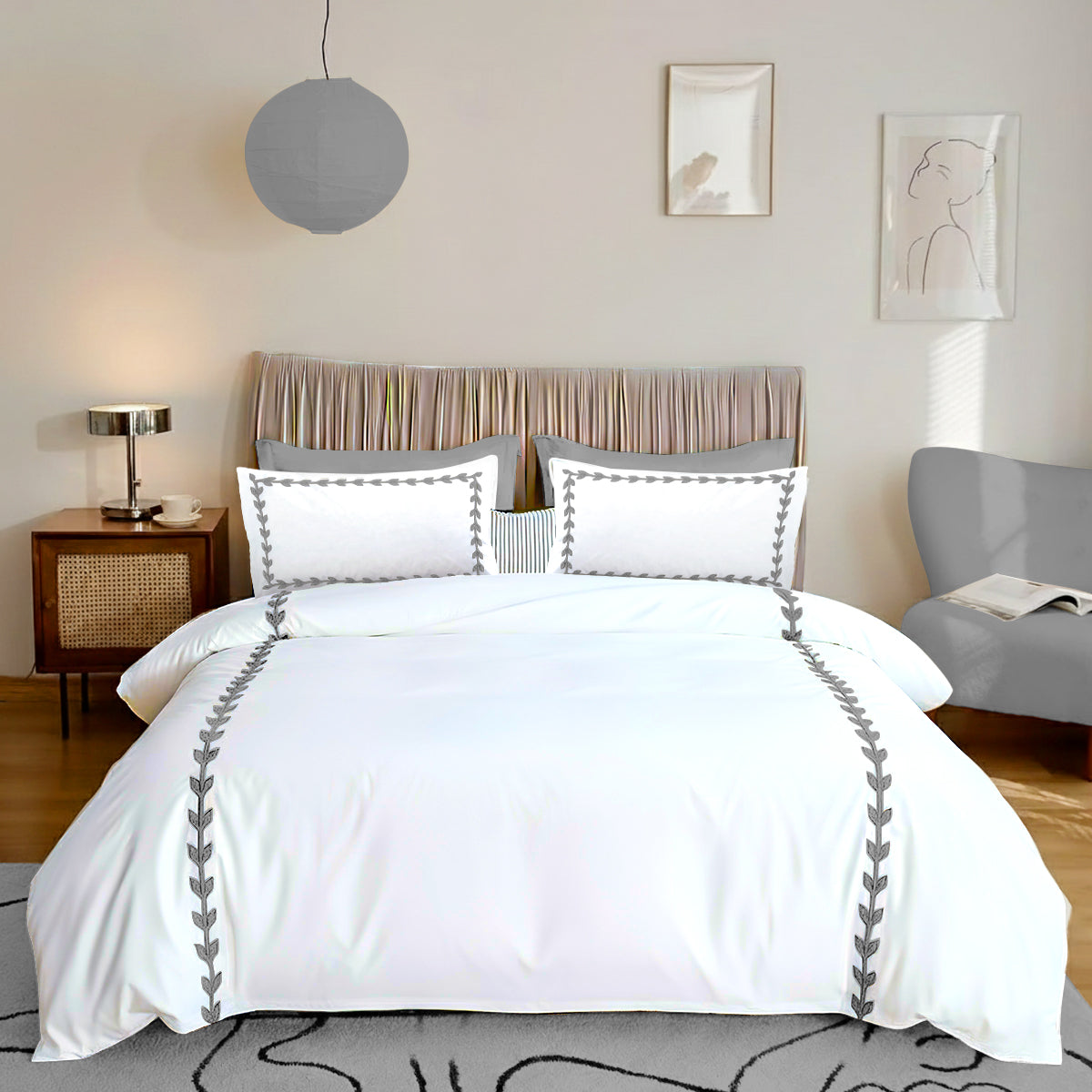 • Layered Leaf Applique Cotton Duvet Cover Set