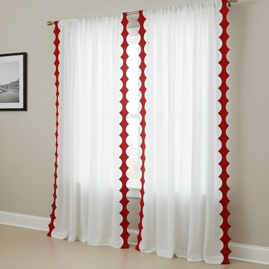 • Reverse Scalloped Applique Embroidery Cotton Curtain (Set Of 2)