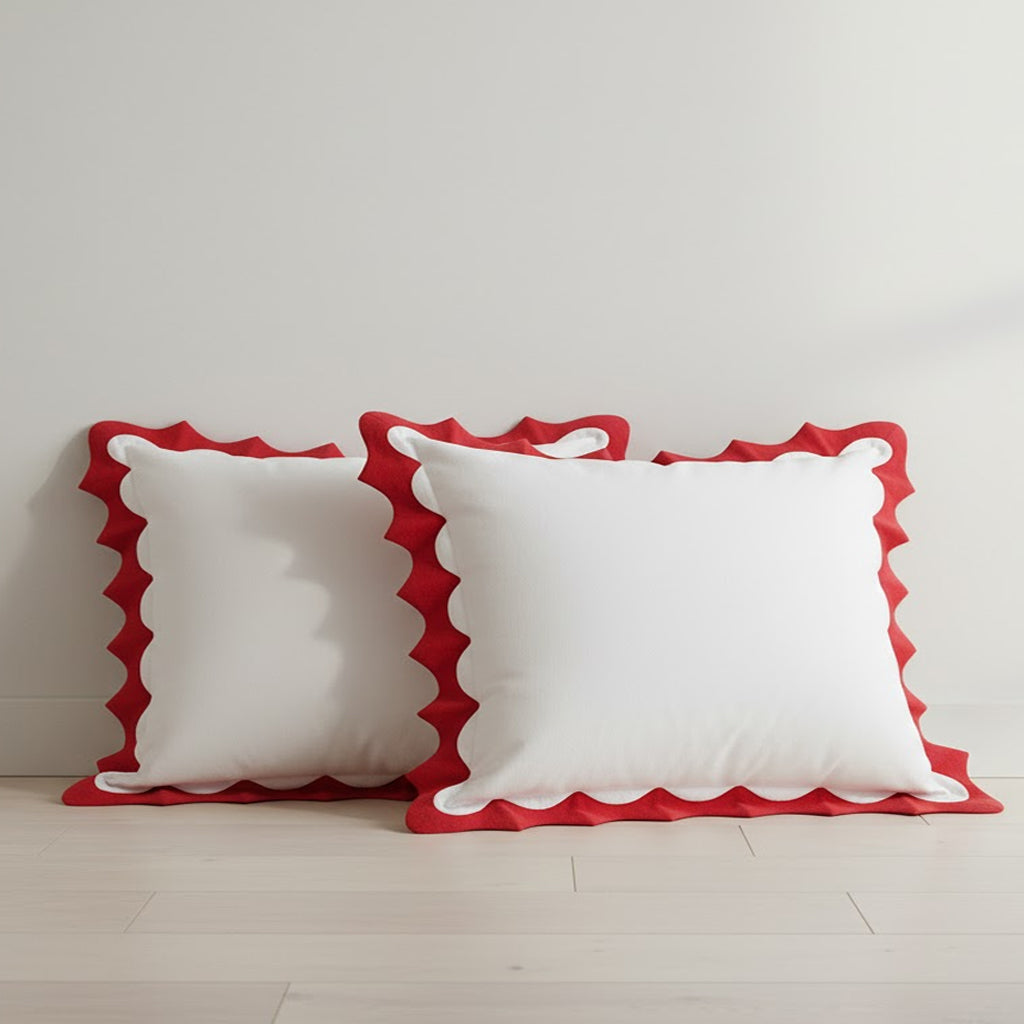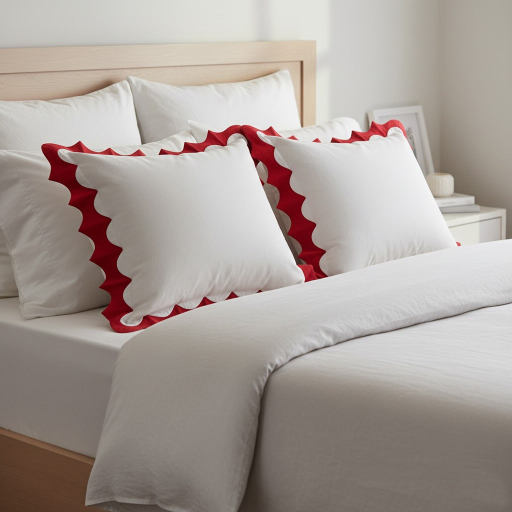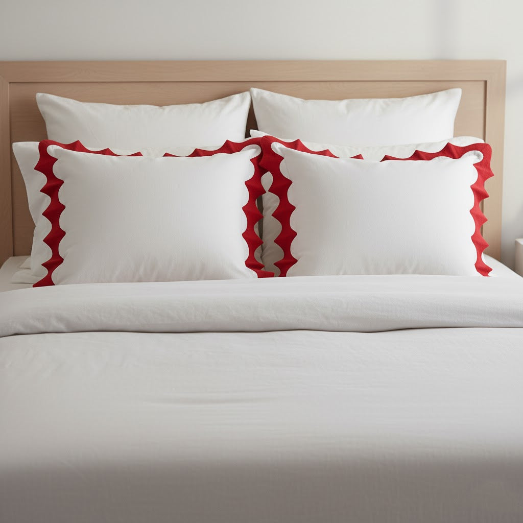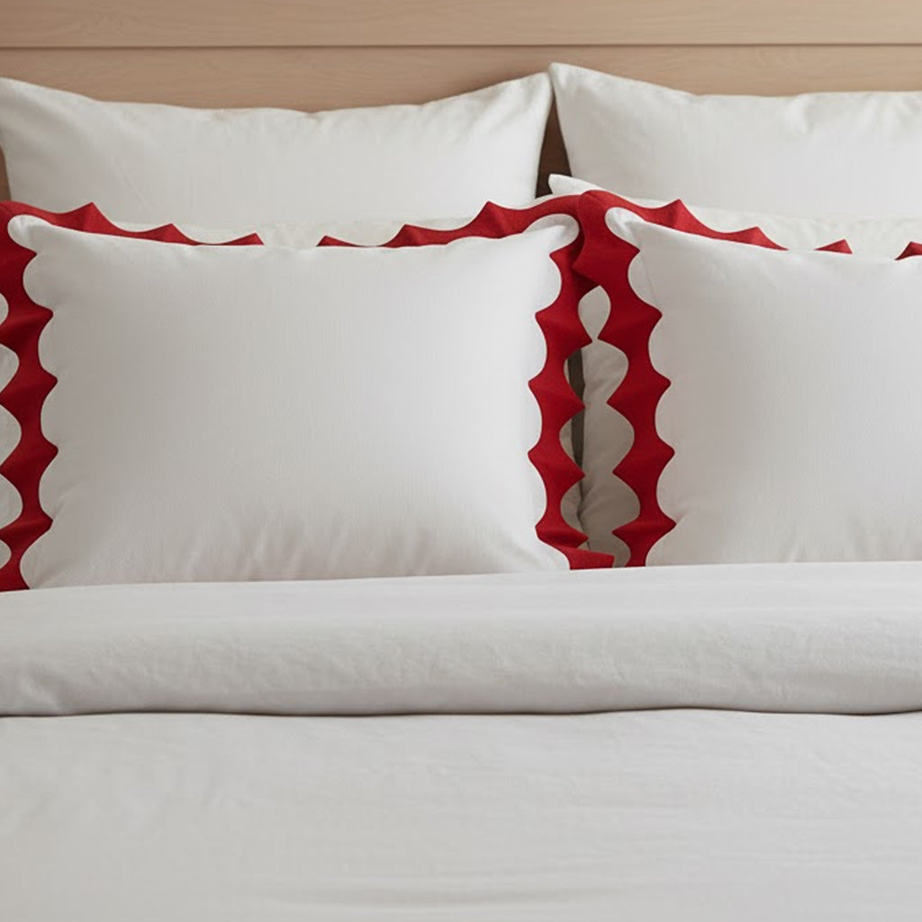 • Reverse Scalloped Applique Embroidery Cotton Pillow Sham