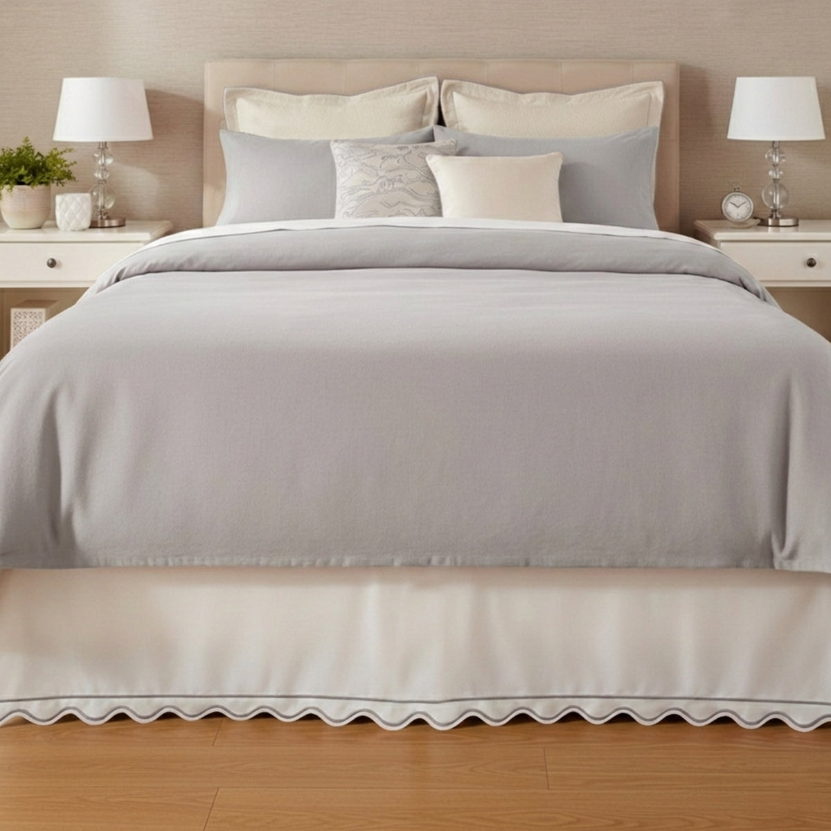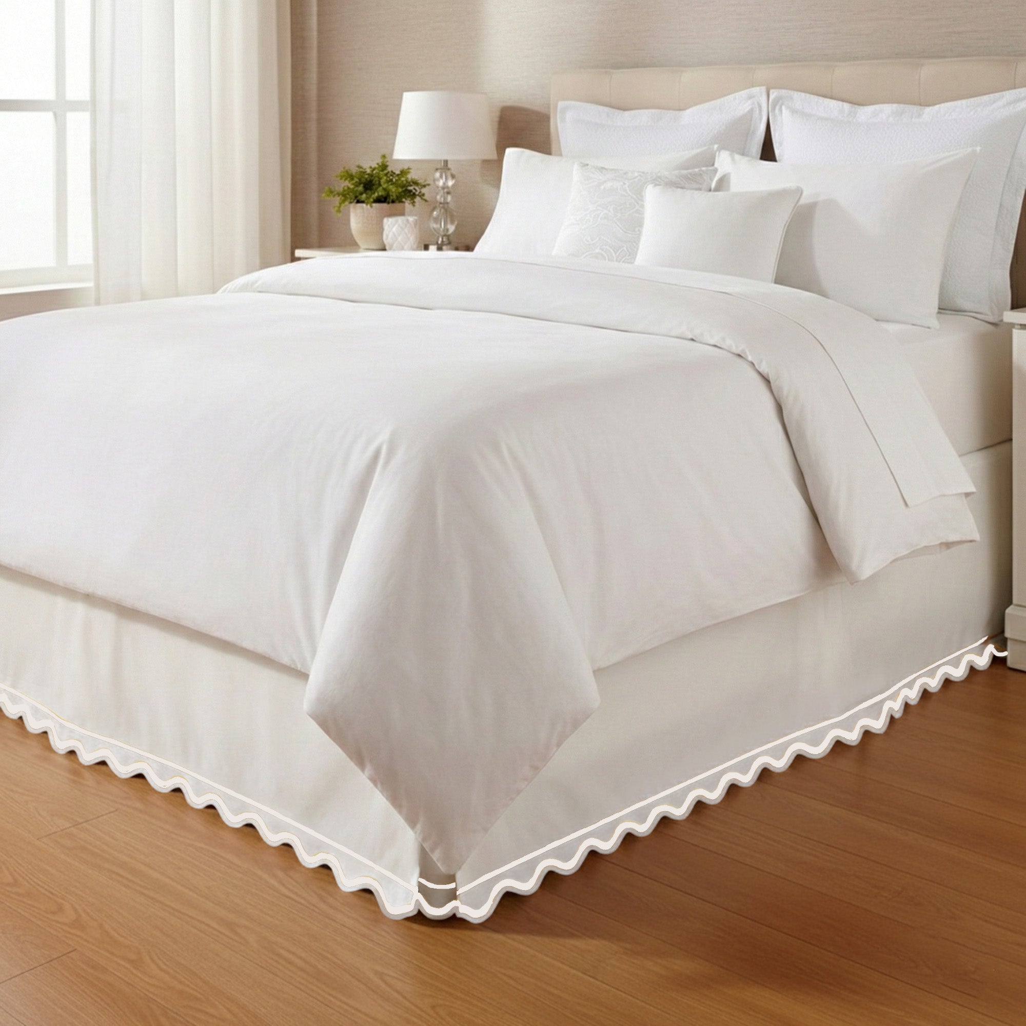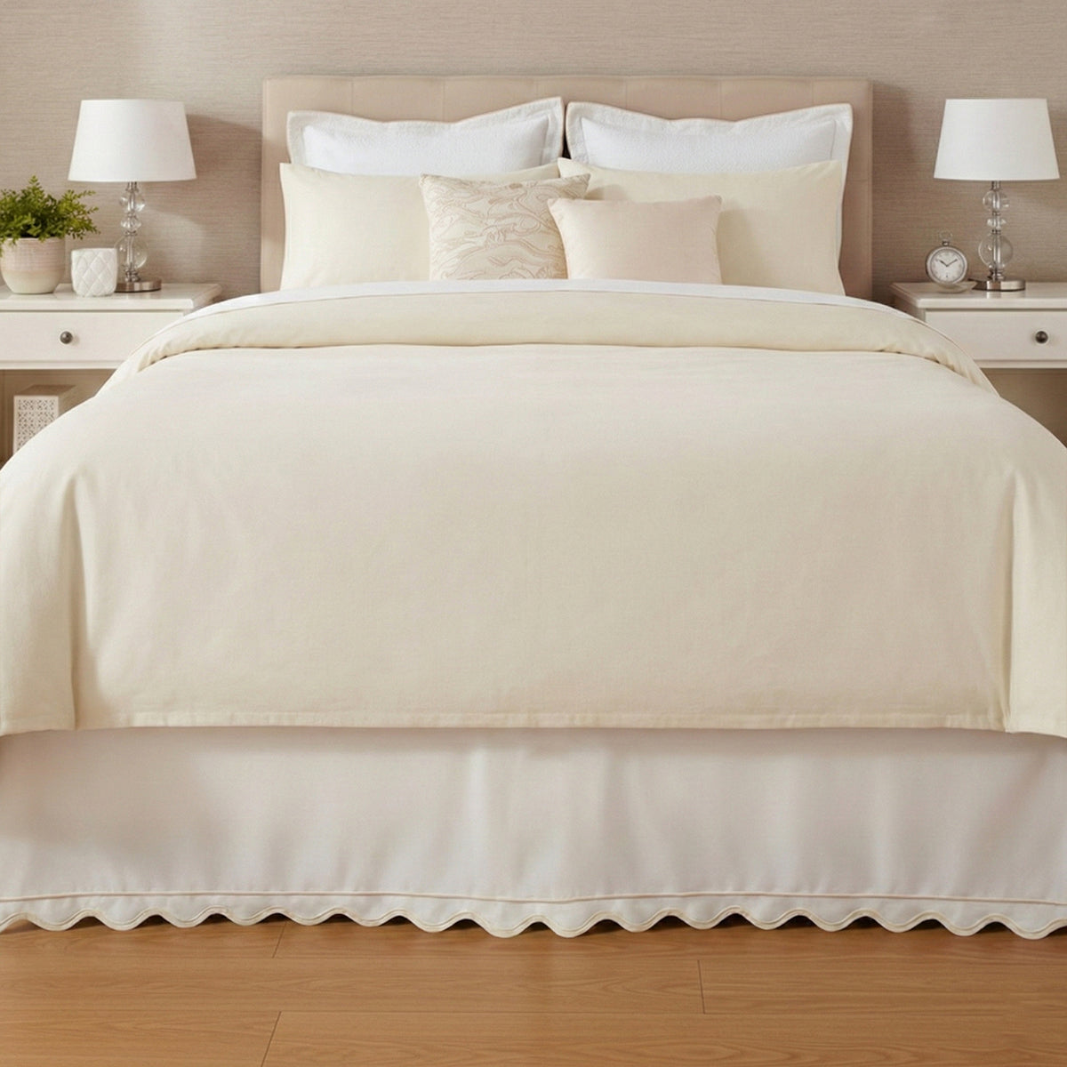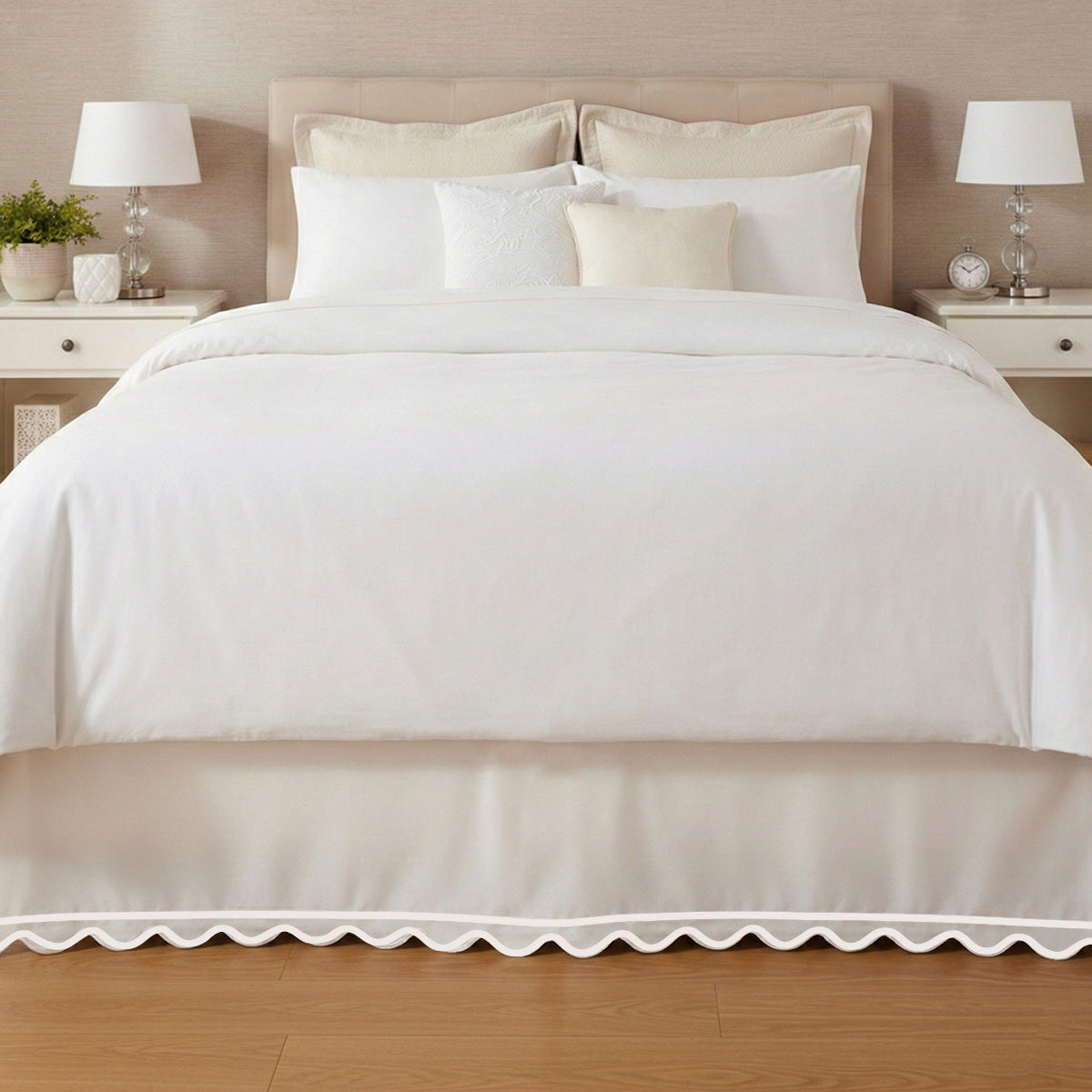• 400TC Sateen Cotton Scallop Embroidery & Border Tailored Bed Skirt