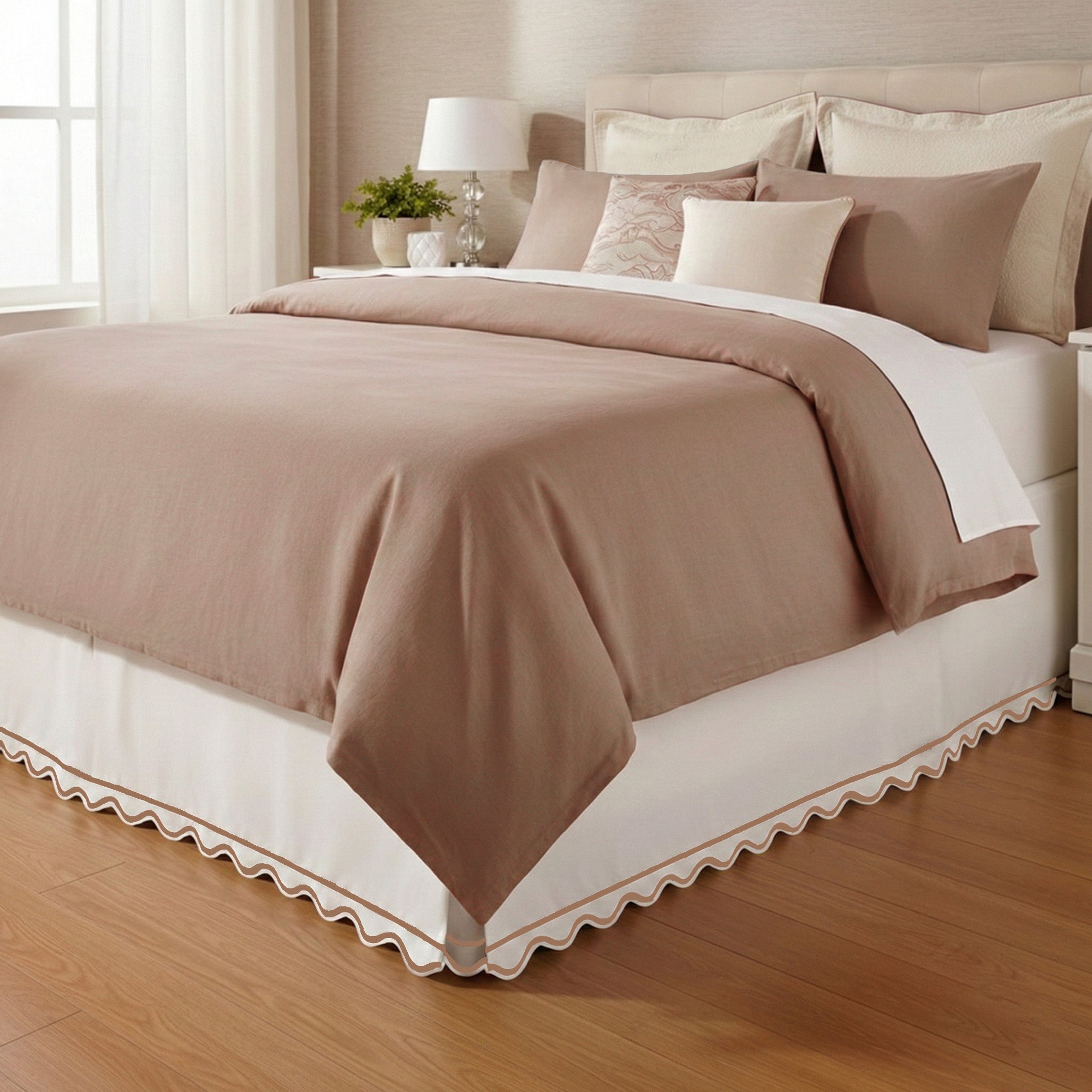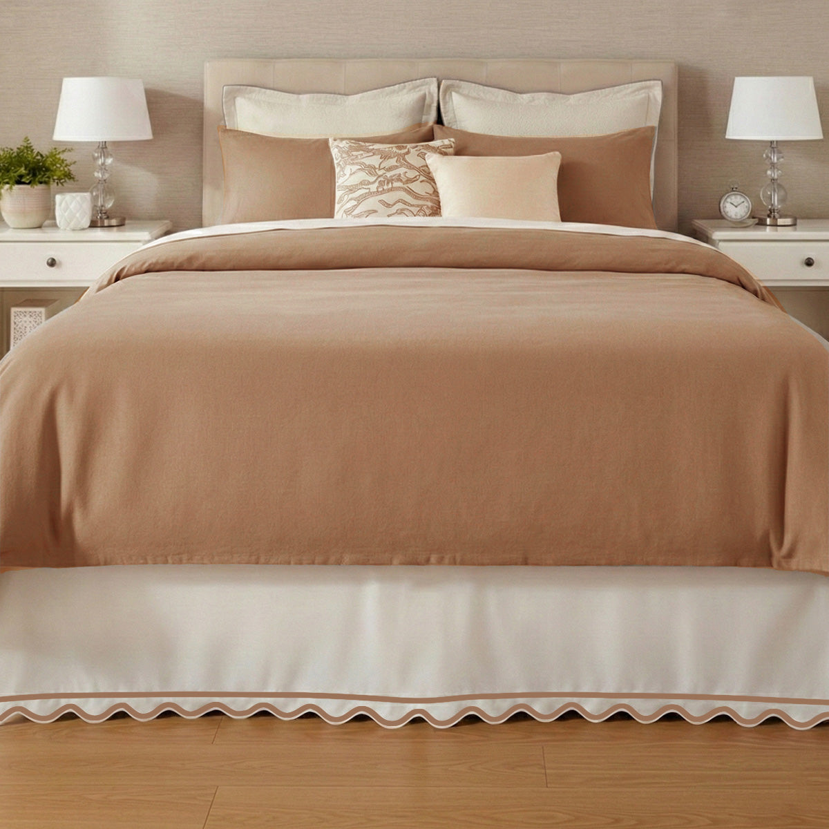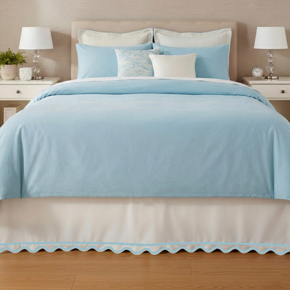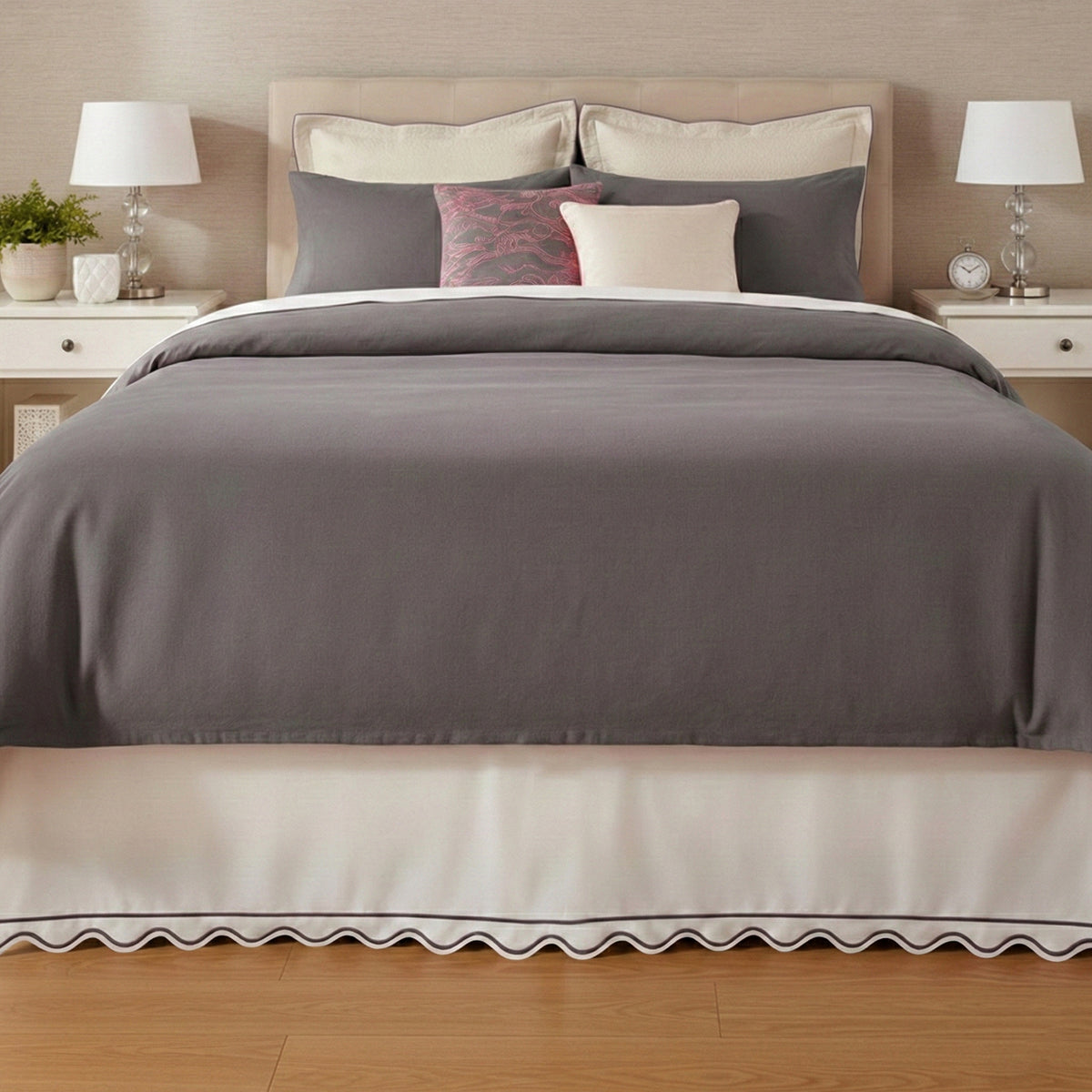 • 400TC Sateen Cotton Scallop Embroidery & Border Tailored Bed Skirt