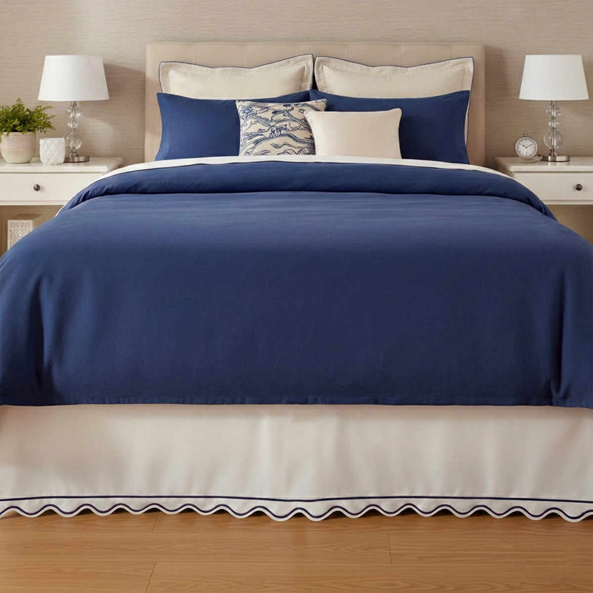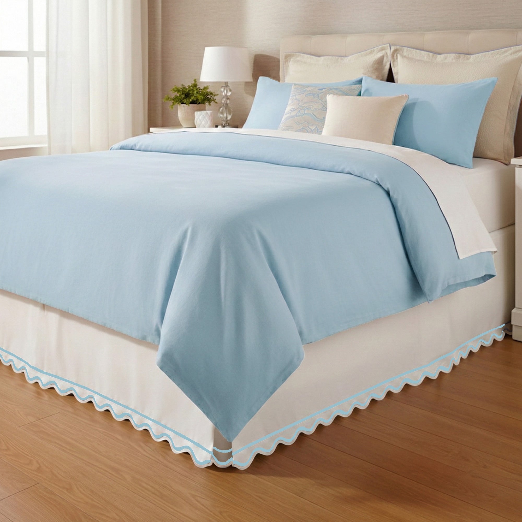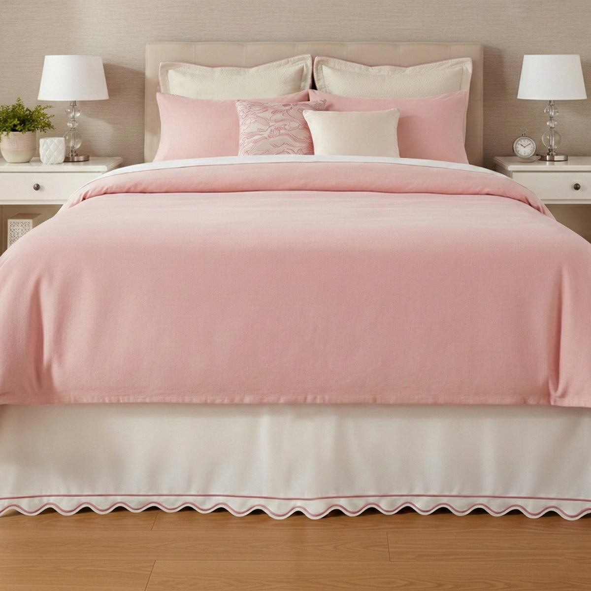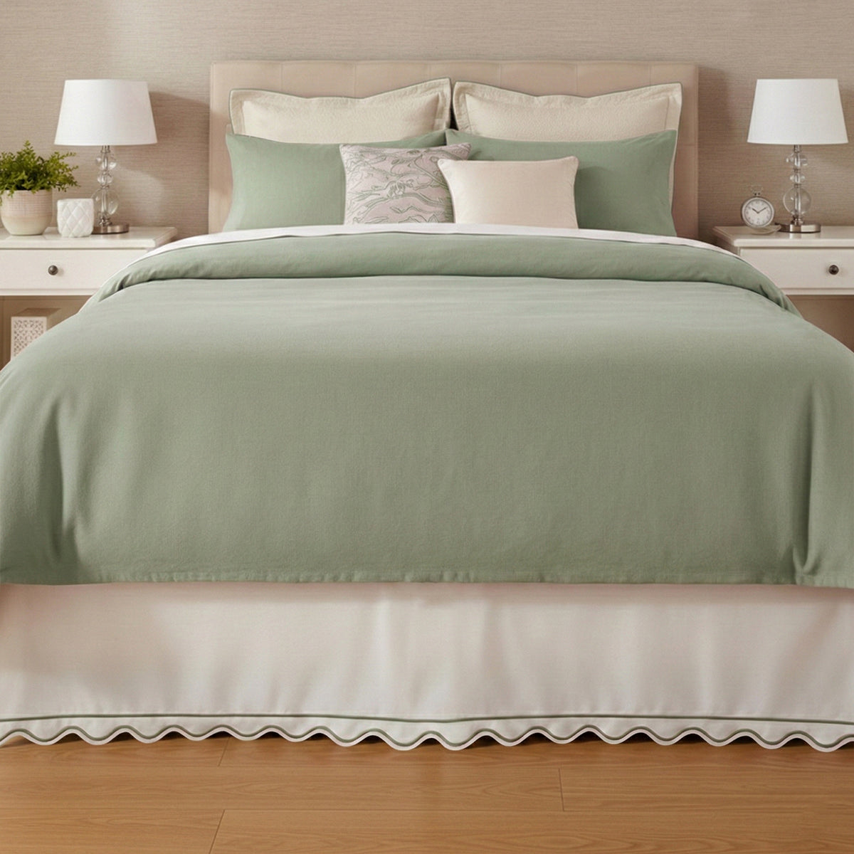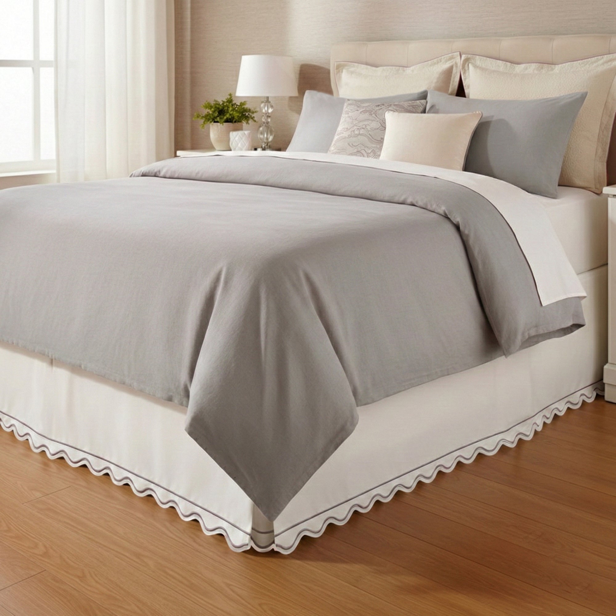 • 400TC Sateen Cotton Scallop Embroidery & Border Tailored Bed Skirt