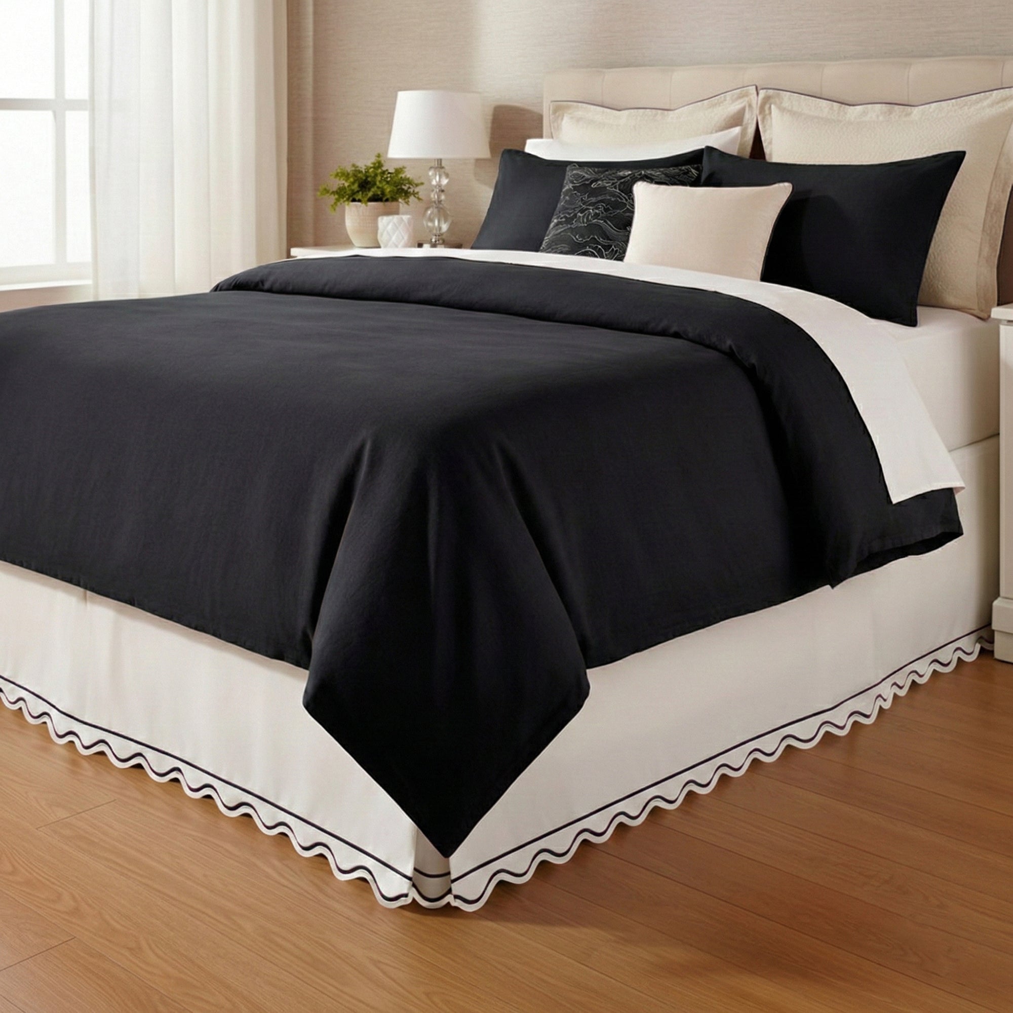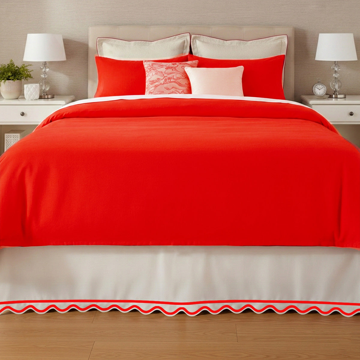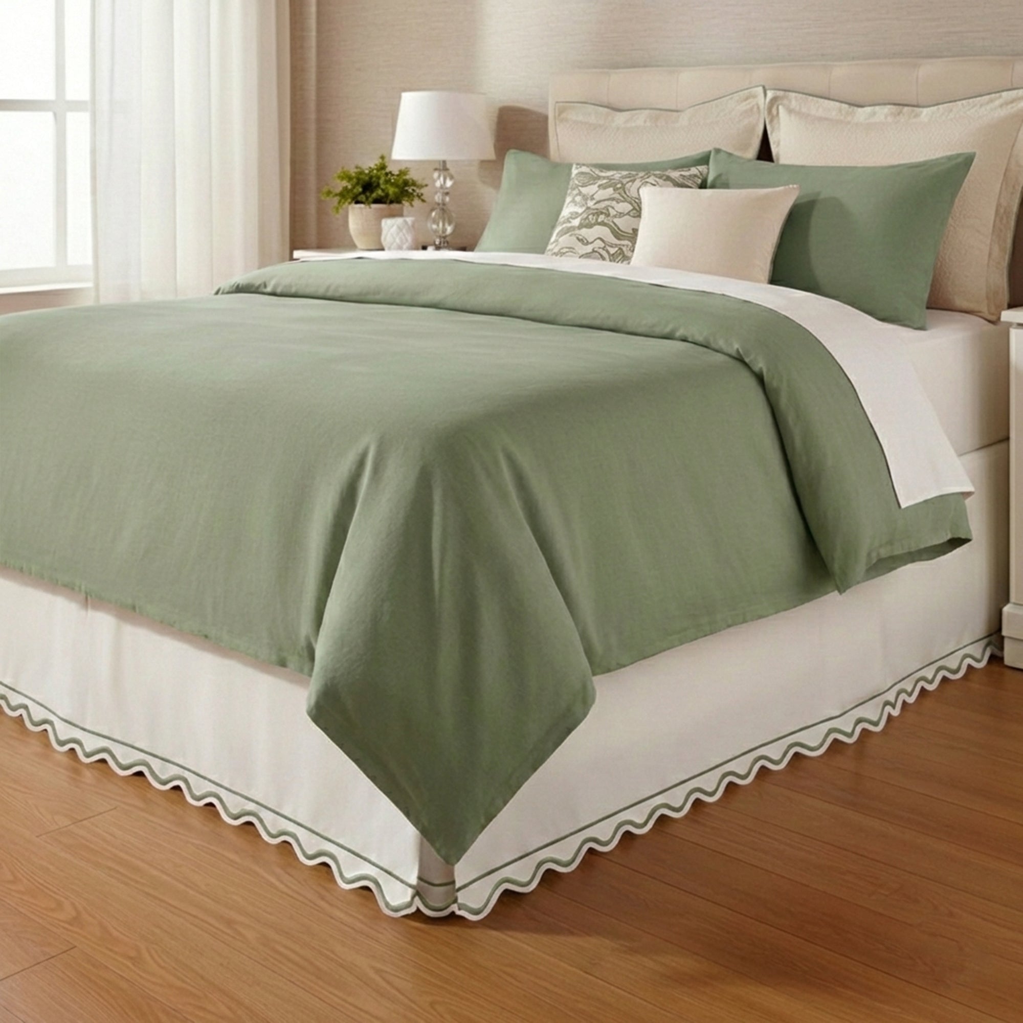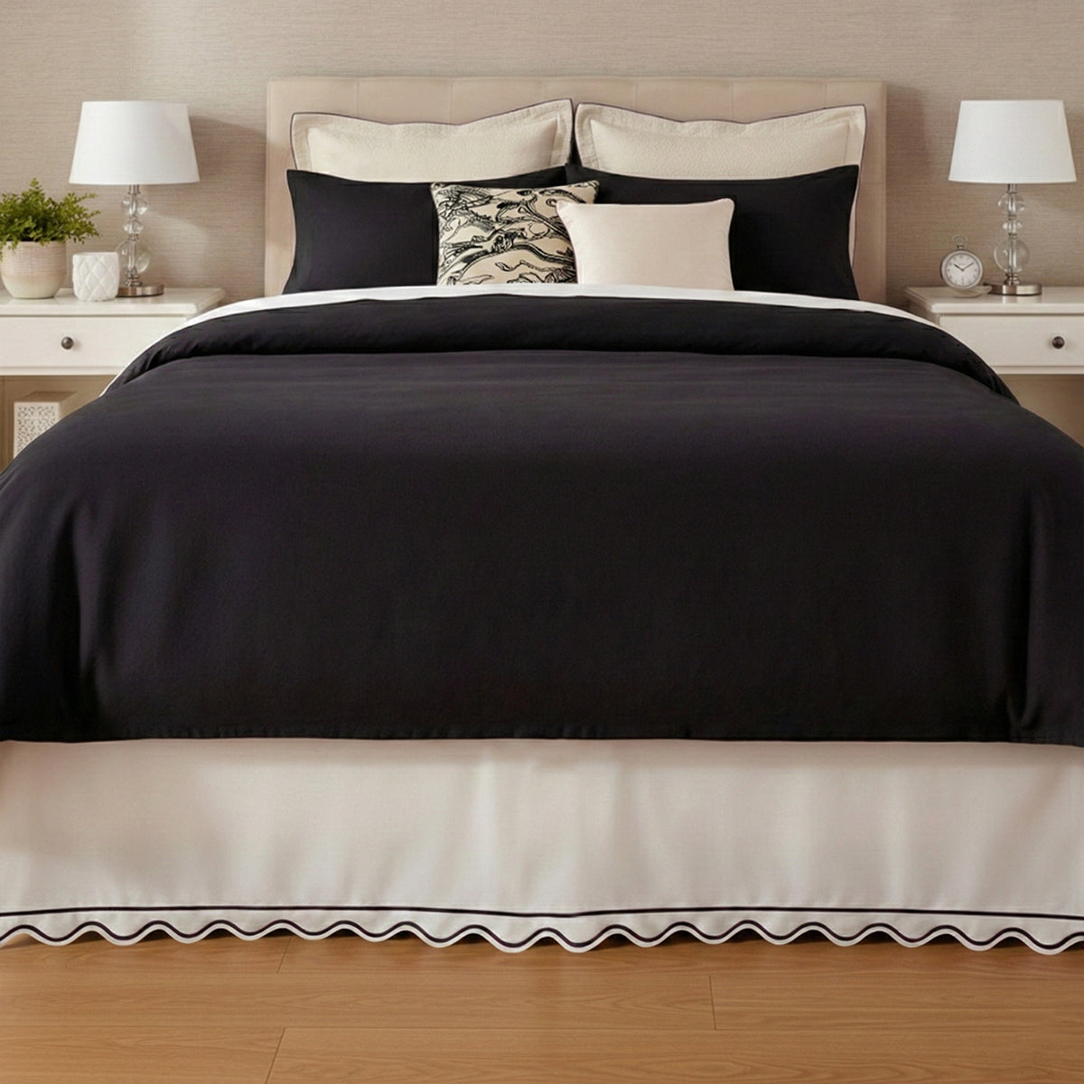 • 400TC Sateen Cotton Scallop Embroidery & Border Tailored Bed Skirt