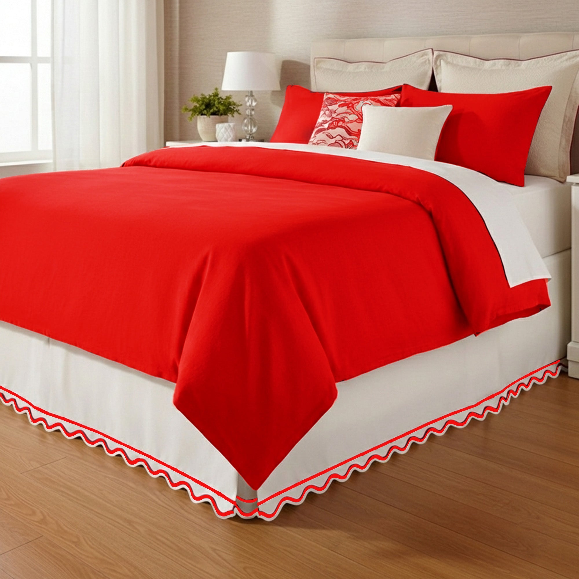• Features fabric trim & U Shape embroidery scalloped piping all around to bed skirt