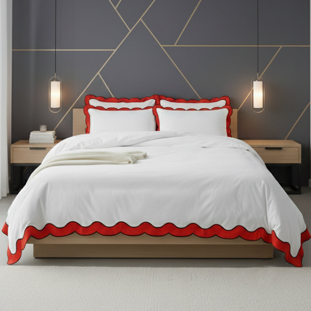 • Scalloped & Wavy Applique Embroidery Cotton Duvet Cover Set
