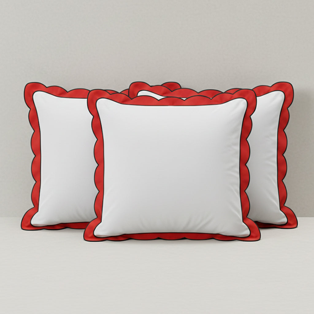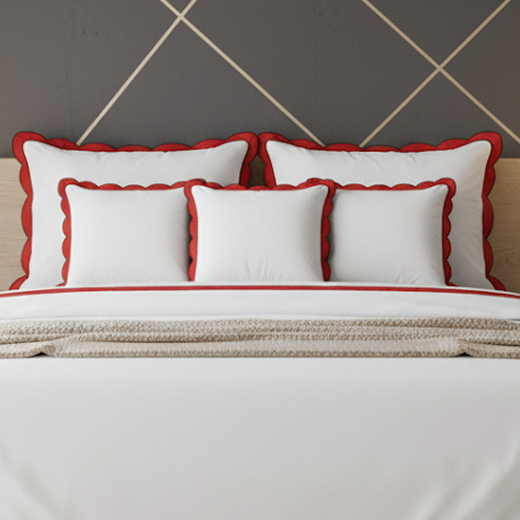 • Scalloped & Wavy Applique Embroidery Cotton Euro Sham