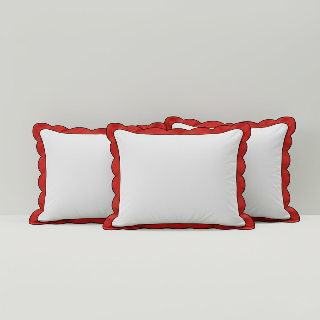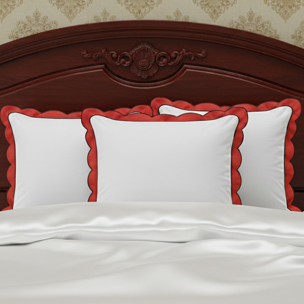 • Scalloped & Wavy Applique Embroidery Cotton Pillow Sham