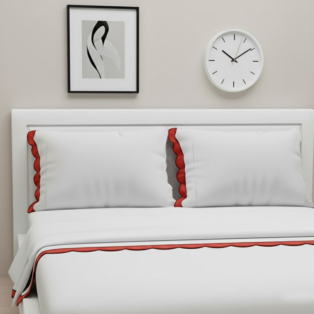 Scalloped & Wavy Applique Embroidery Cotton Pillowcases (Set Of 2)