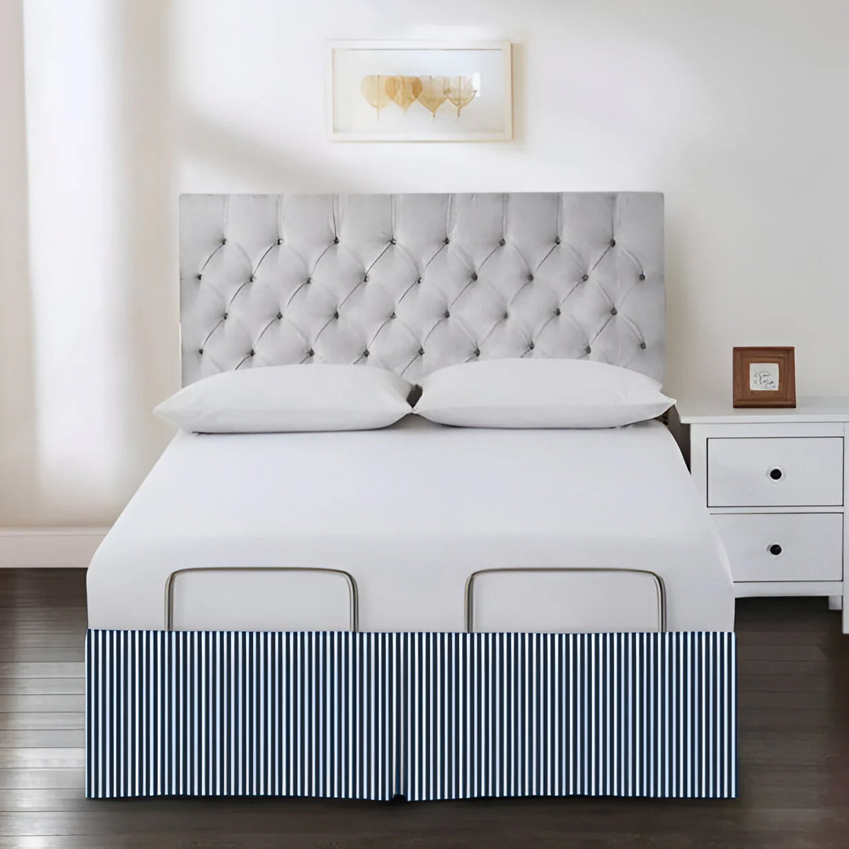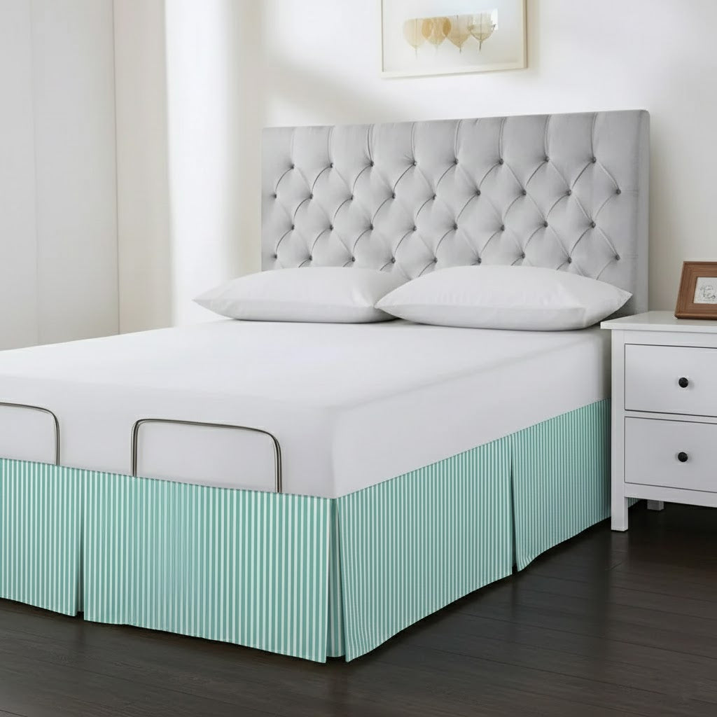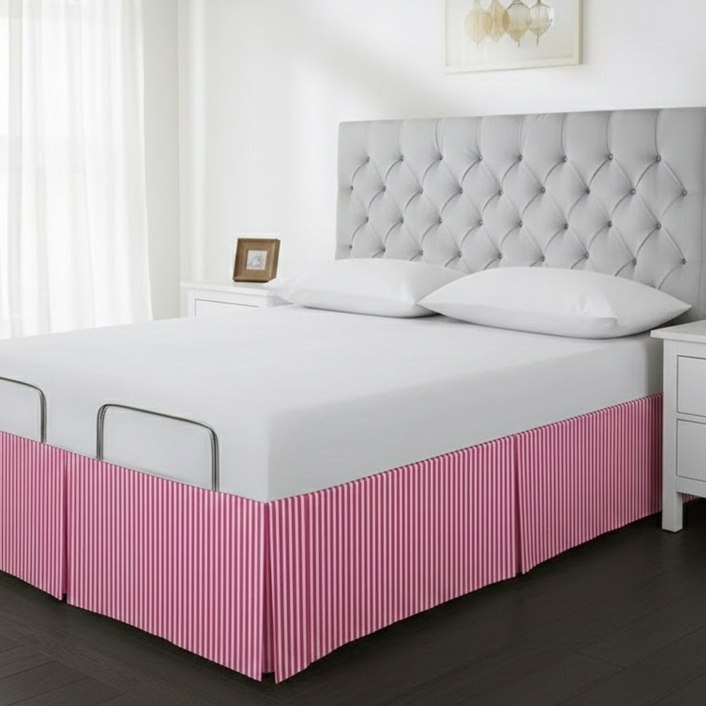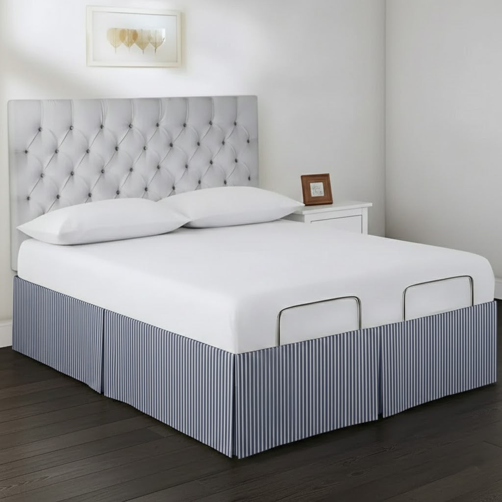 • Detachable Wrap Around Polyester Ticking Stripe Tailored Bed Skirt
