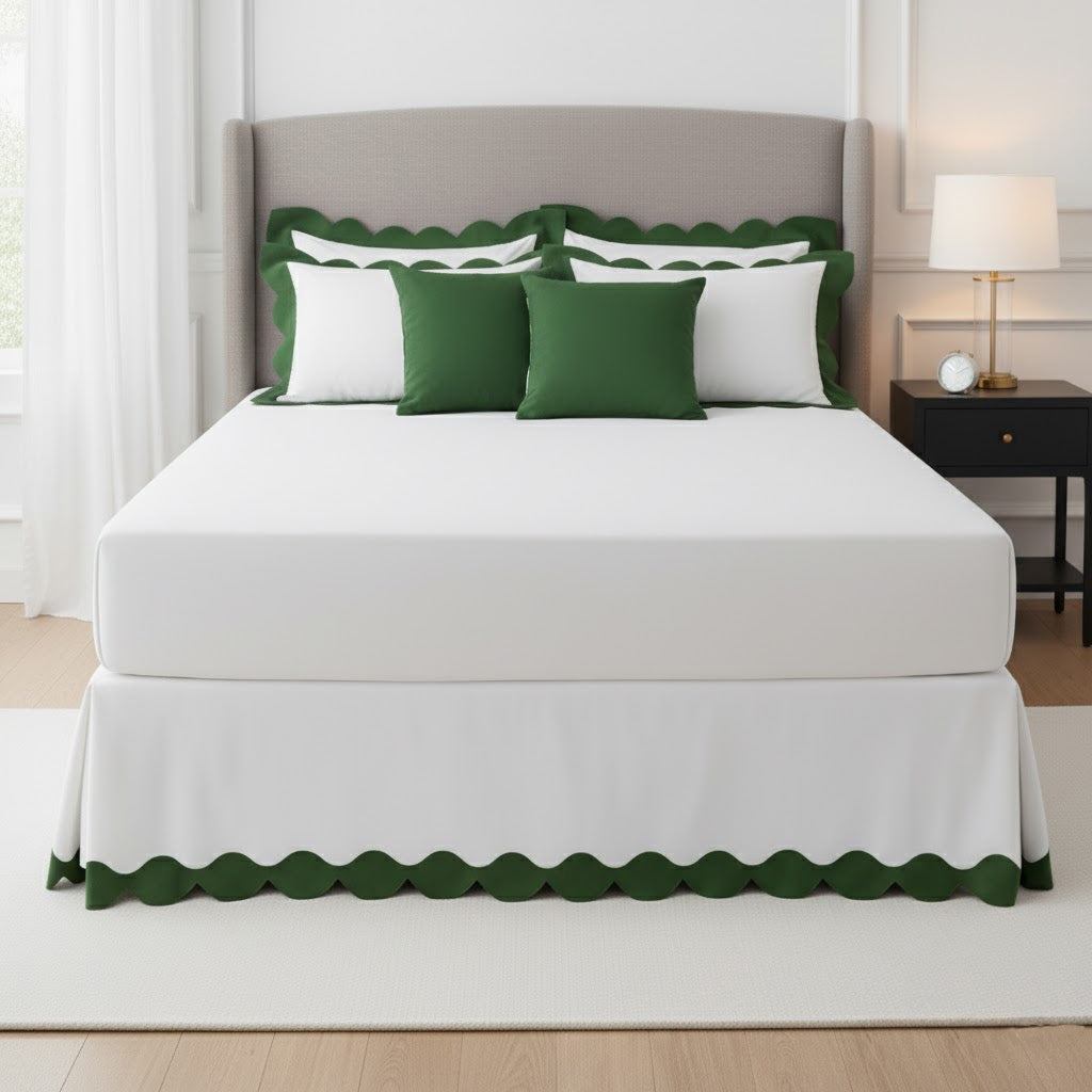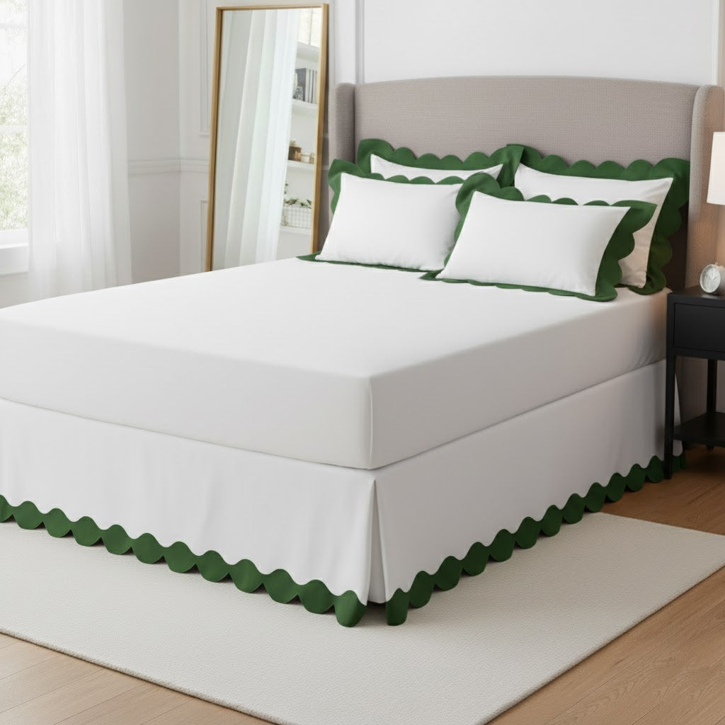 • Wavy Applique Embroidery Cotton Tailored Bed Skirt
